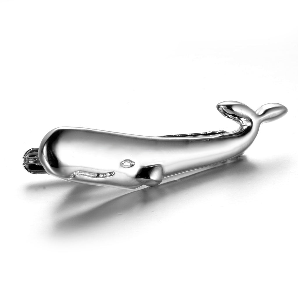 Elegant Practical Animal Swimming Whale Brass Tie Pinch Clips Clasp Silver