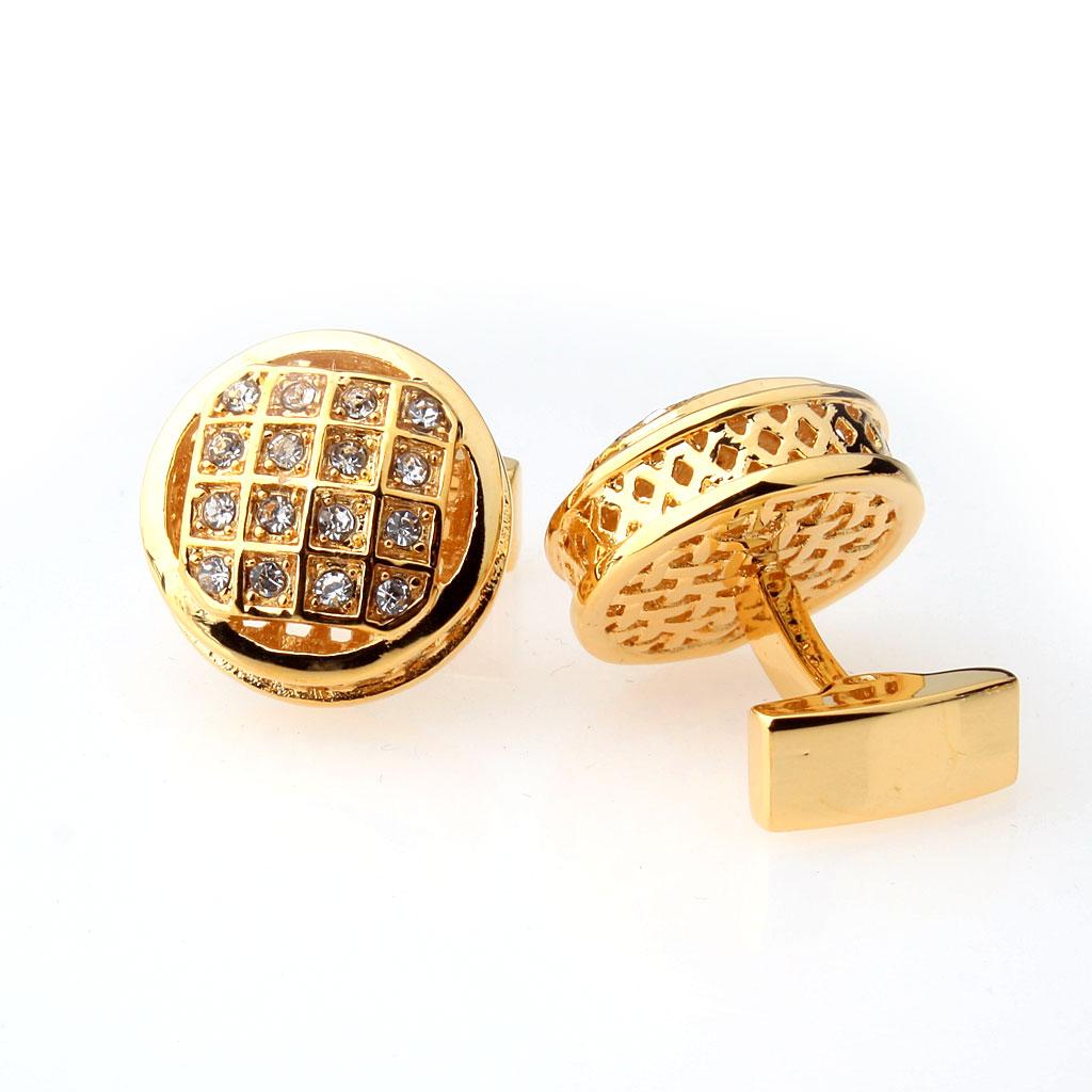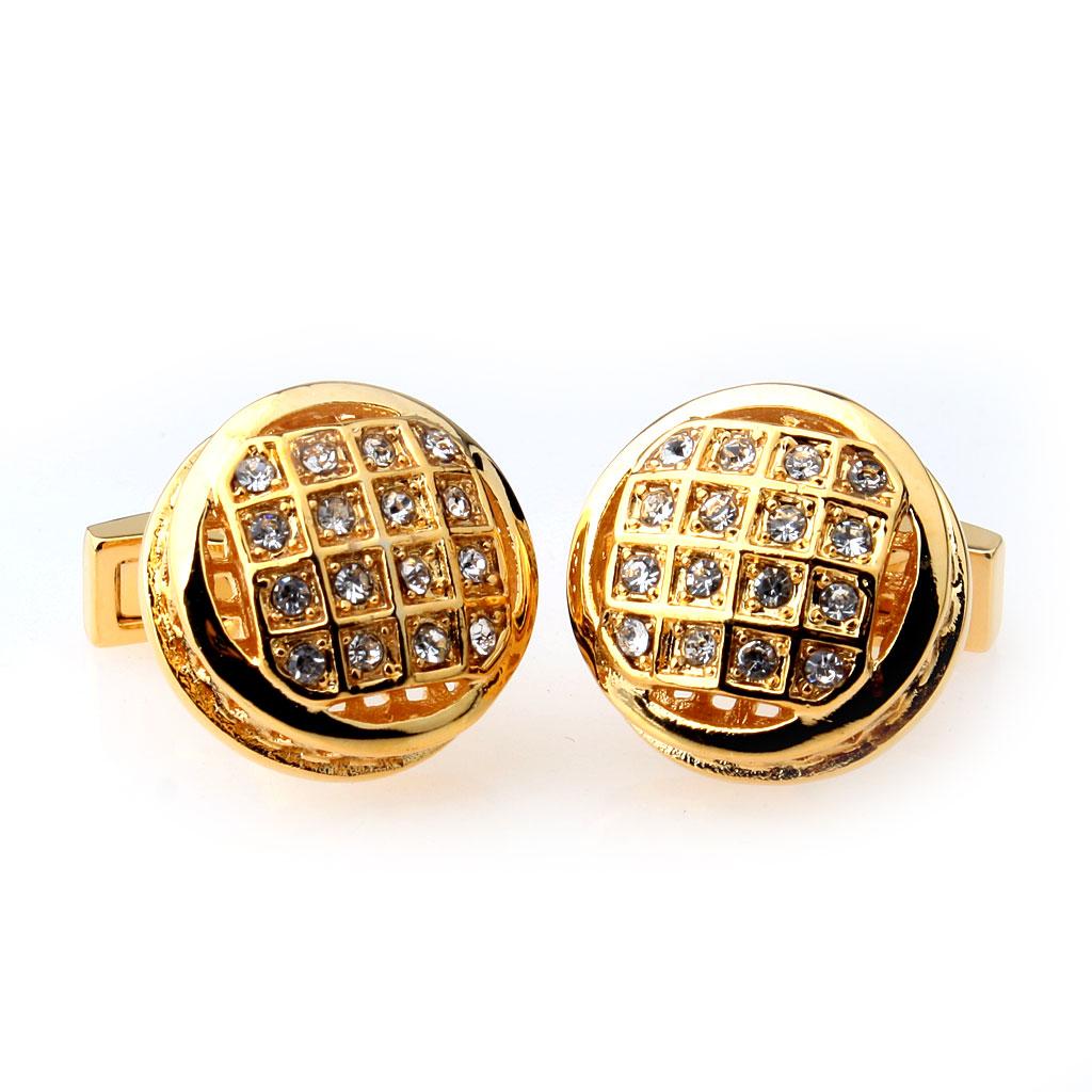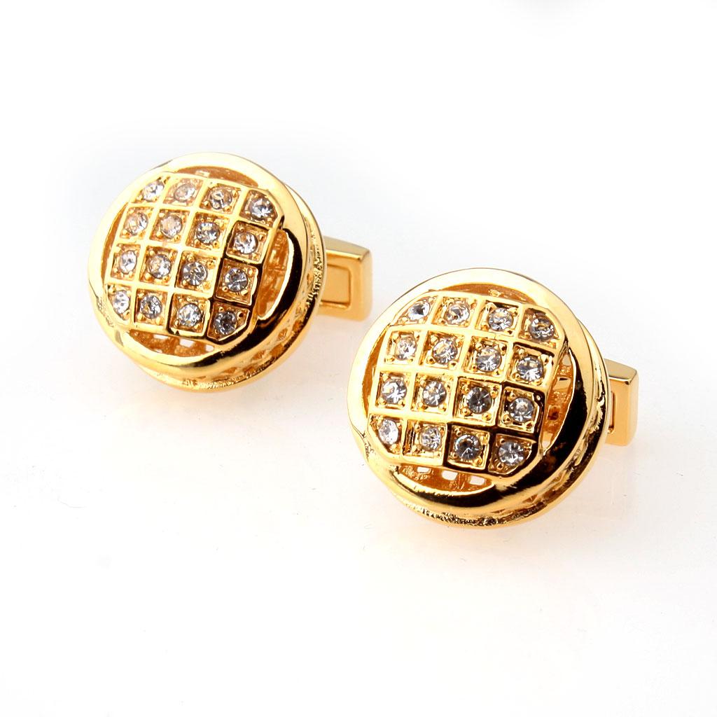Fashion Men's Copper Plating Diamante Rhinestone Cufflinks Cuff Links Gold