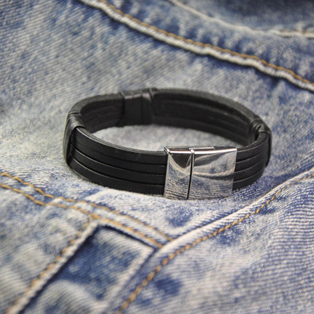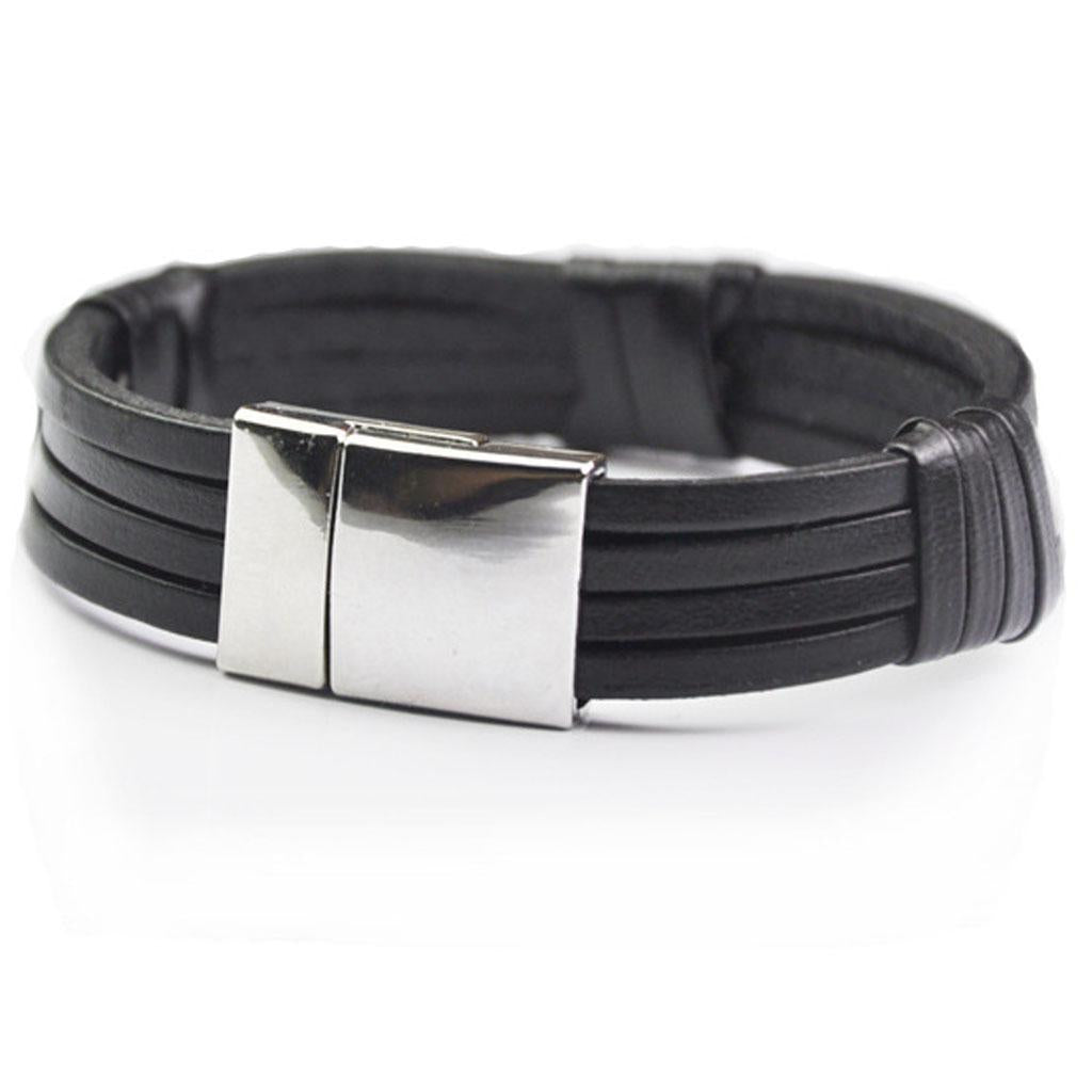 Unisex PU Leather Wristband Bracelet with Alloy Magnetic Clasp.