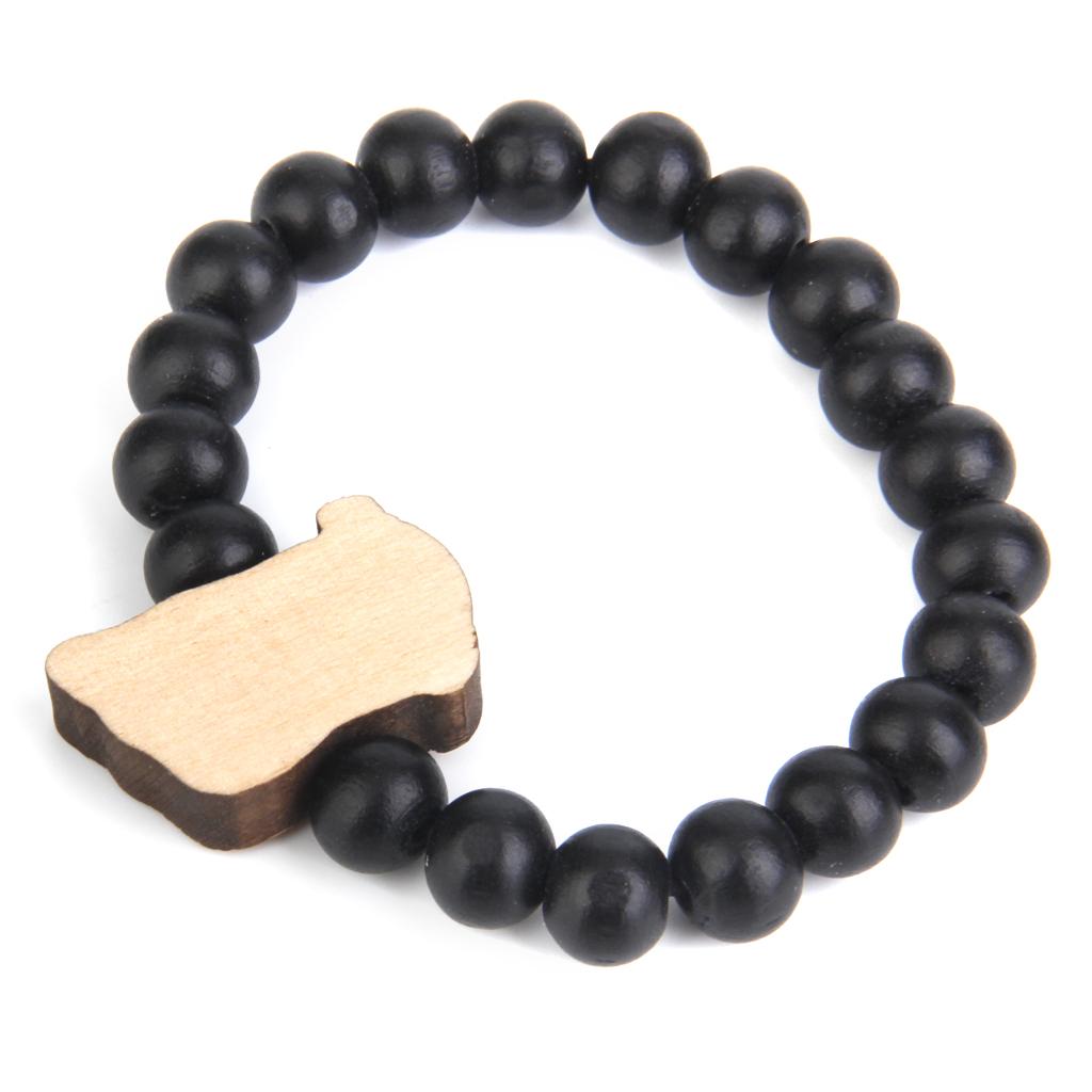 HipHop Style Jesus Pendant Bracelets Wood Beads Stretch Chain Unisex Black