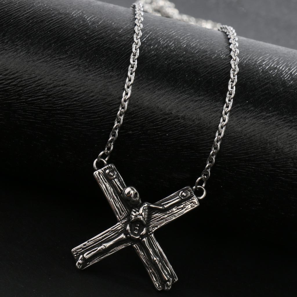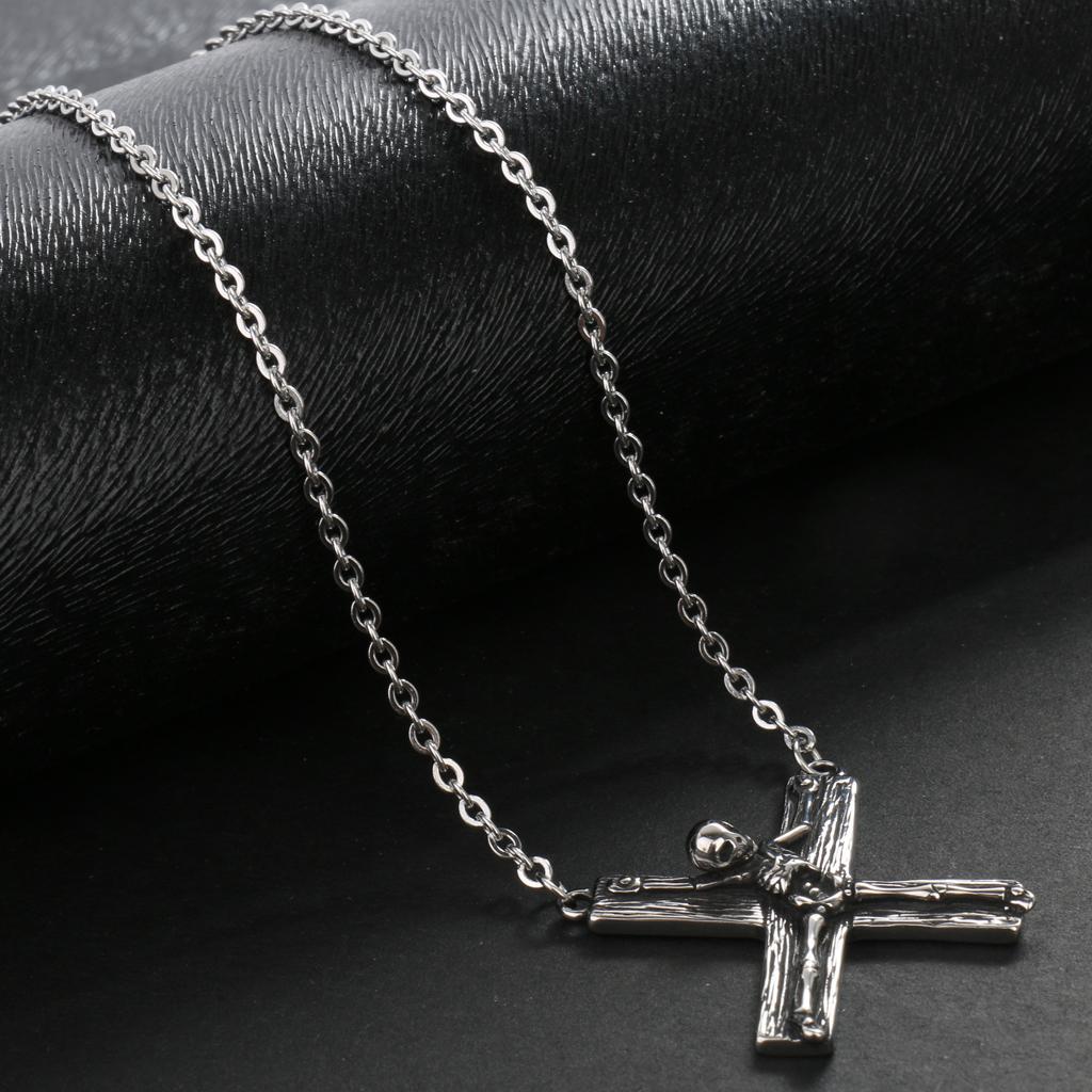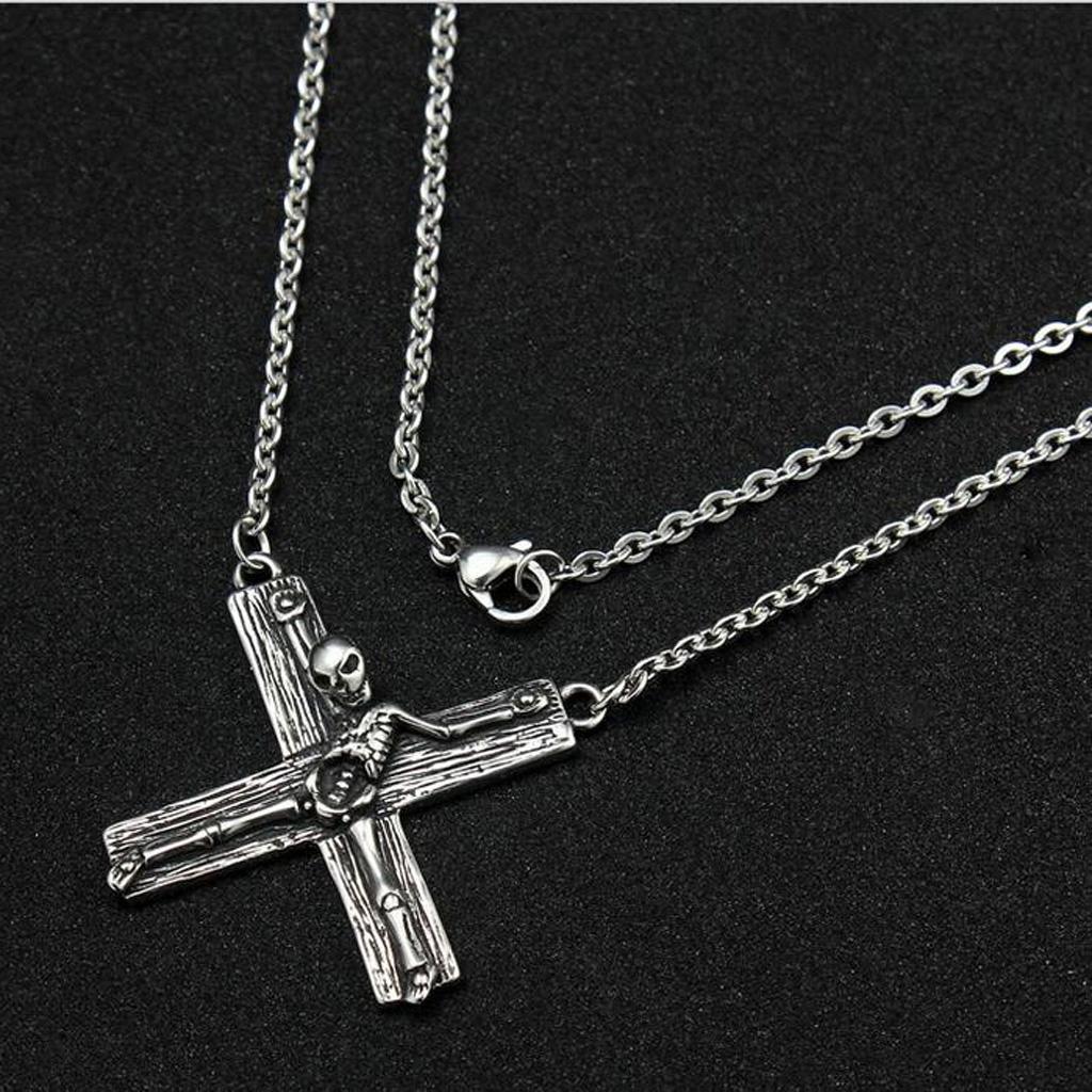 Men Cross Vintage Stainless Steel Skull Antique Silver Pendant Necklace