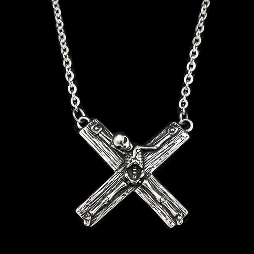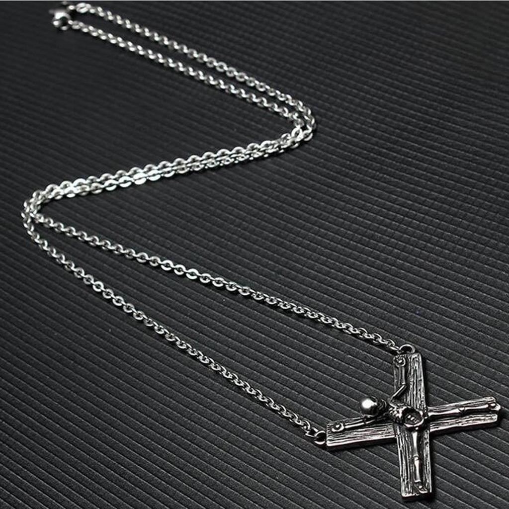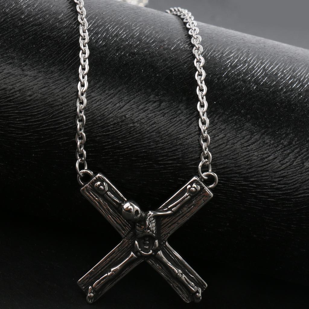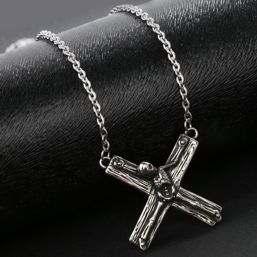 Men Cross Vintage Stainless Steel Skull Antique Silver Pendant Necklace
