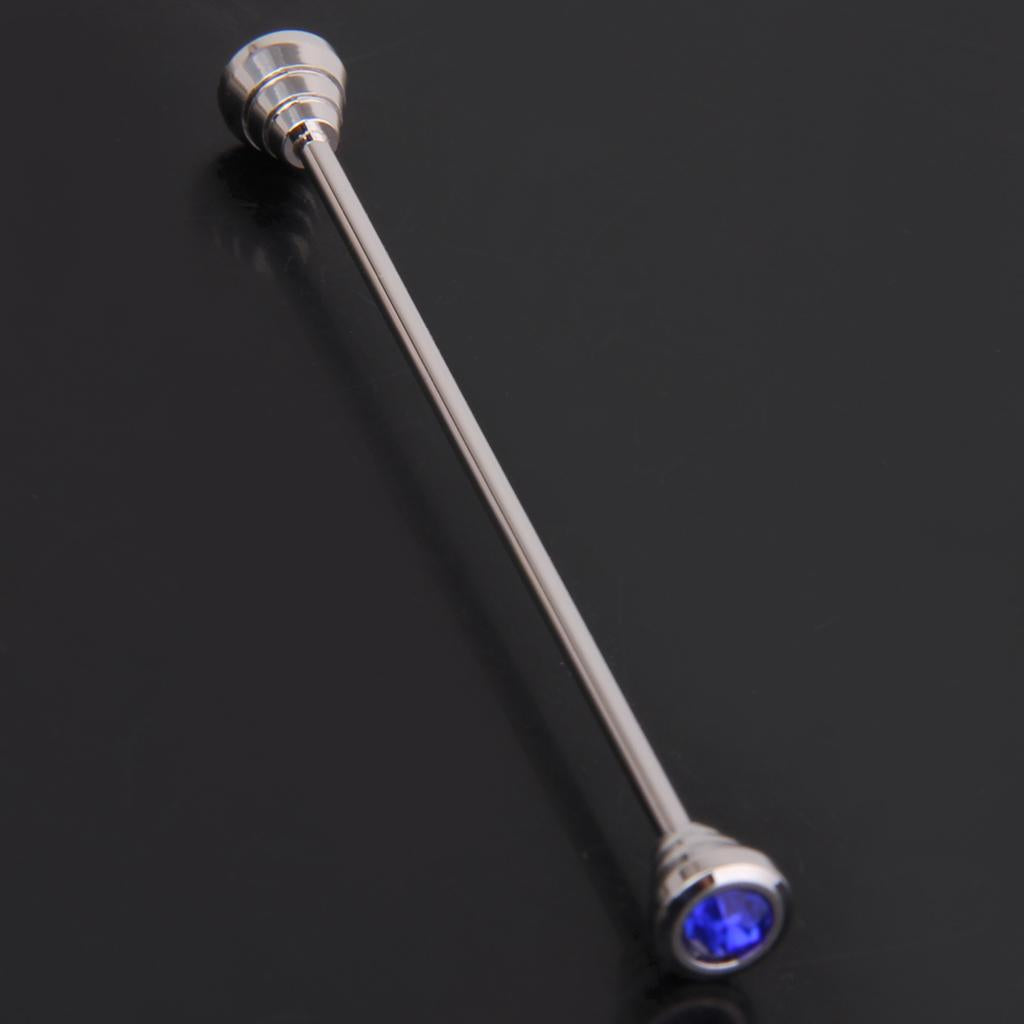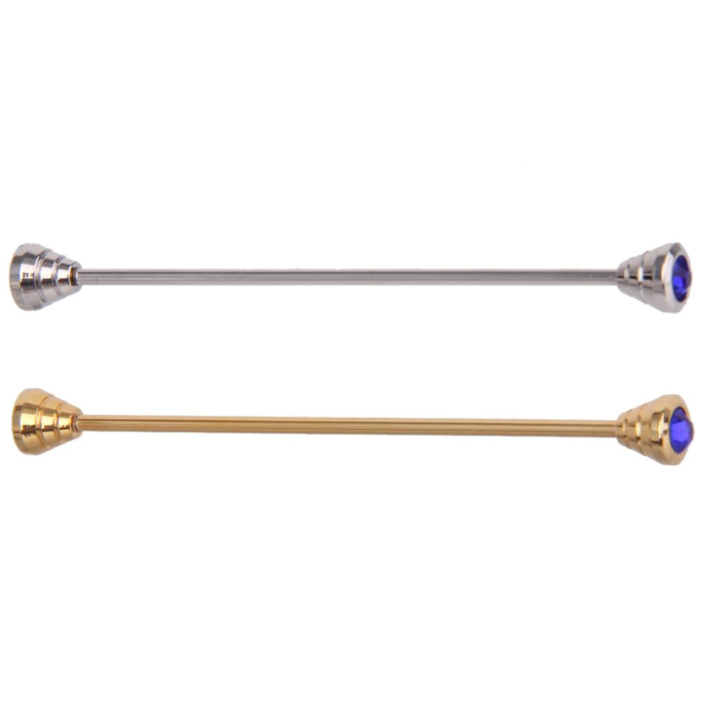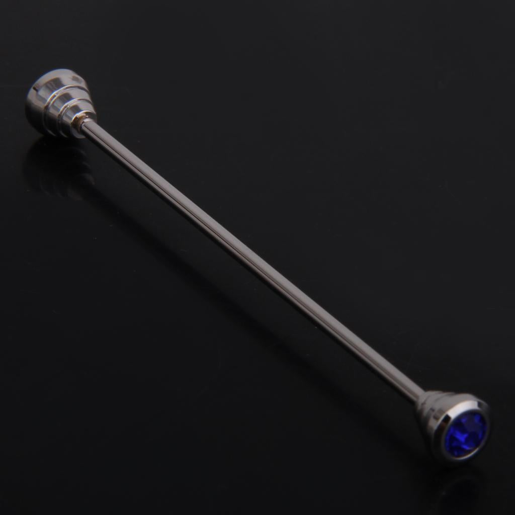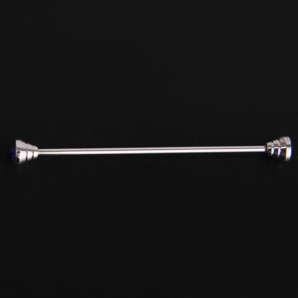 Men Necktie Blue Rhinestone Collar Cusp Bar Clasp Tie Clip Brooch Pin Silver