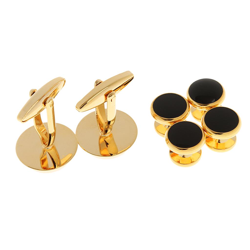 Men Tuxedo Collar Buttons Shirt Cufflinks Formal Dress Costume Gold black