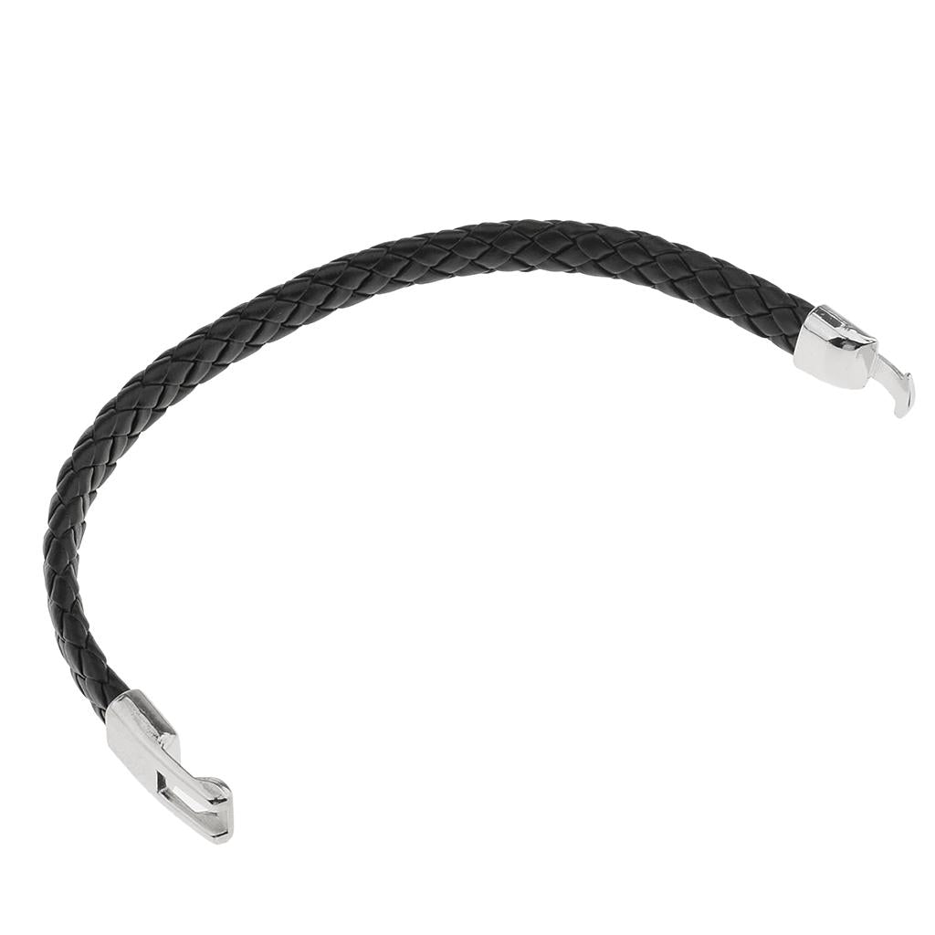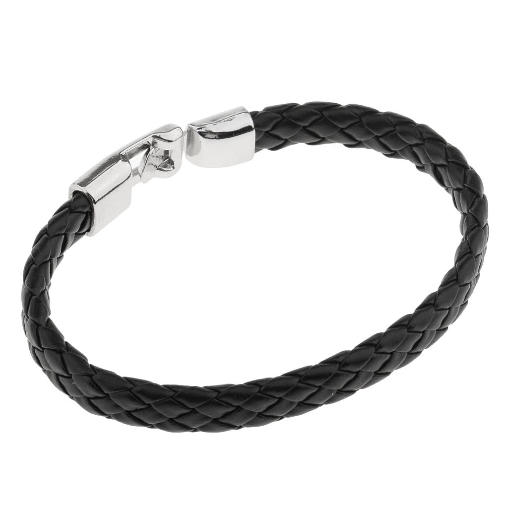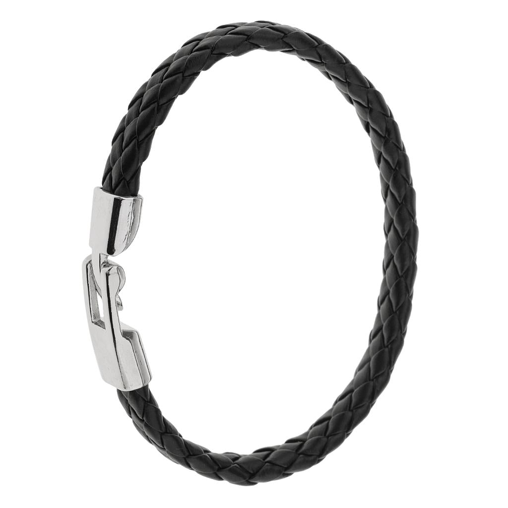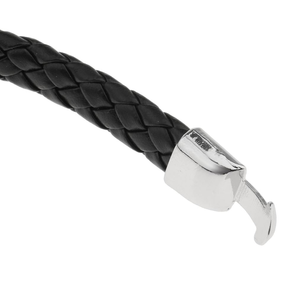 Mens Braided Black Leather and Stainless Steel Wristband Bracelet 8.2" 9mm