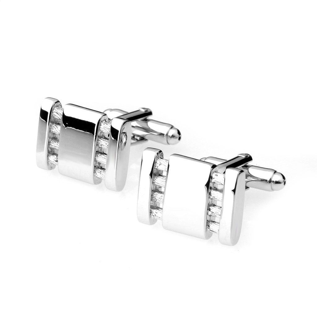 Mens Groom Shirt Cufflinks Wedding Party Gift Cufflinks Clear Stone Silver