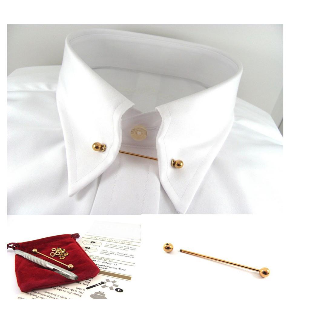 Men's Round Head Shirt Collar Clip Bar Pin Clip Tie Brooch Necktie Gold