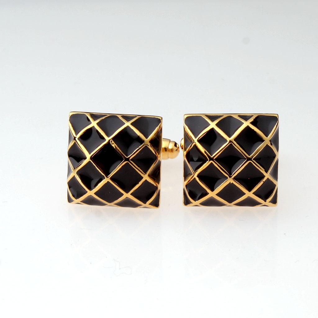 Mens Shirt Square Grid Cufflinks Wedding Party Gift Cufflinks Gold Black