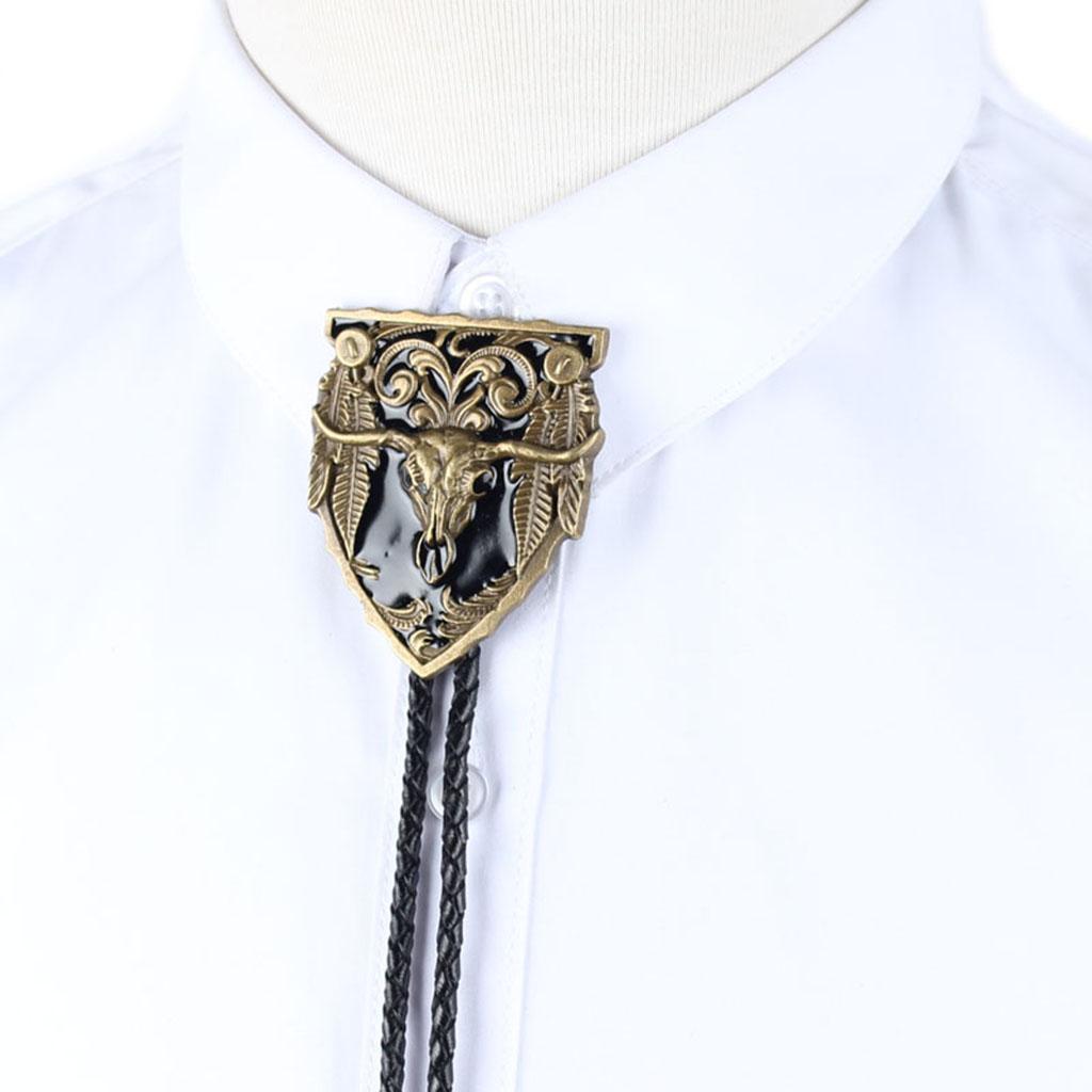 Men's Vintage Western Cowboy Rodeo Cow Bolo Tie Bola Pendant Necklace Black