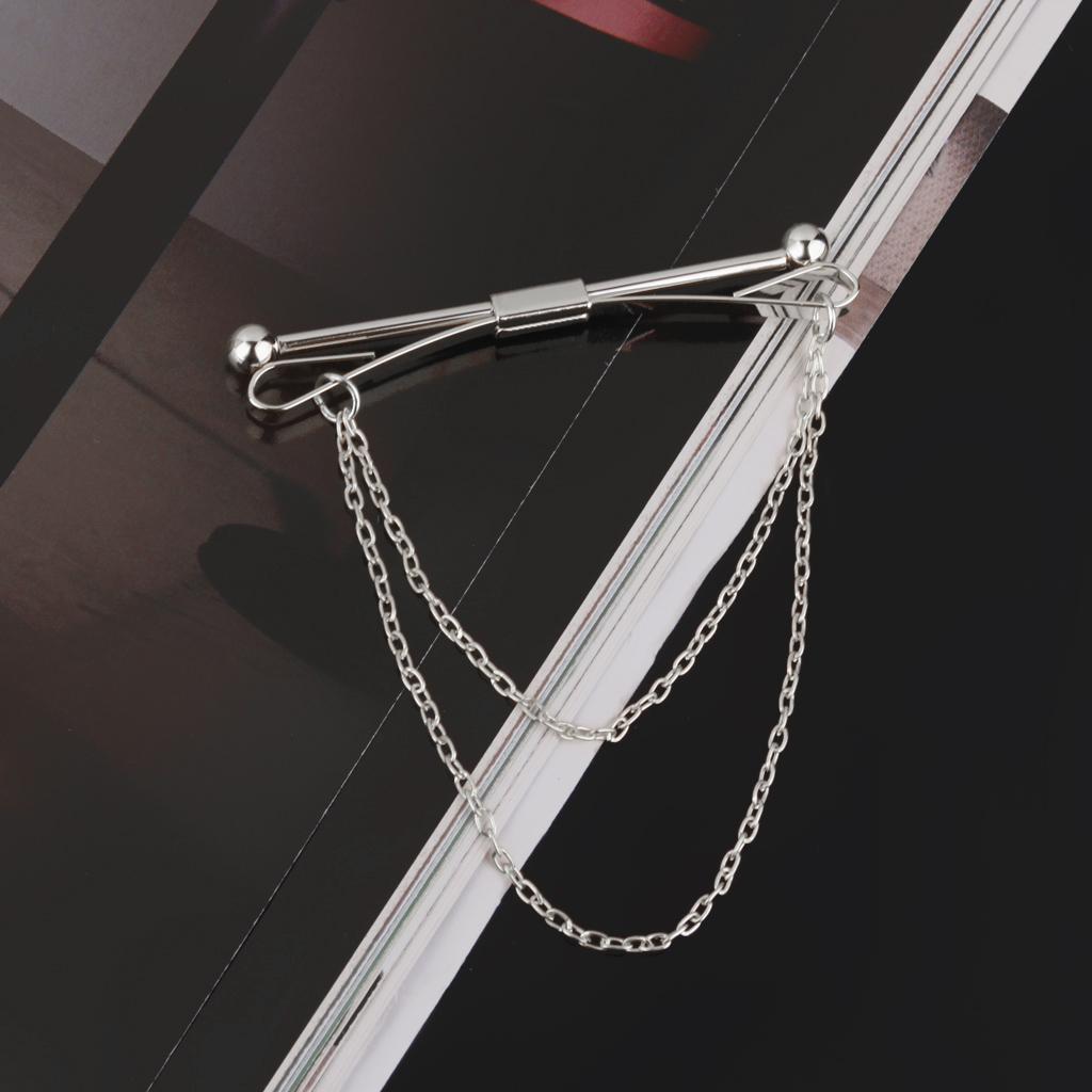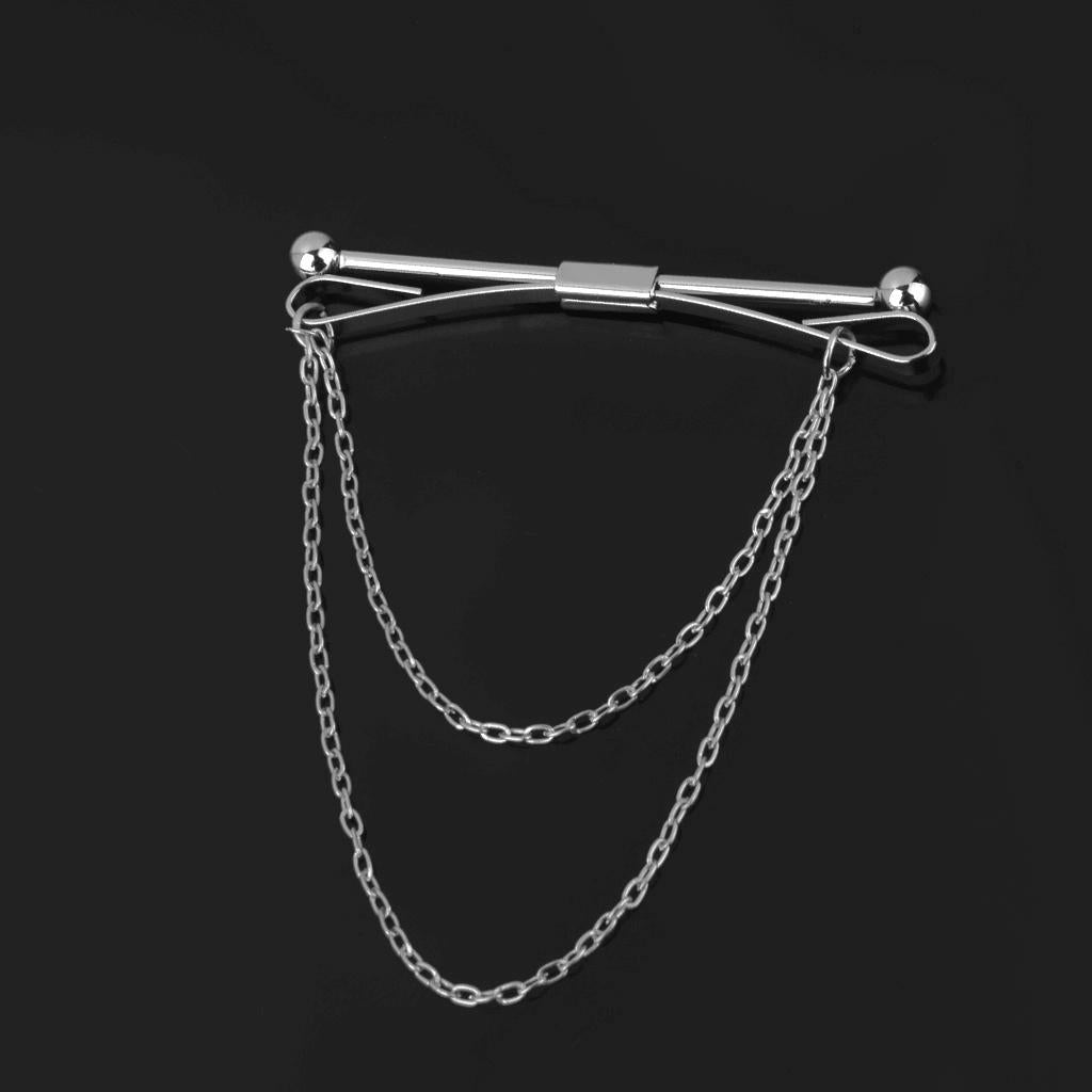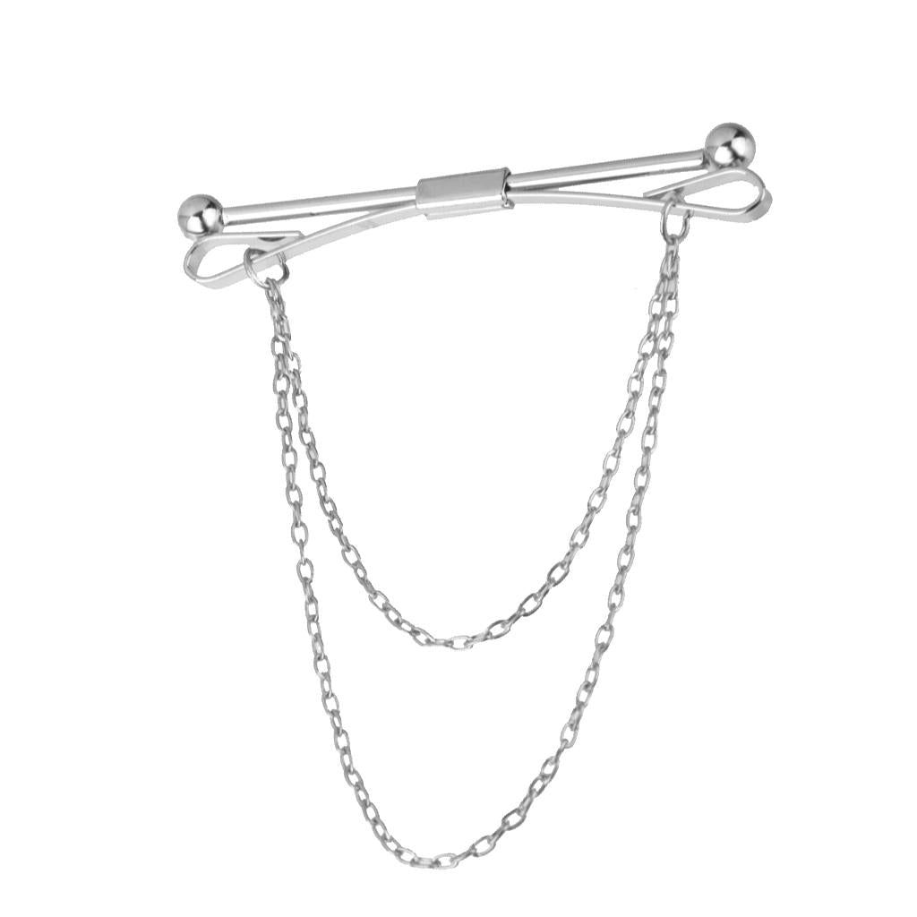 Necktie Shirt Tie Collar Pin Chain Tie Clip Clasp Bar Men's Brooch Silver