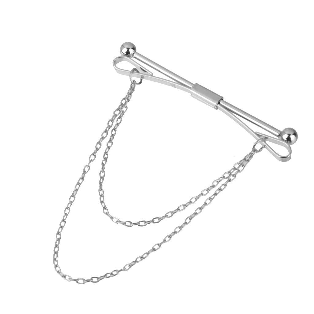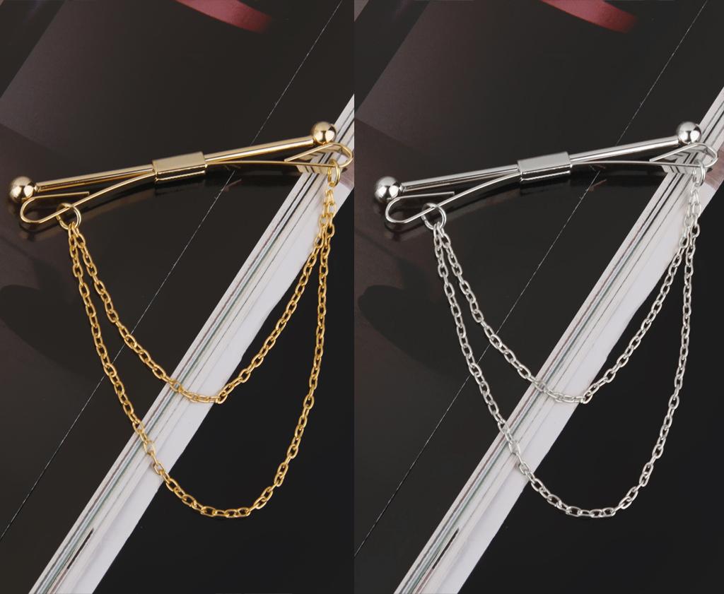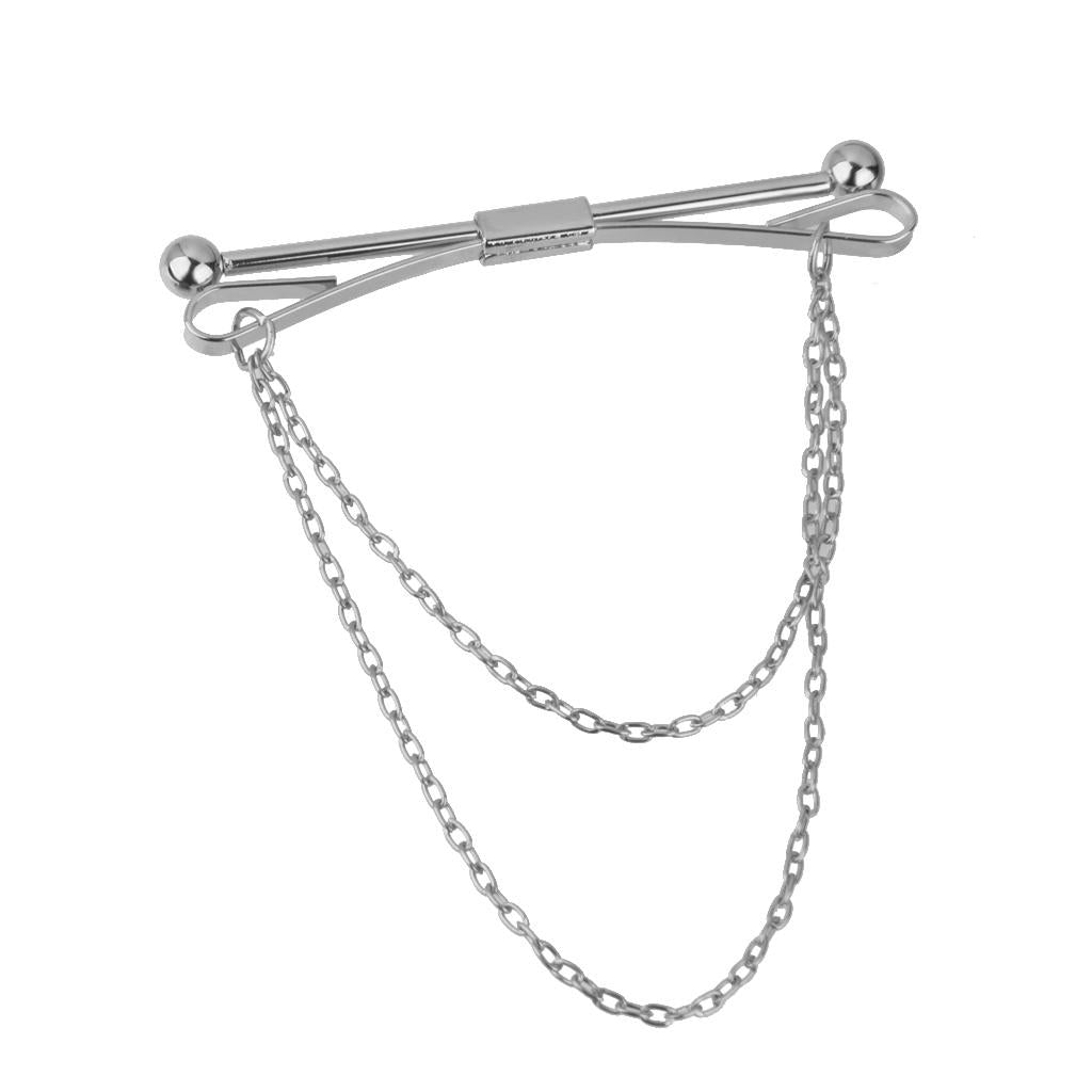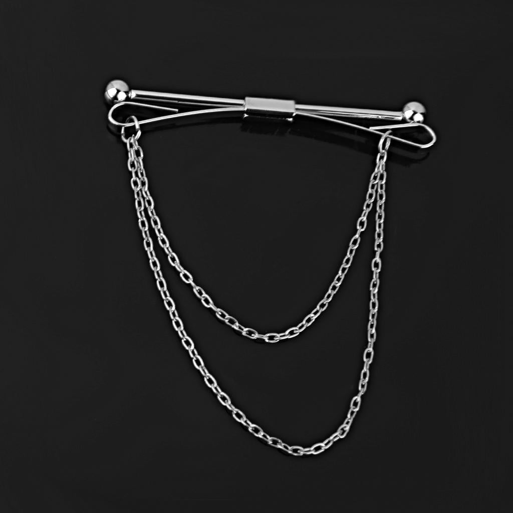 Necktie Shirt Tie Collar Pin Chain Tie Clip Clasp Bar Men's Brooch Silver