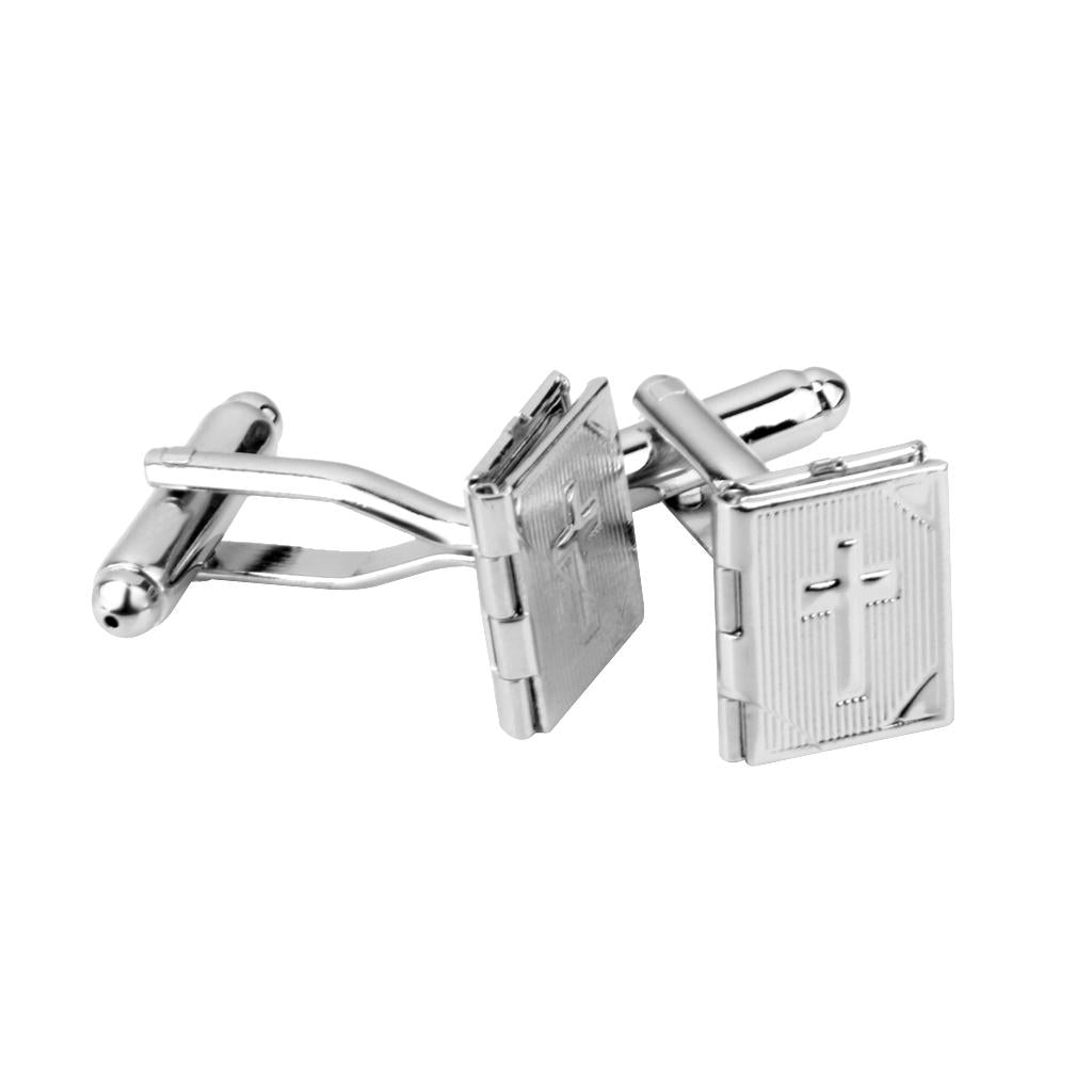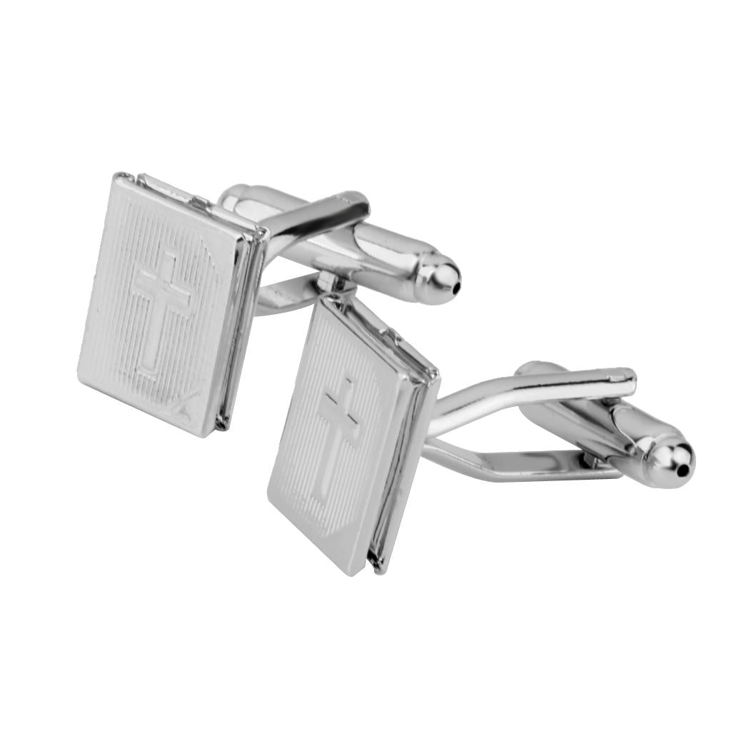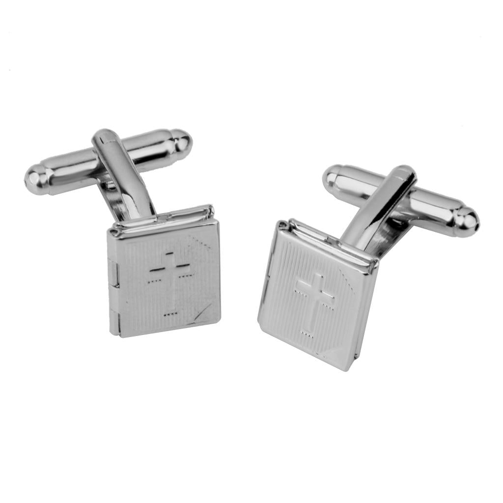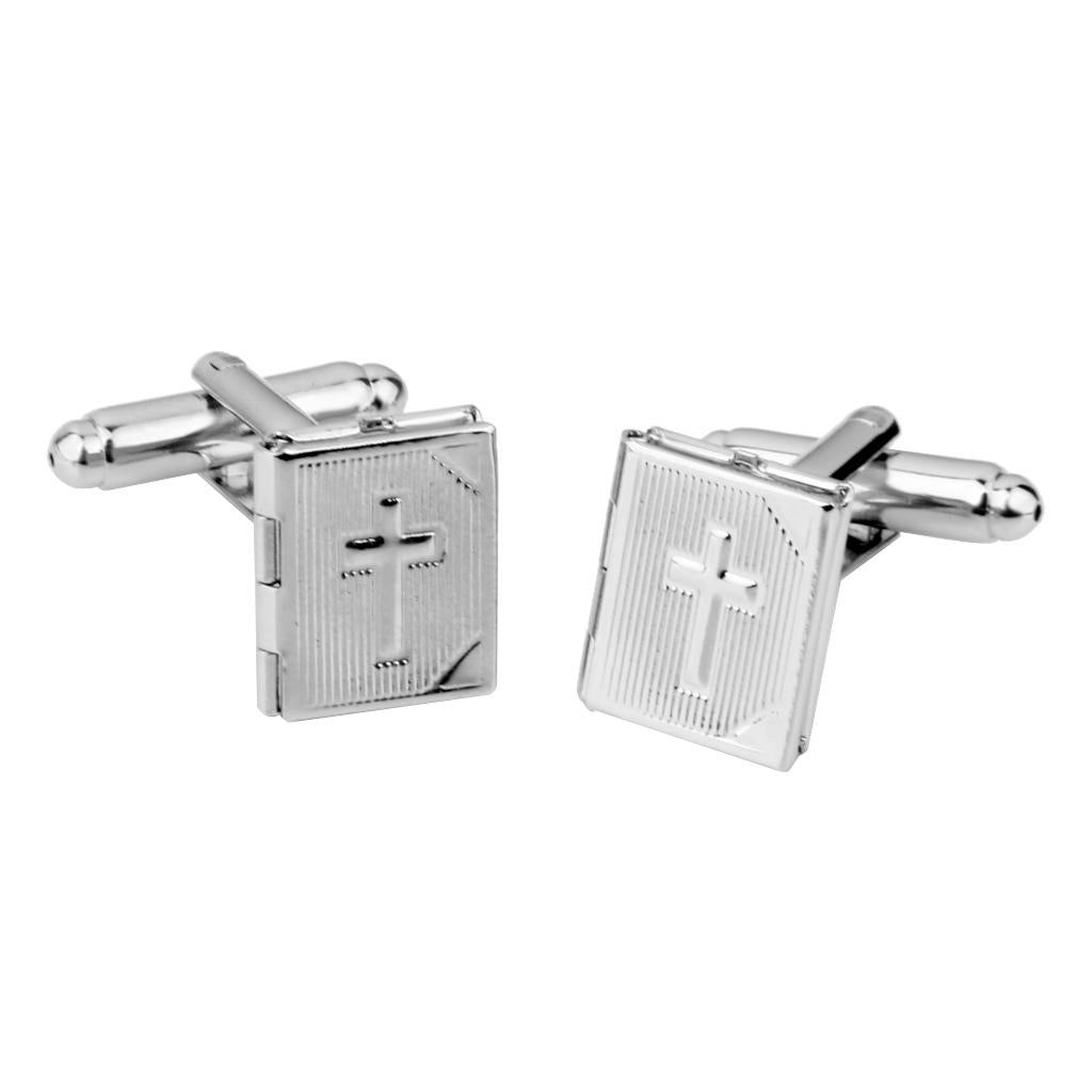 • Novelty rectangle photo locket with cross pattern cufflinks