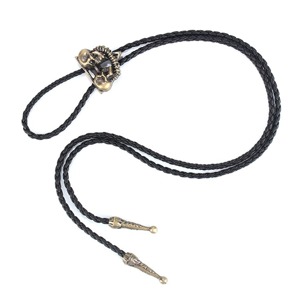 Vintage Western cowboy Skeleton Skull Head Bolo Tie necktie necklace with metal pendant