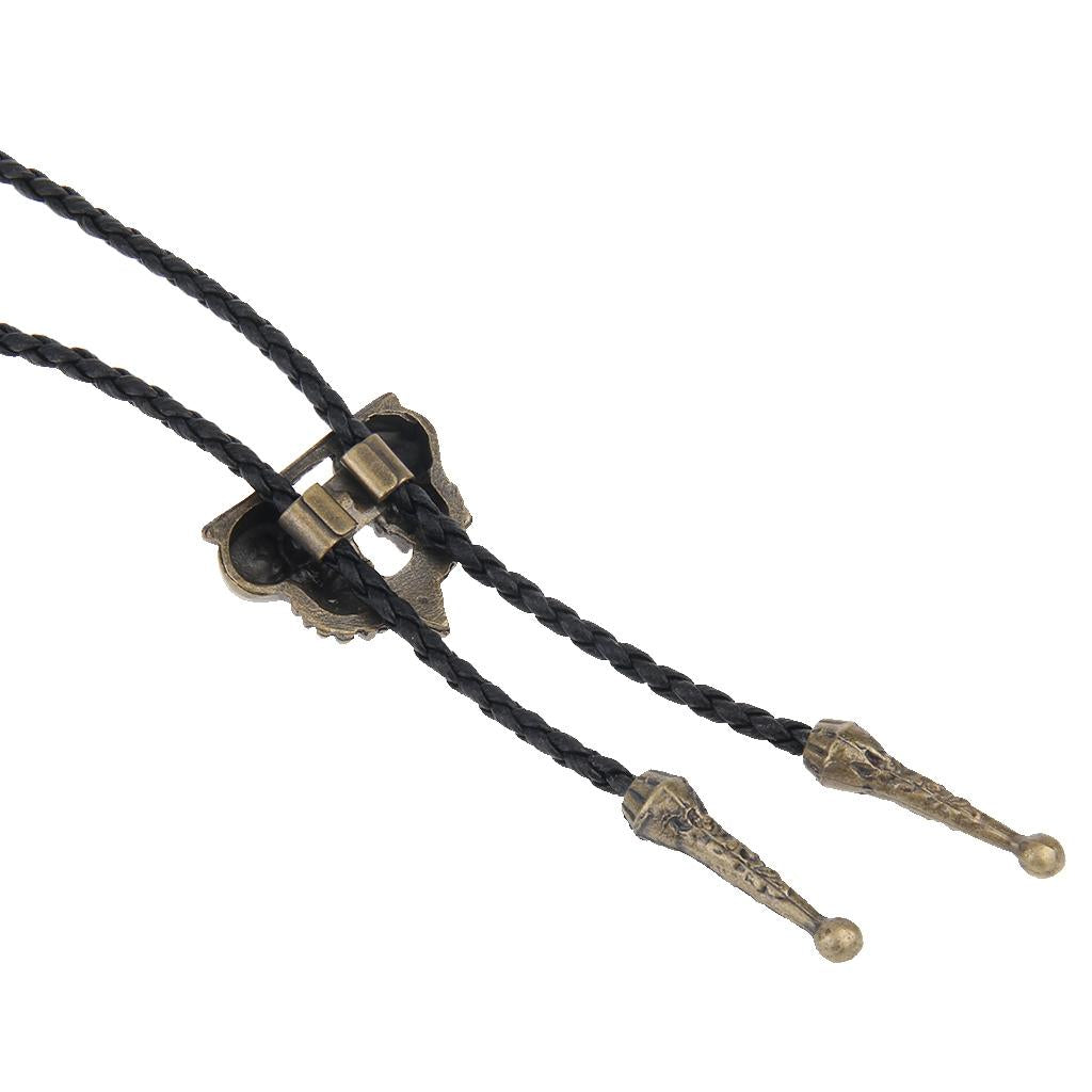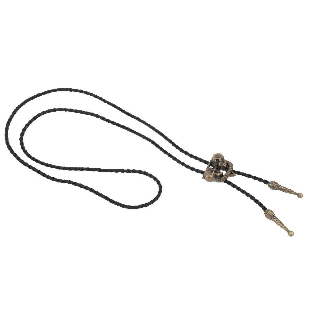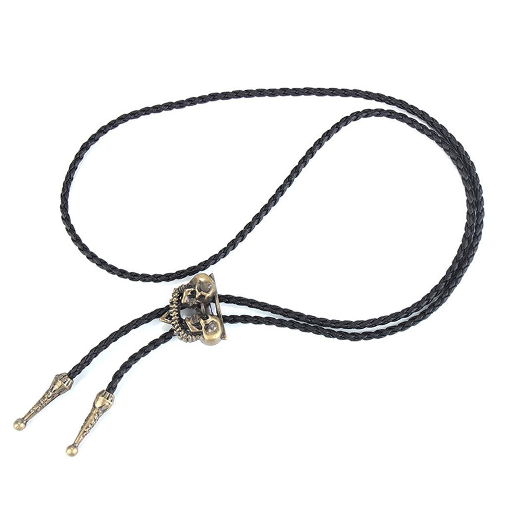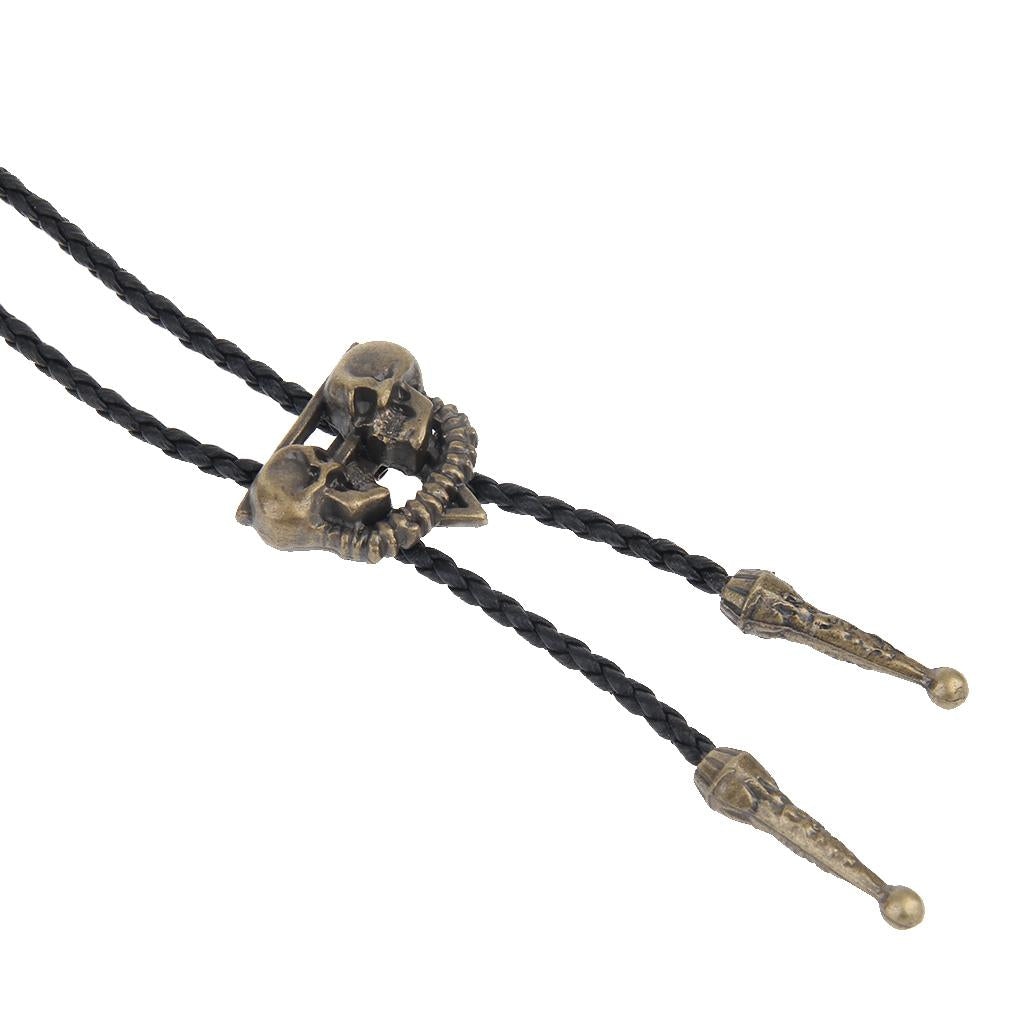 Punk Skeleton Skull Bolo Tie Leather Necktie Necklace Western Antique Copper