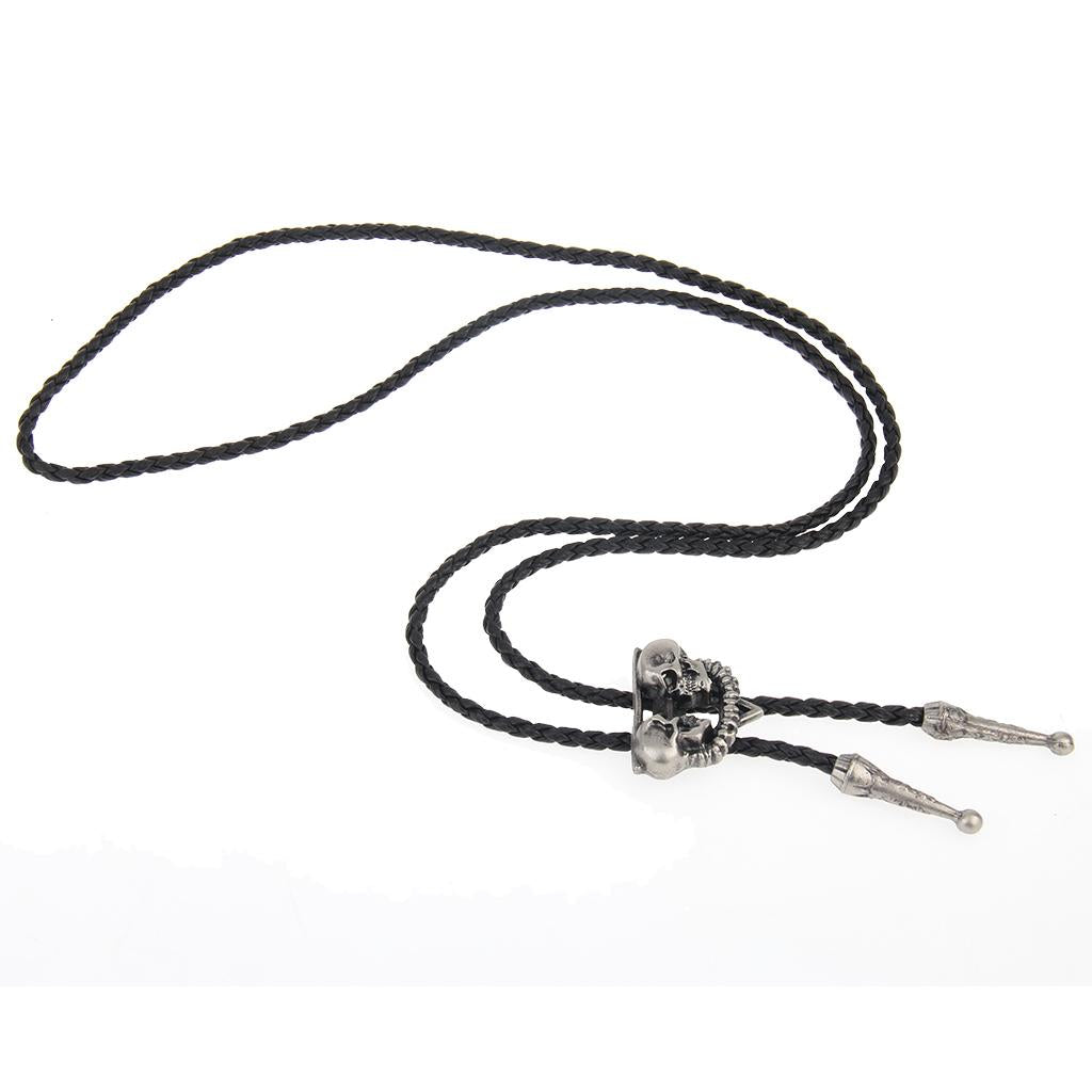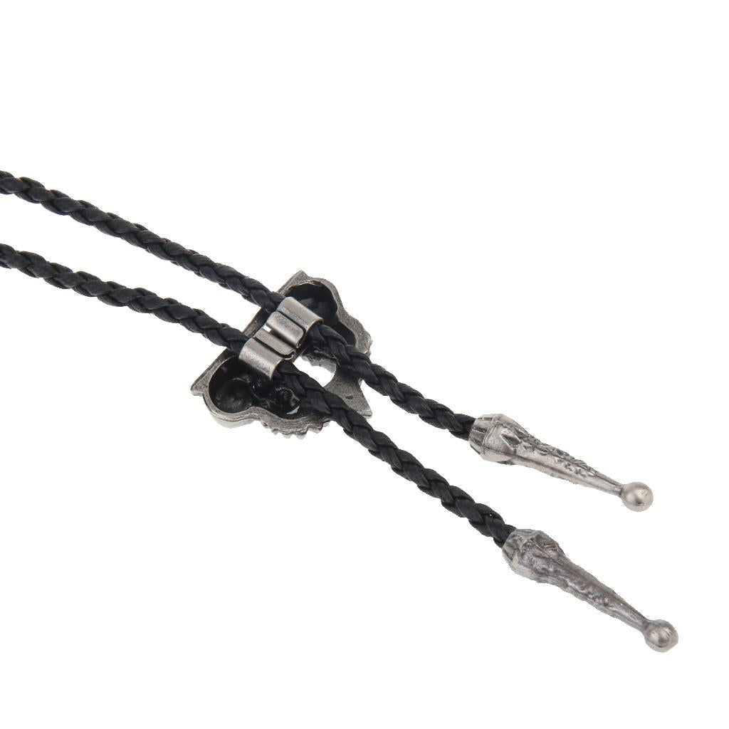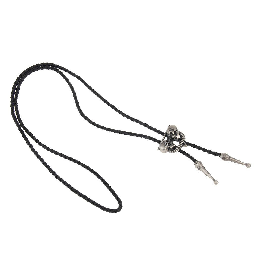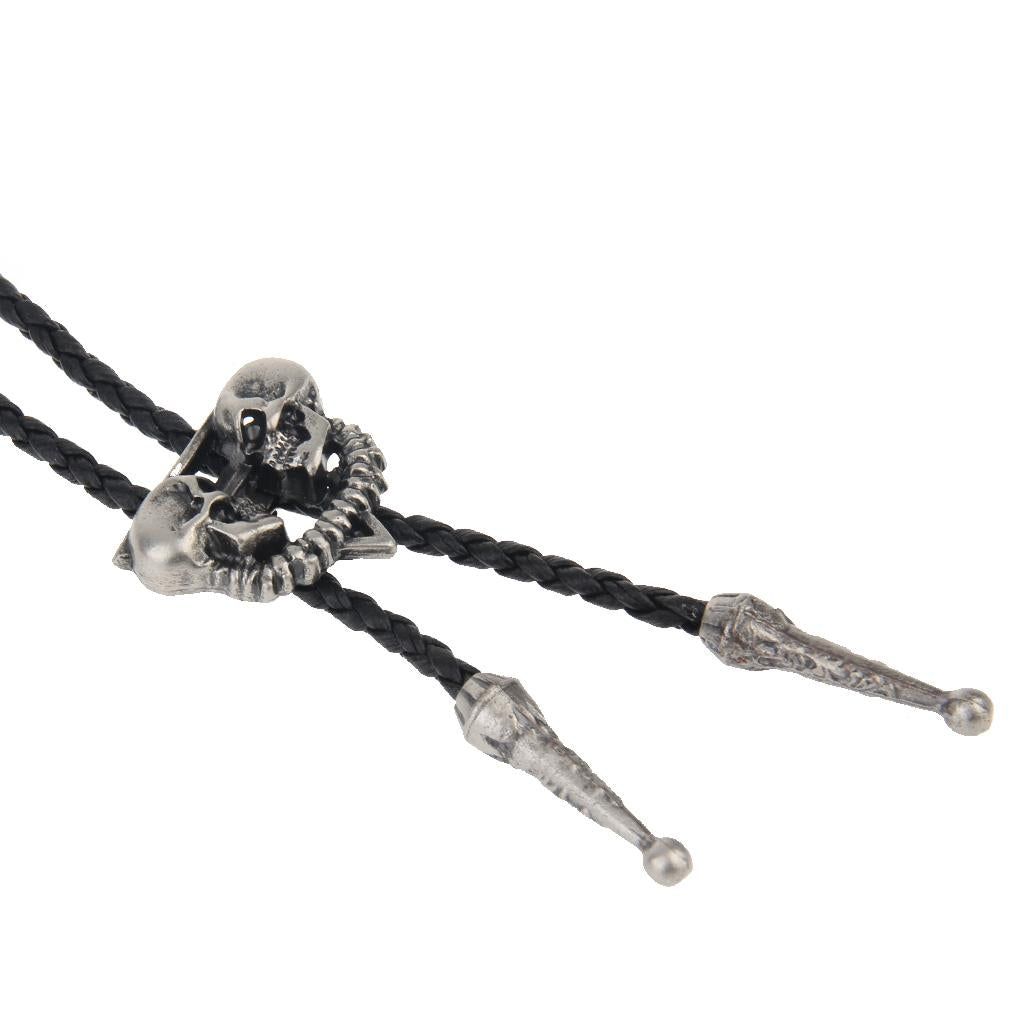 Punk Skeleton Skull Bolo Tie Leather Necktie Necklace Western Antique Silver