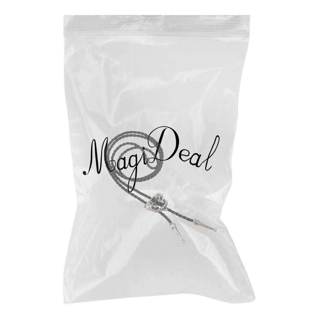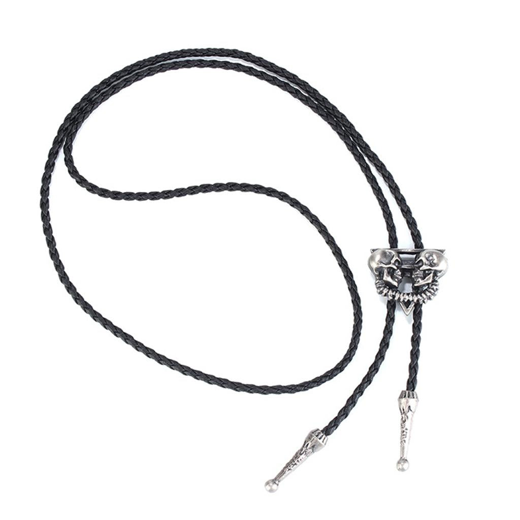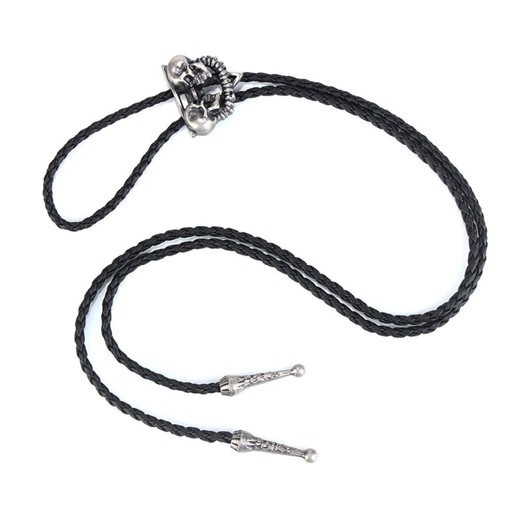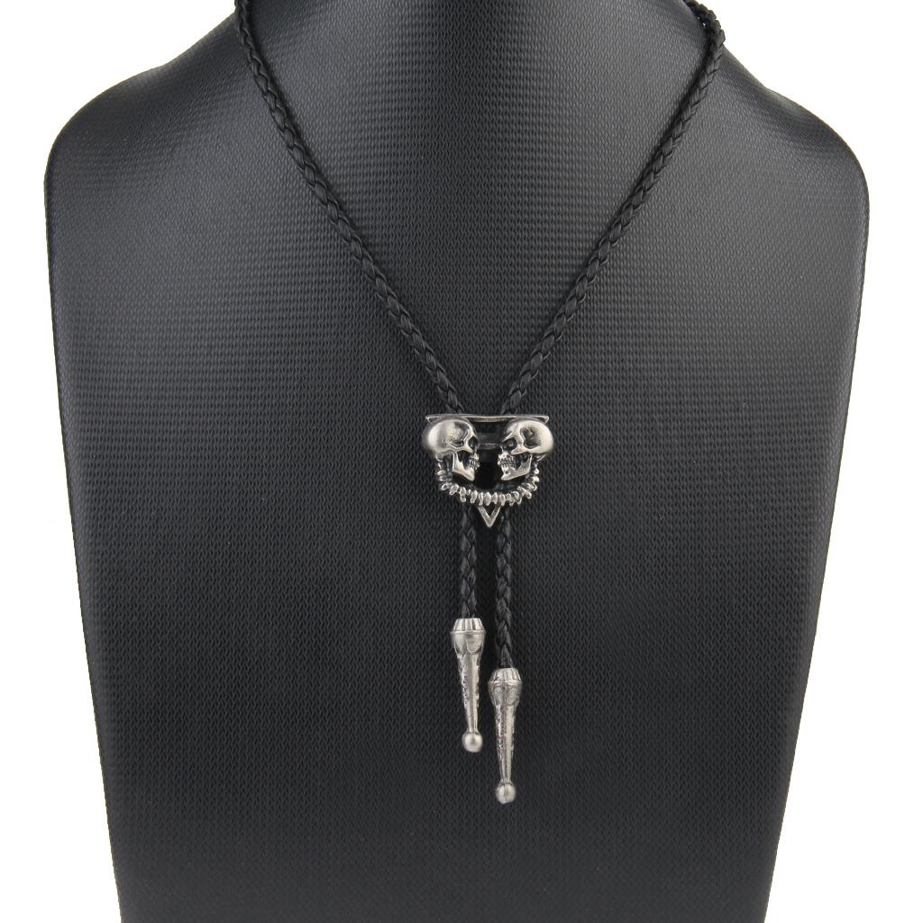 Punk Skeleton Skull Bolo Tie Leather Necktie Necklace Western Antique Silver