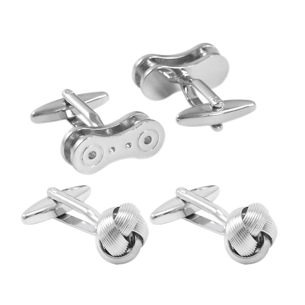 Punk Style Silver Brass 3D Machinery Bicycle Chain & Knot Modeling Men Shirt Cufflinks Tie Links