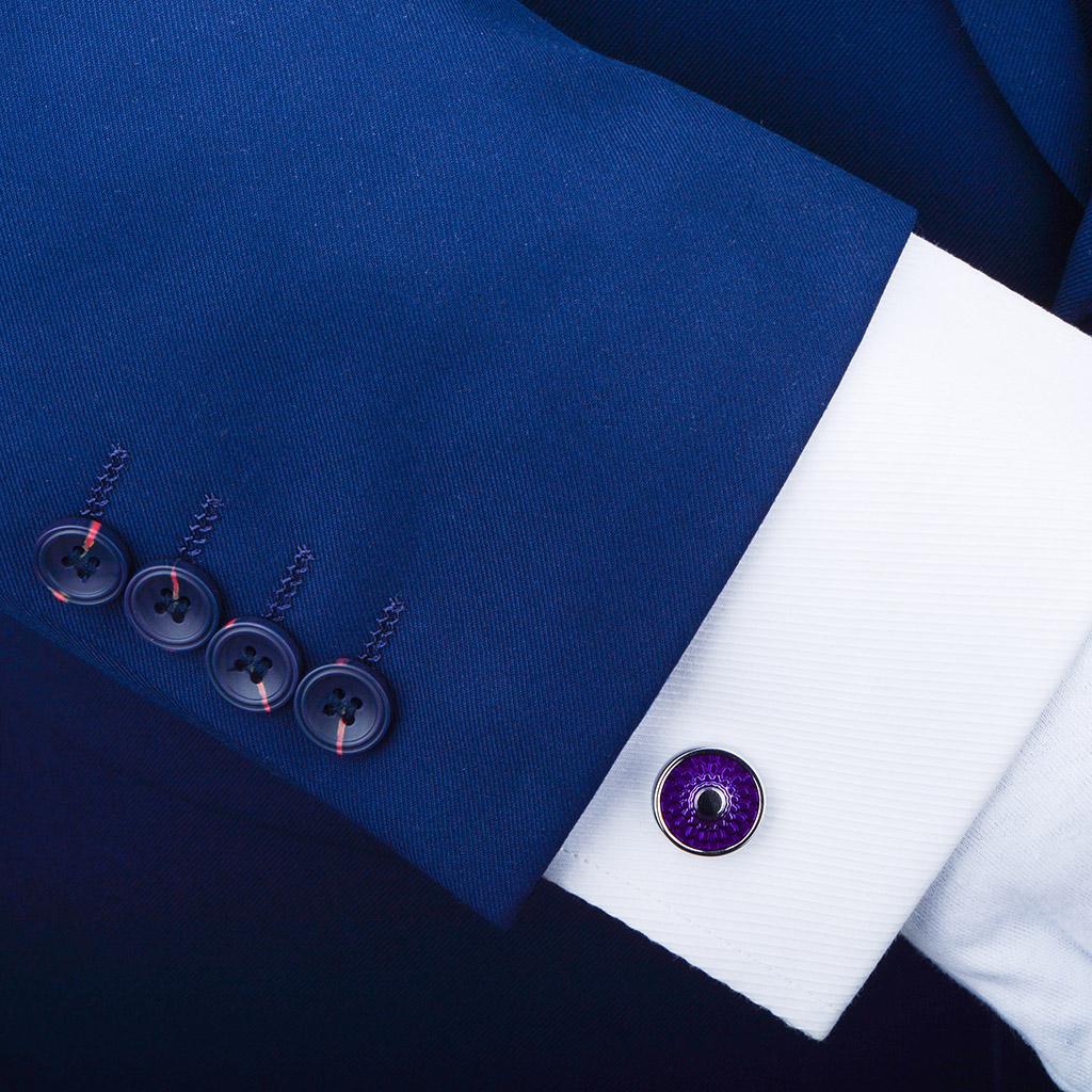 Savannah Men's Business Round Purple Transparent Oil French Shirt Cufflink