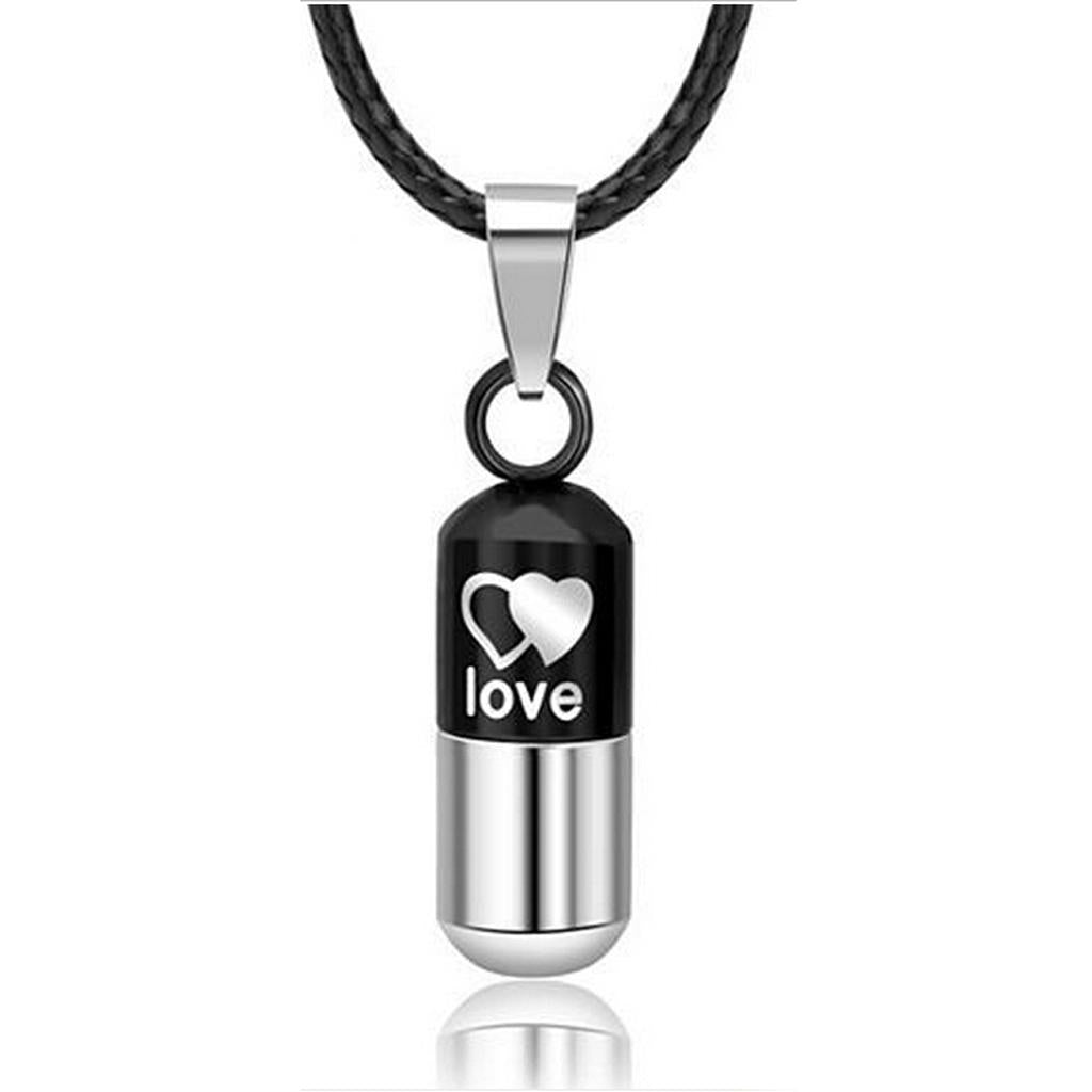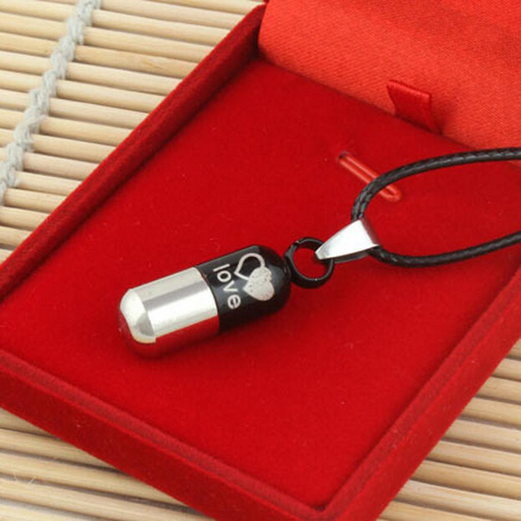 Stainless Love Pill Keeper Capsule Tablet Pendant Necklace Chain Unisex