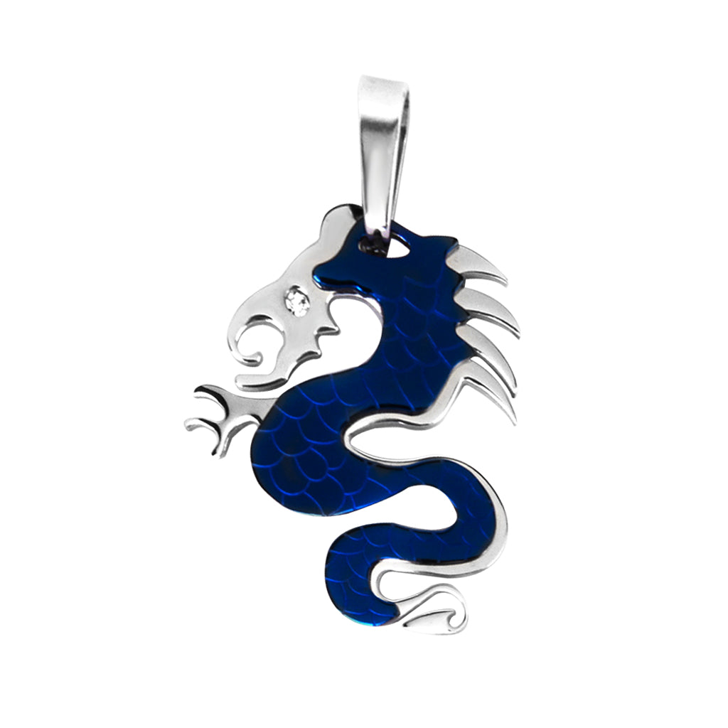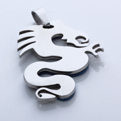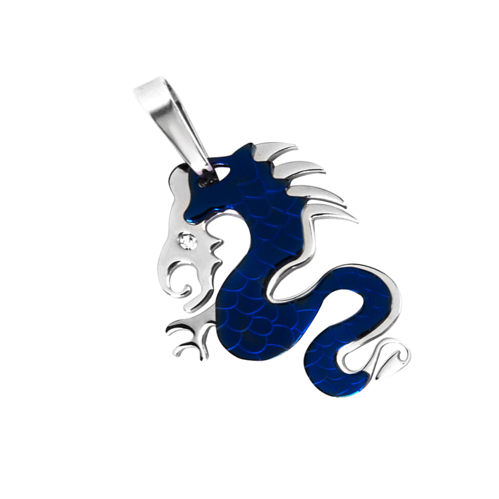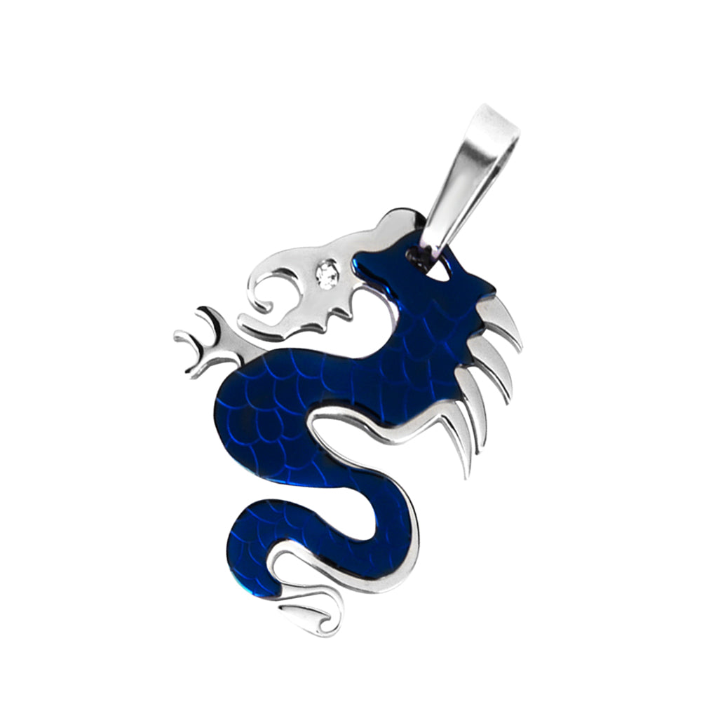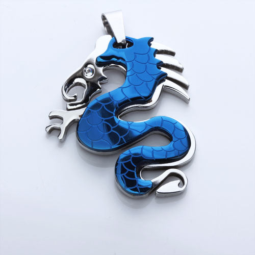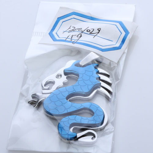 Stainless Steel Dragon Necklace Charm Pendant w/ Rhinestone - Blue
