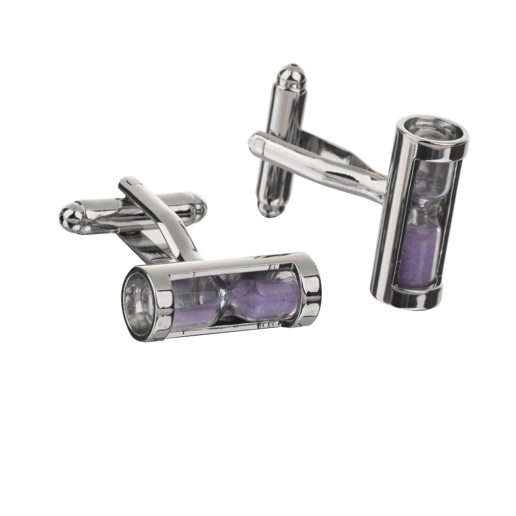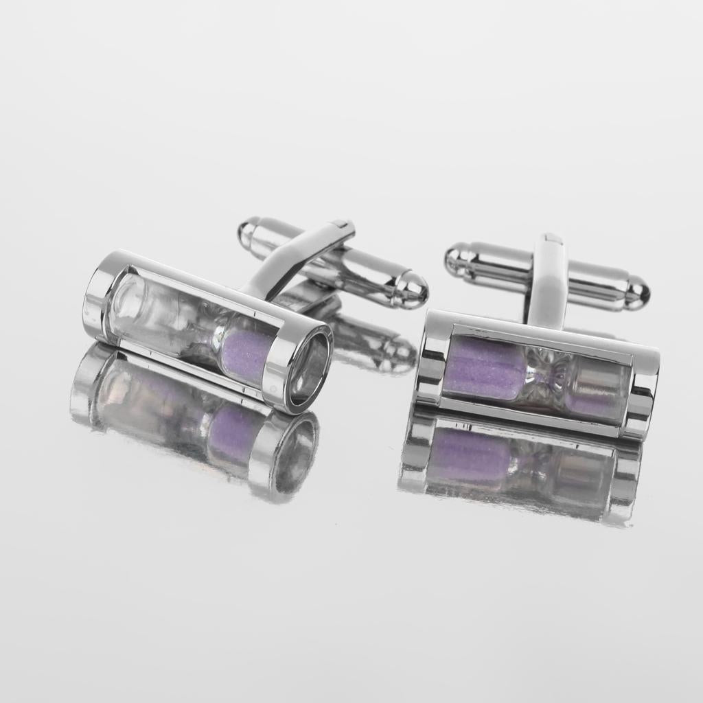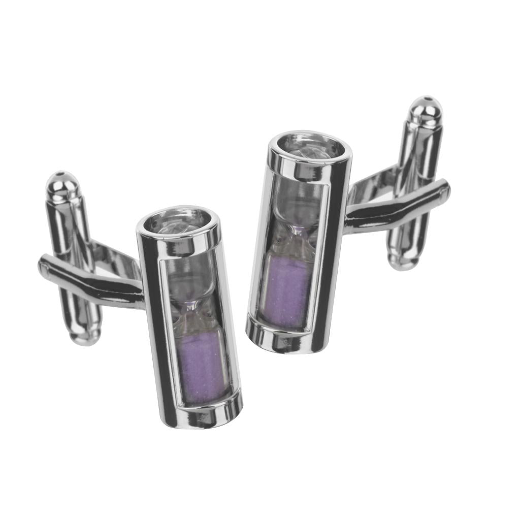 Stylish Mens Sand Timer Cufflinks Novelty Hourglass Cuff Link Gifts Purple