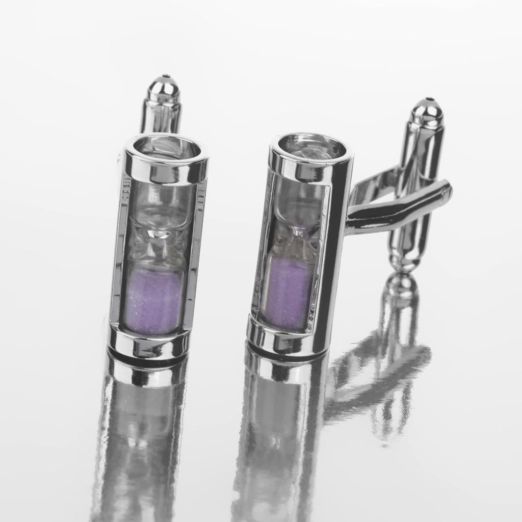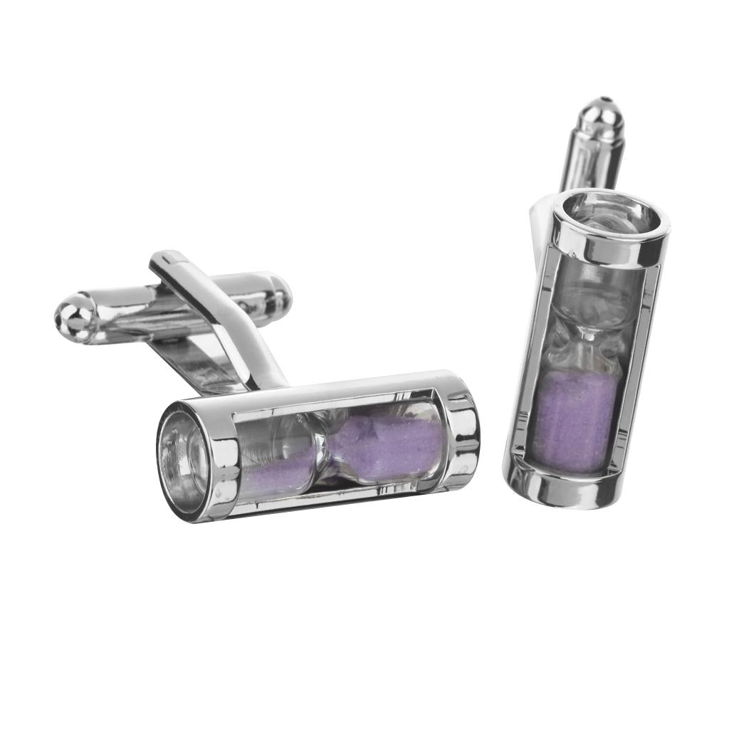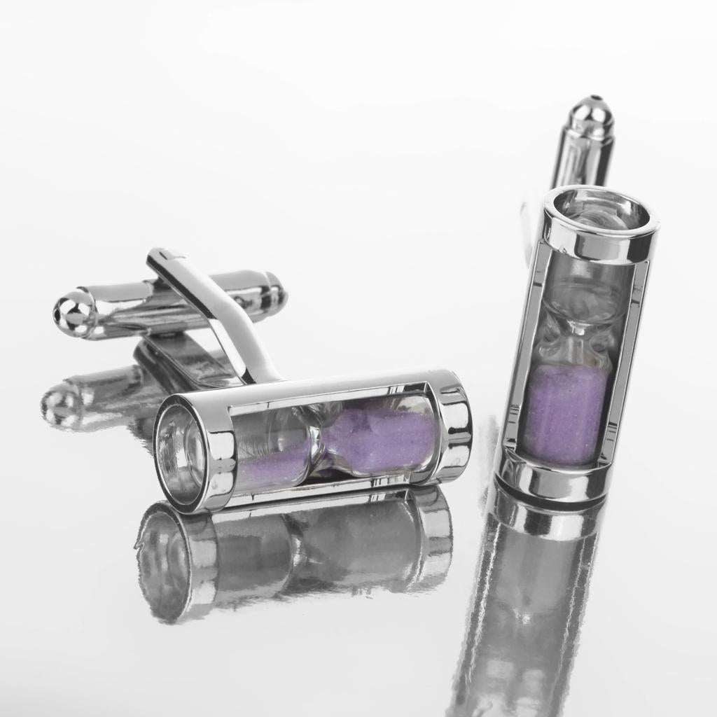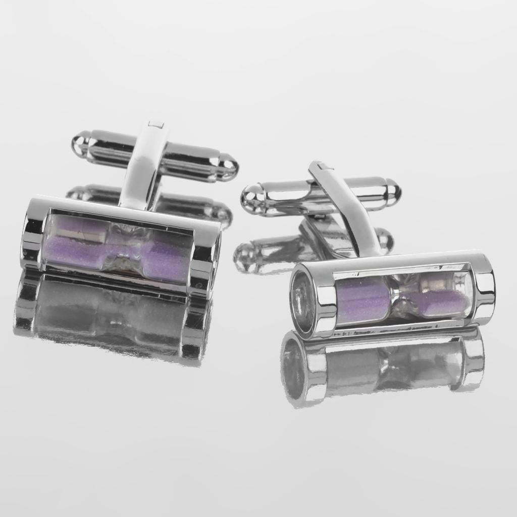 Stylish Mens Sand Timer Cufflinks Novelty Hourglass Cuff Link Gifts Purple