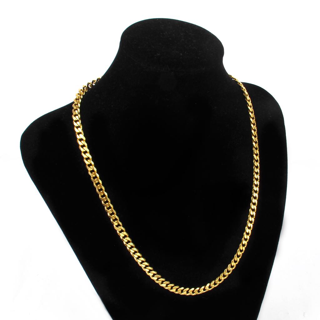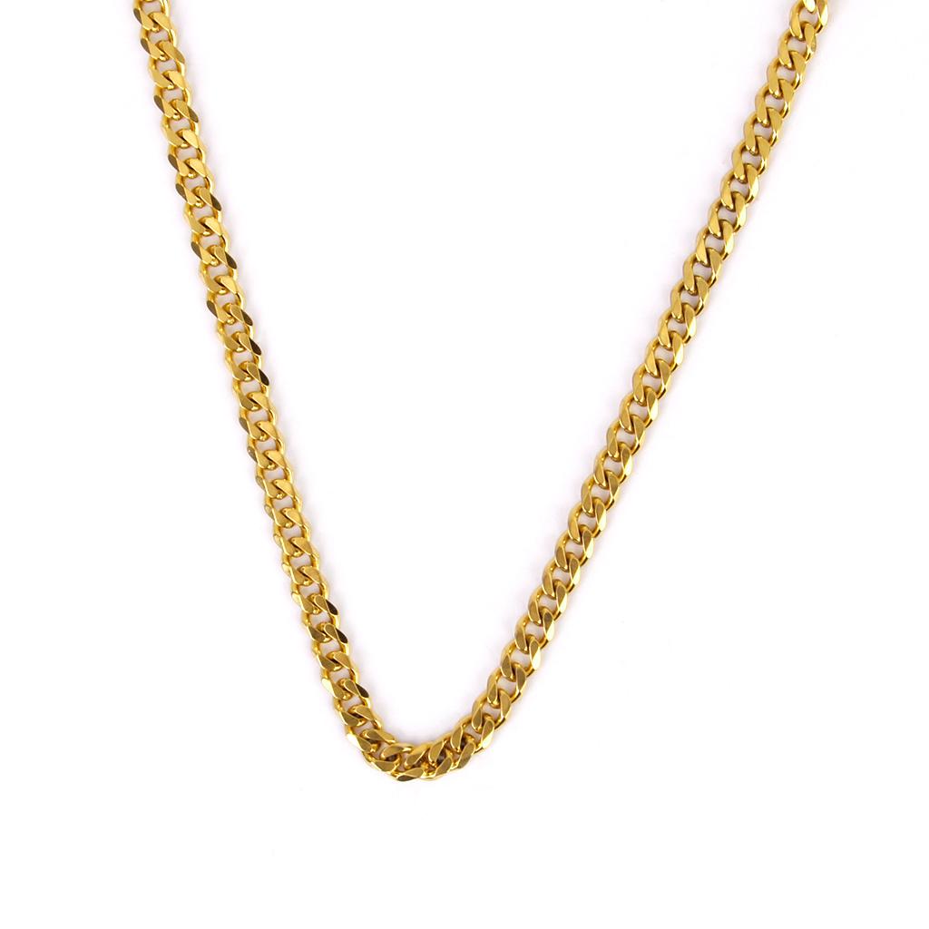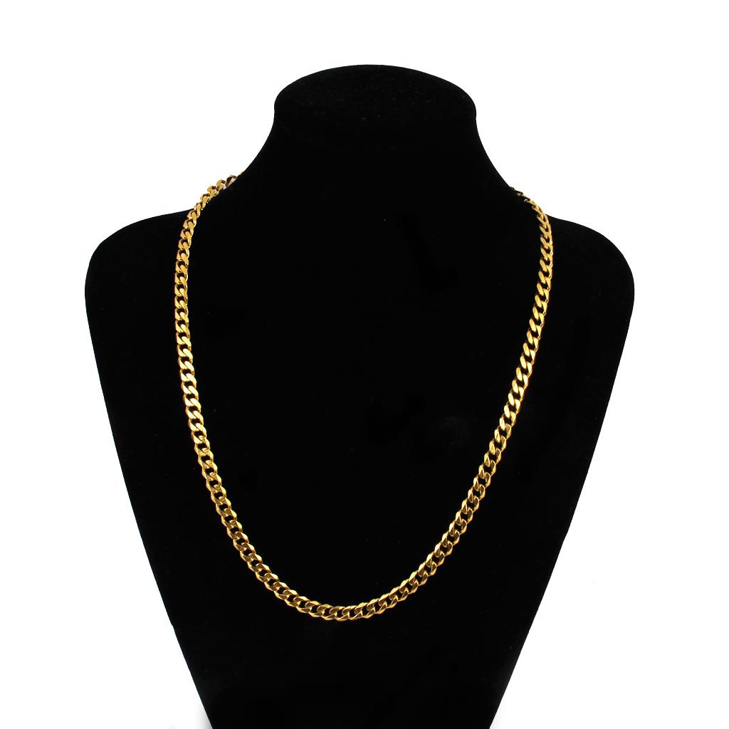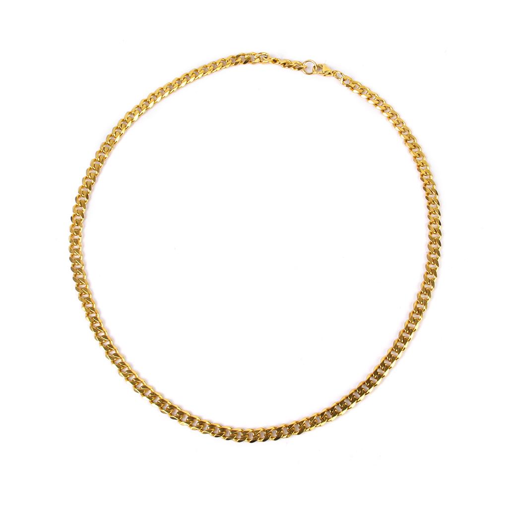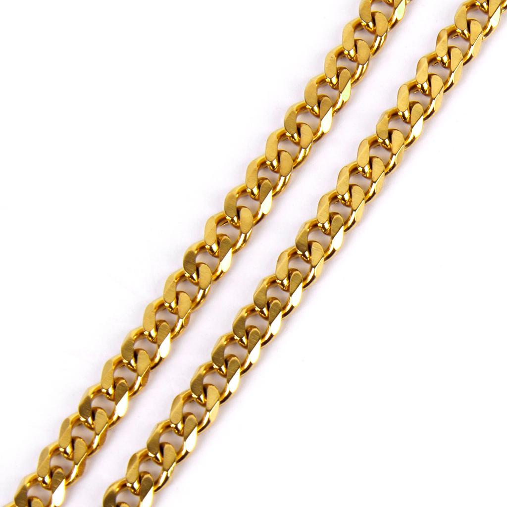 Unisex Fashion Stainless Steel Necklace Flat Curb Chain 18K Gold Plated