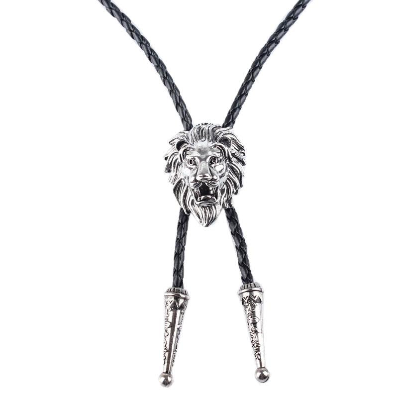 Vintage 3D Lion Head Ties Ancient Silver Western Bolo Tie Cowboy Bola Ties