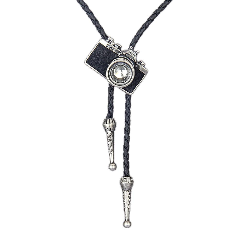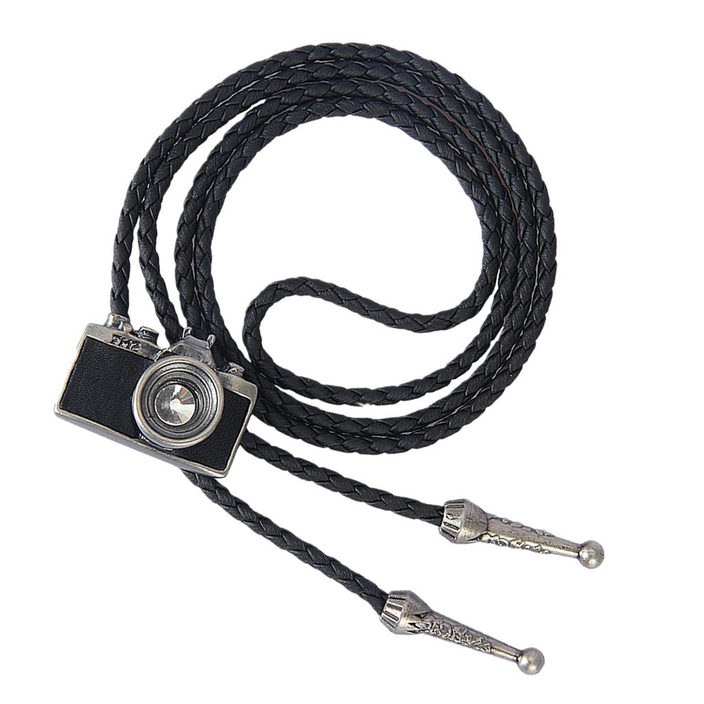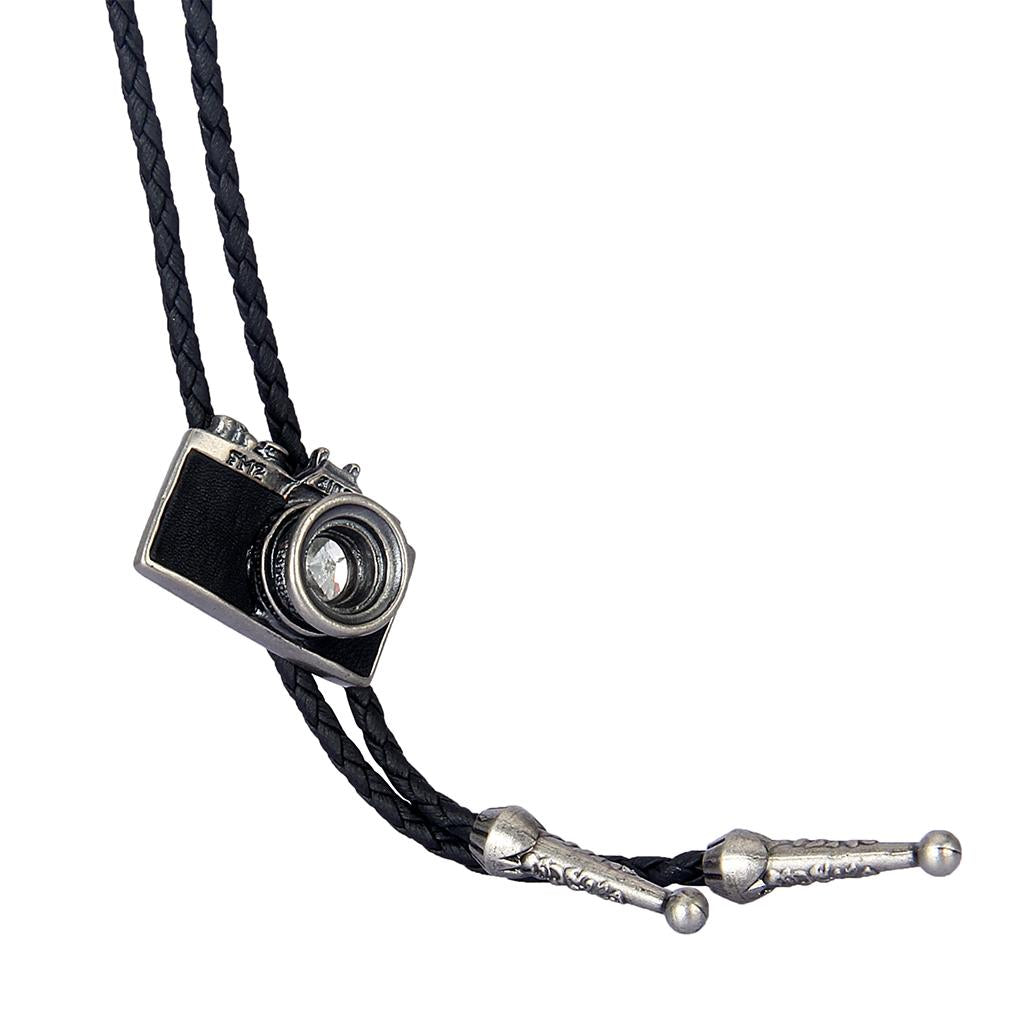 Vintage Western cowboy Rodeo Bolo Tie necktie necklace with Camera Pendant