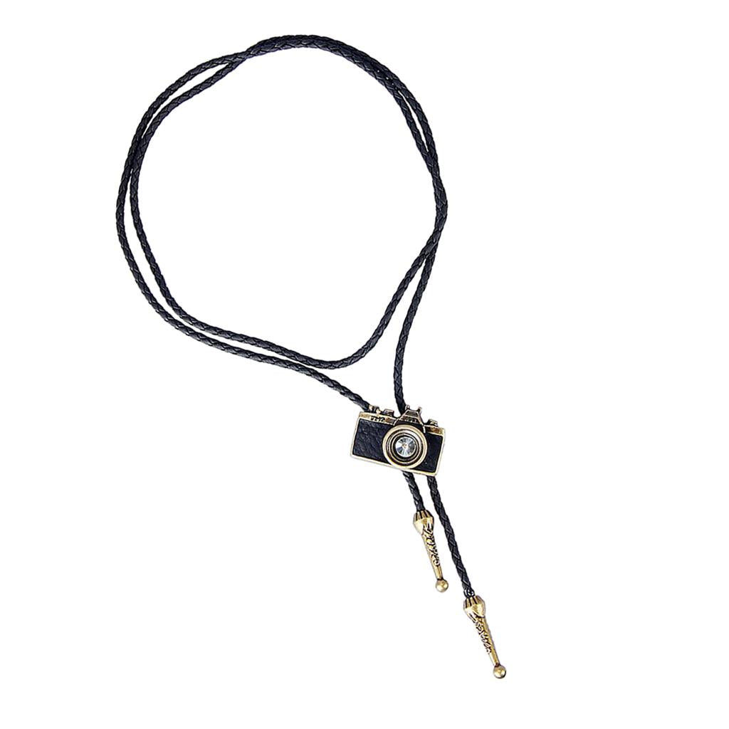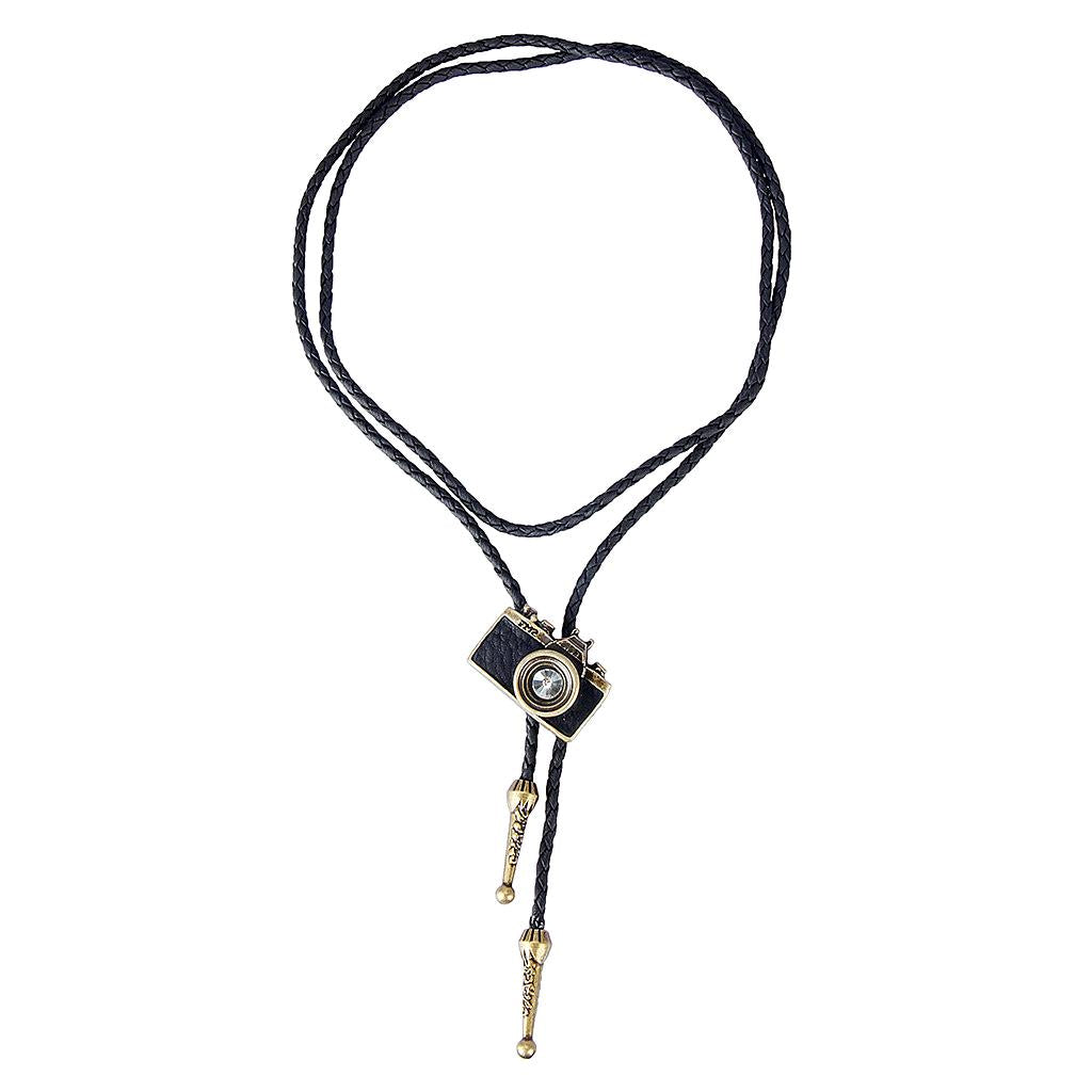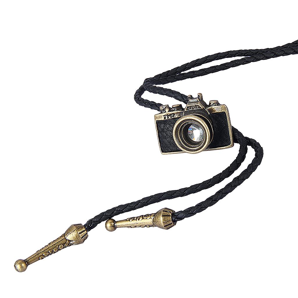 Vintage Western cowboy Rodeo Bolo Tie necktie necklace with Camera Pendant