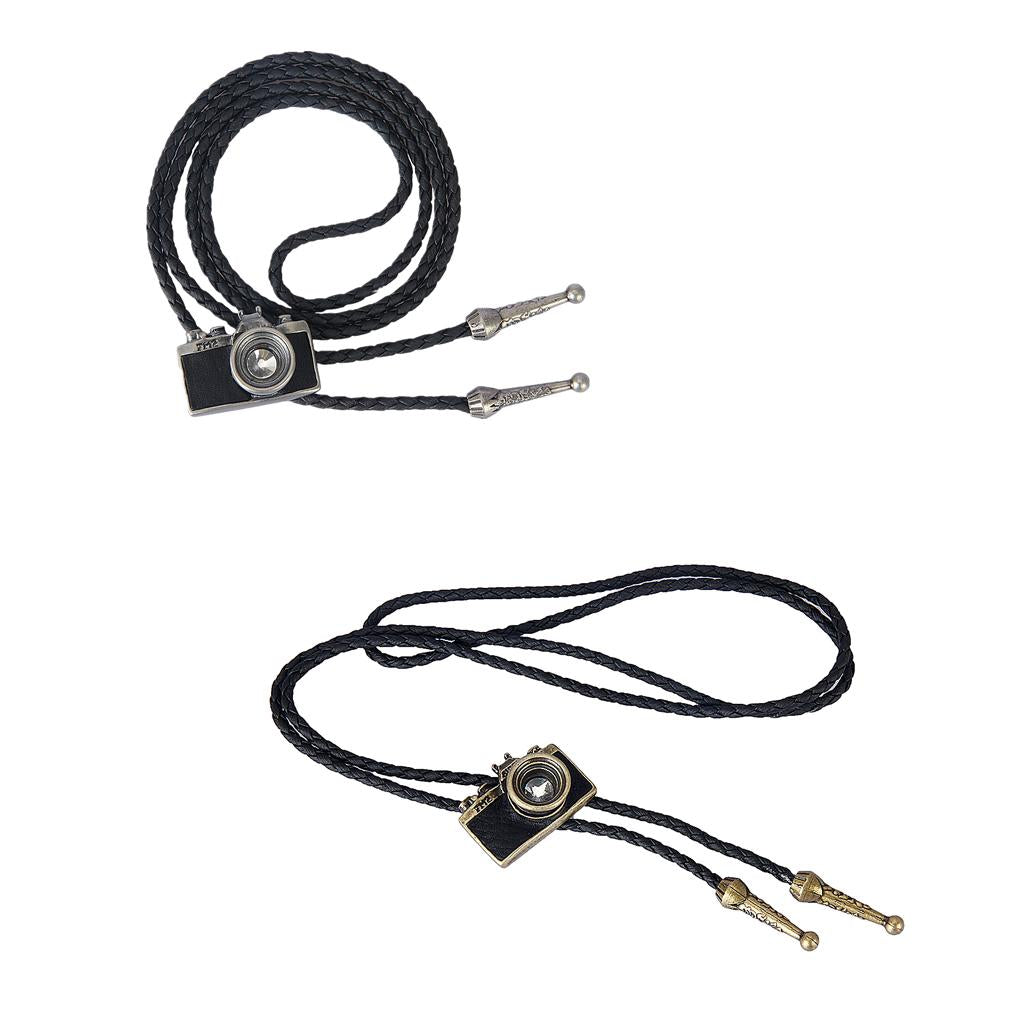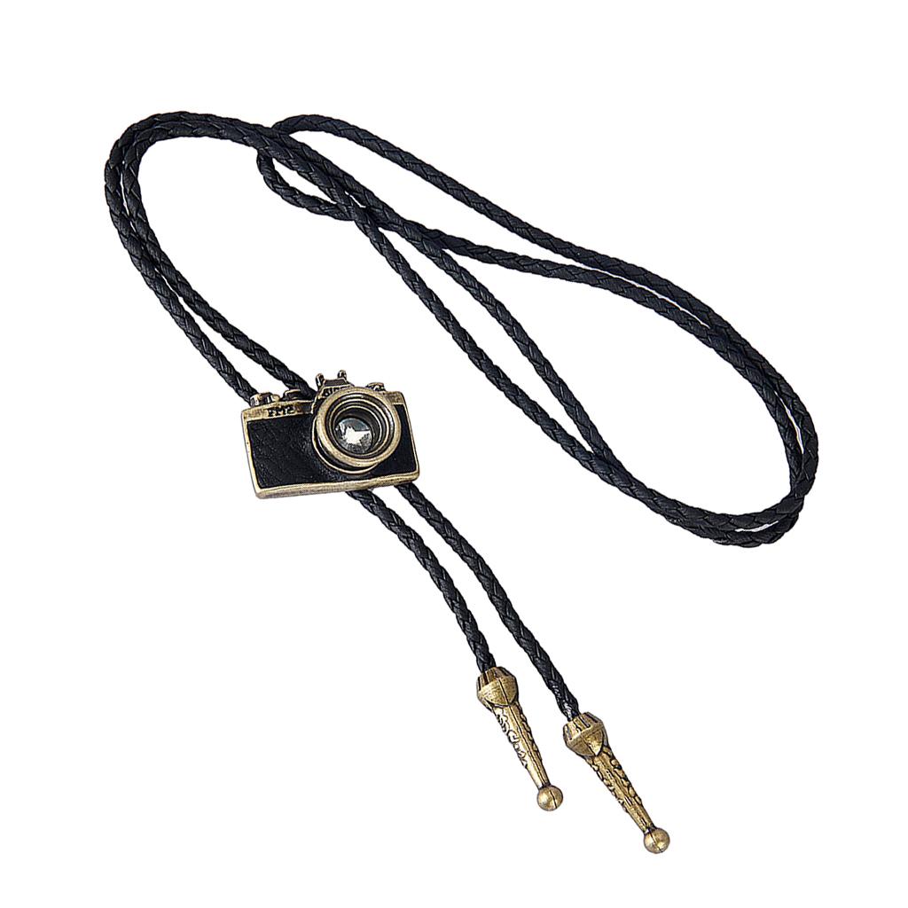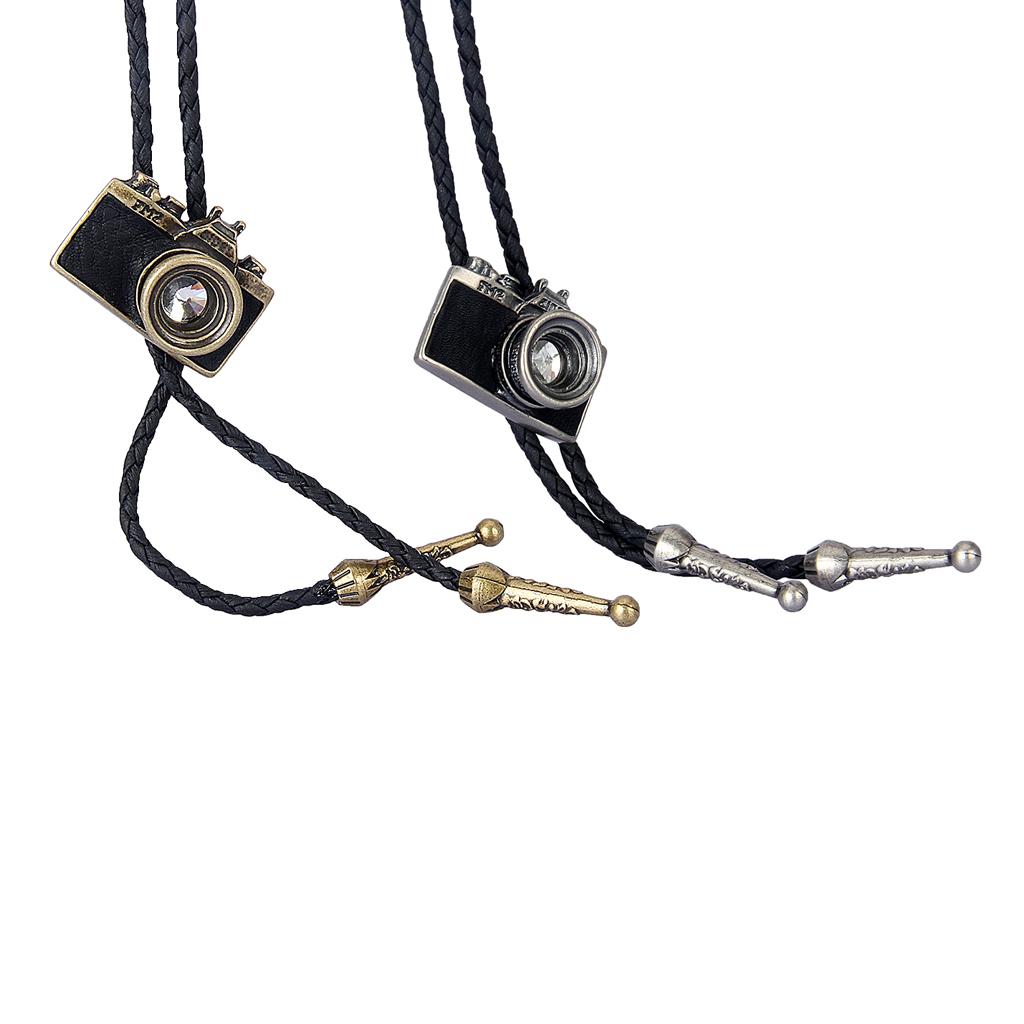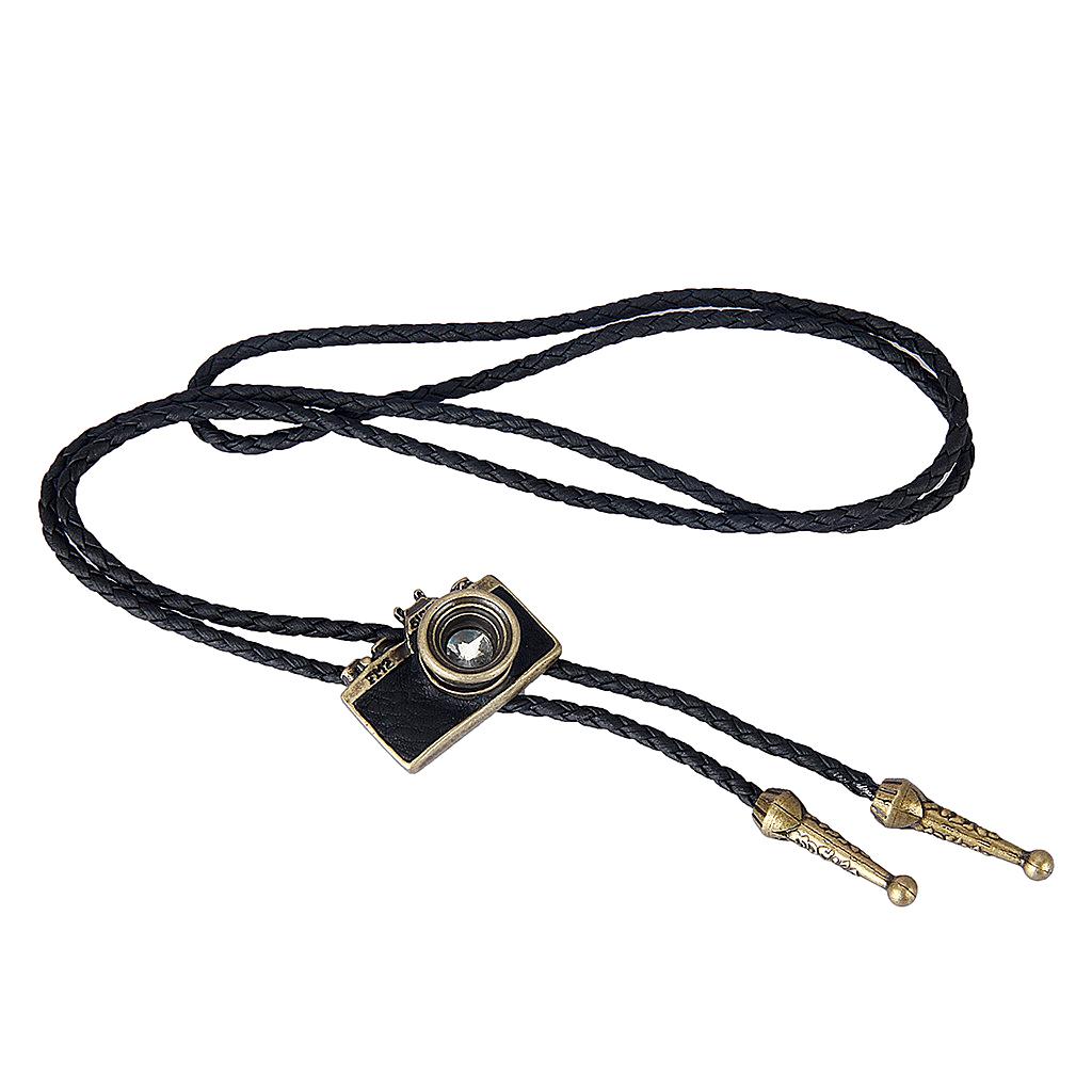 Vintage Western cowboy Rodeo Bolo Tie necktie necklace with Camera Pendant