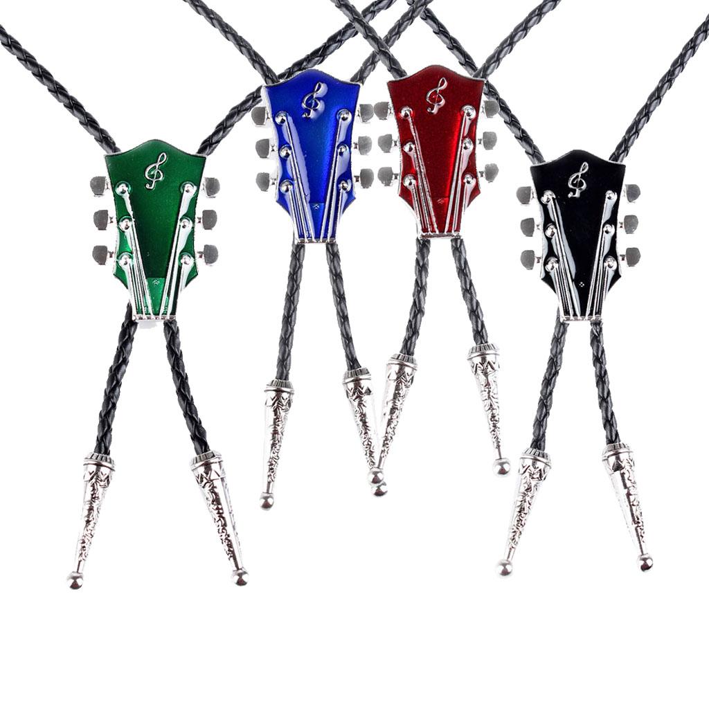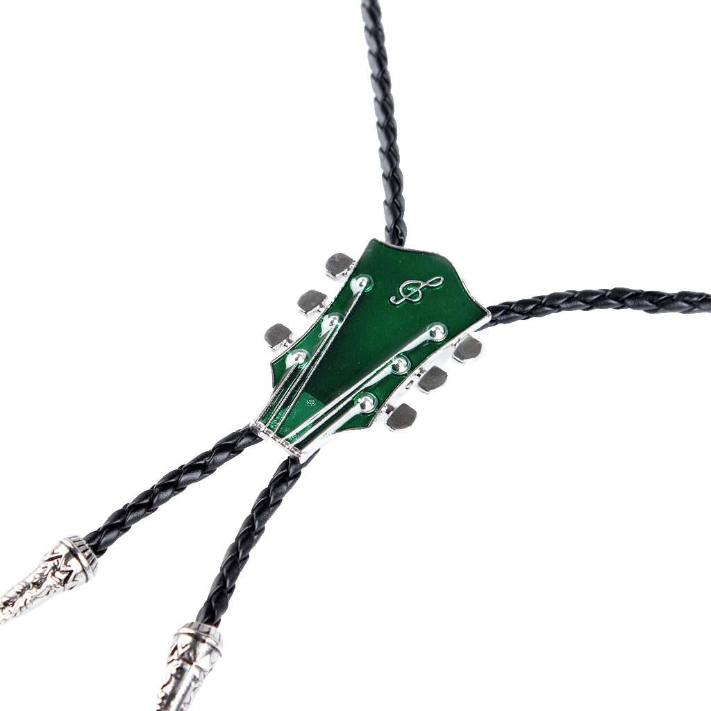 Vintage Countryside Guitar Head Cowboy Nostalgic Bolo Leather Necktie Green