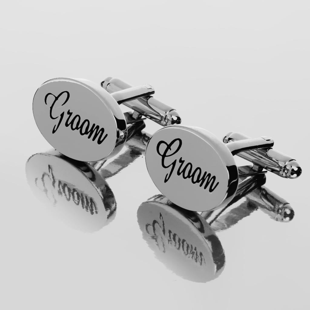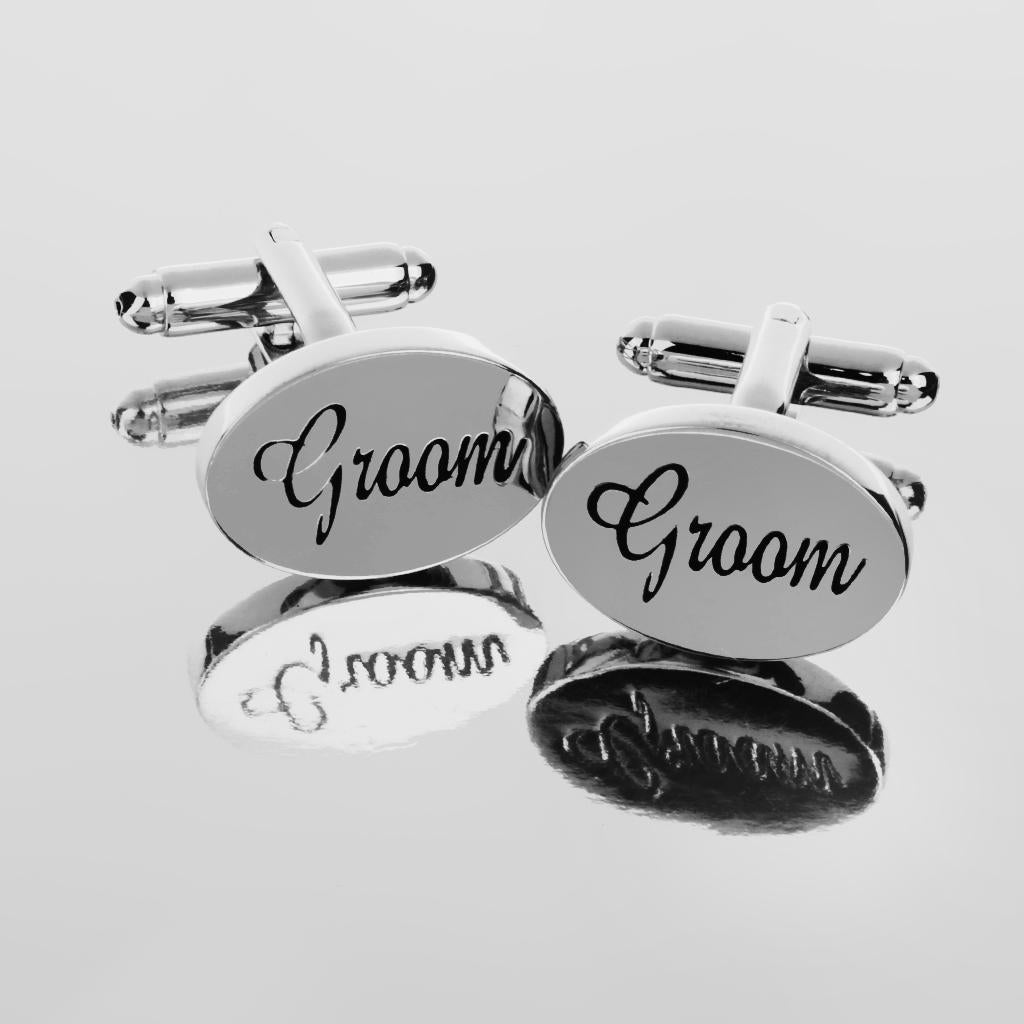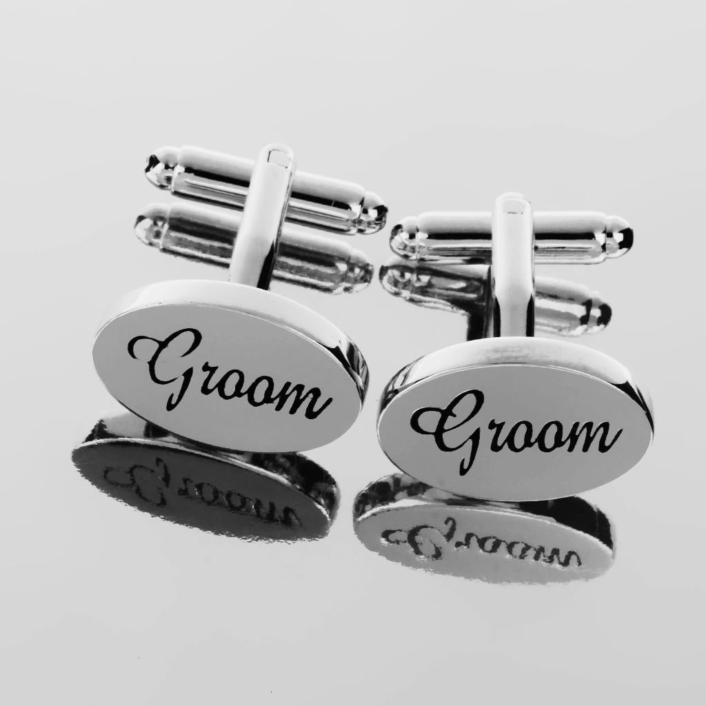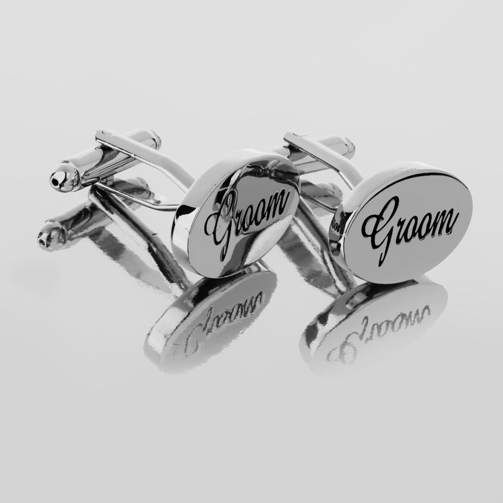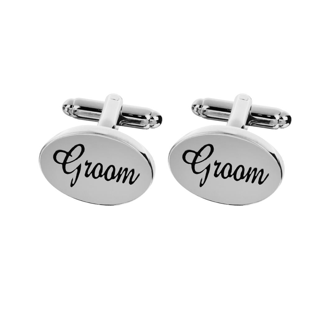 Wedding Men's Shirt Cufflinks Groom Gift Vintage Oval Cuff Link Silver
