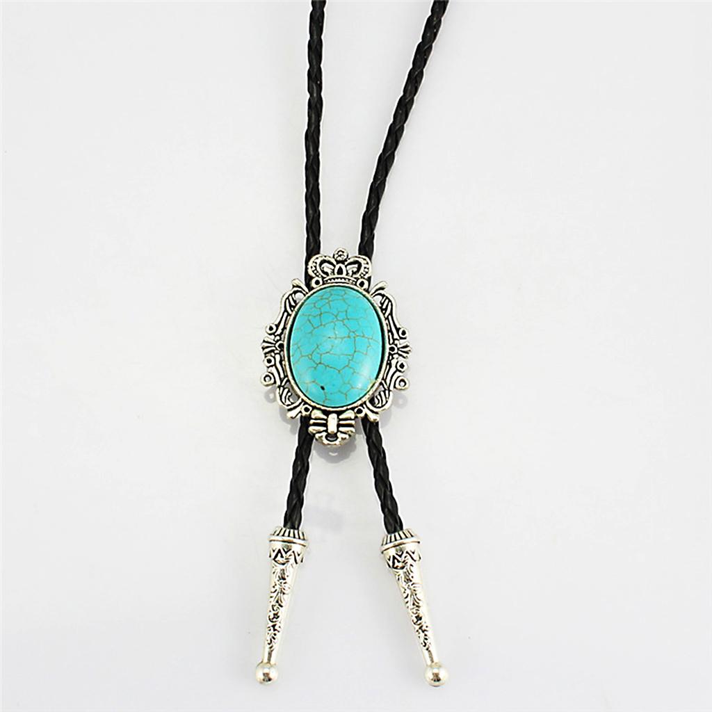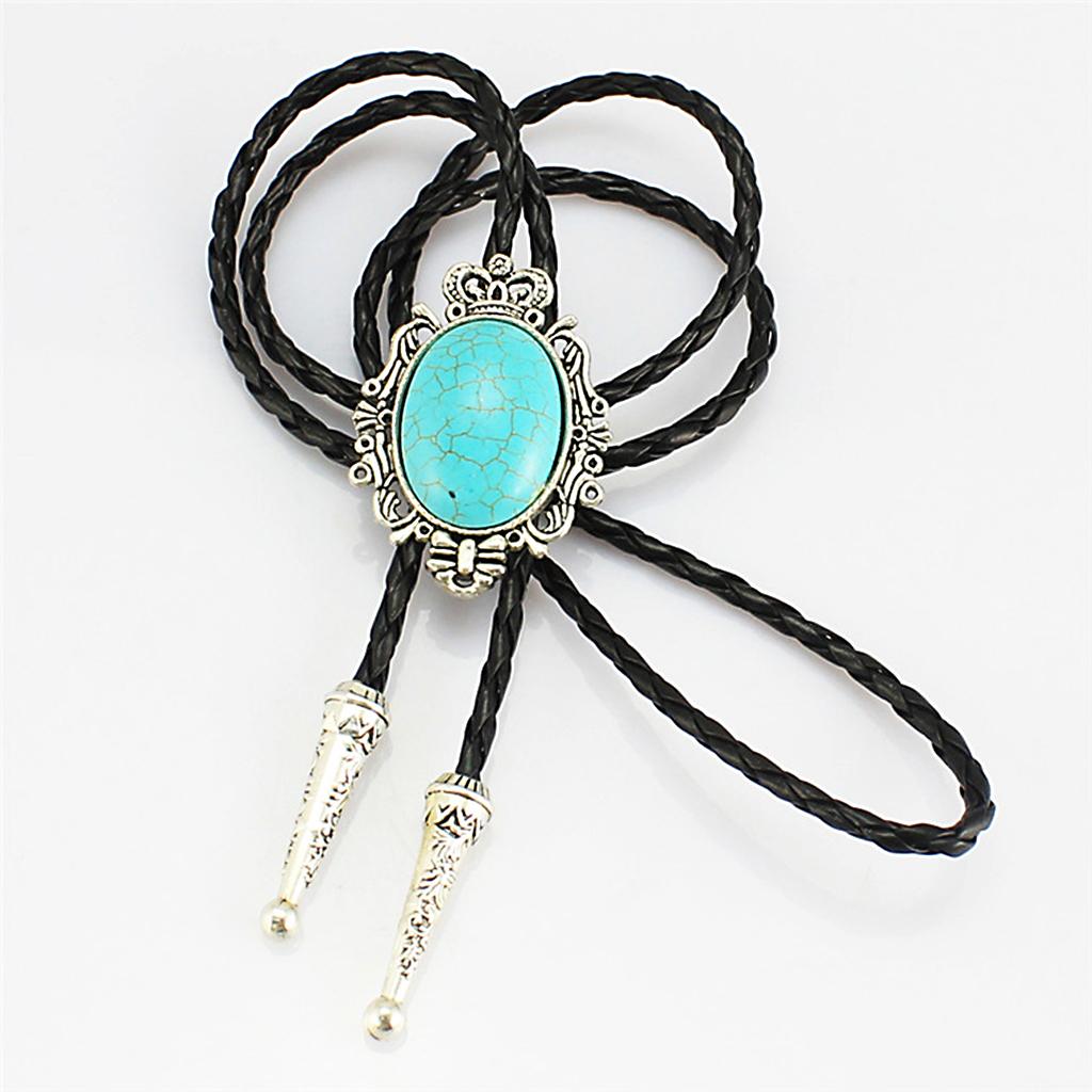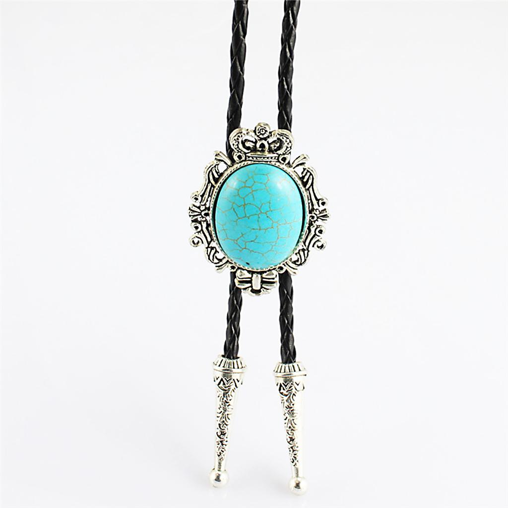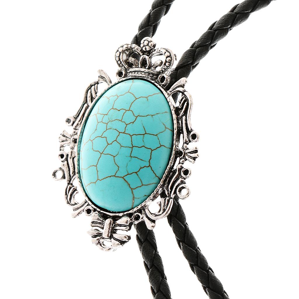 Western Cowboy Style Crown Turquoise Shirt Suit Bolo Tie Necklace Poirot Tie