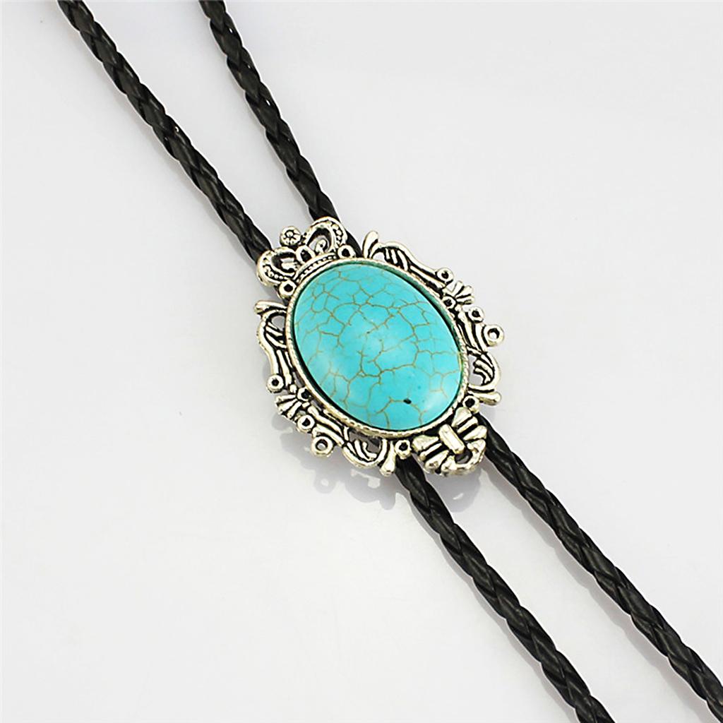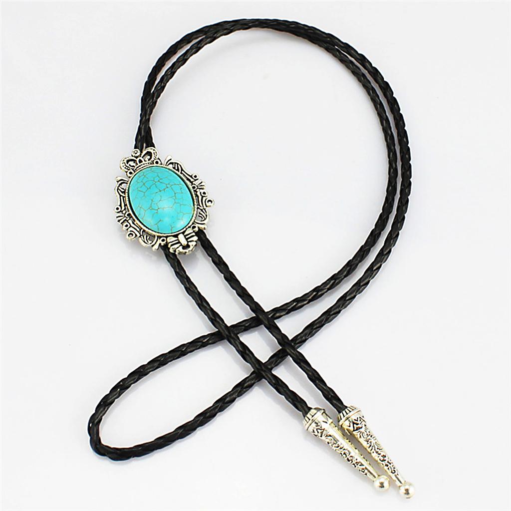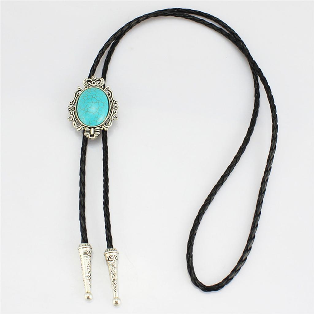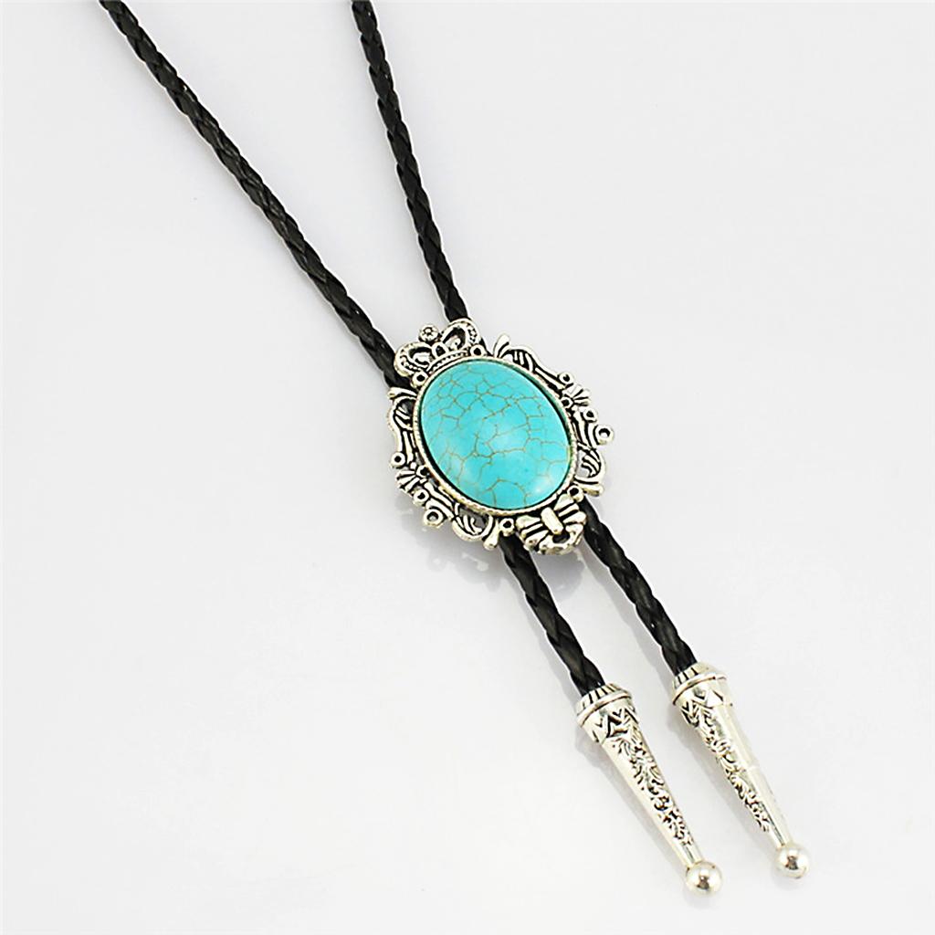 Western Cowboy Style Crown Turquoise Shirt Suit Bolo Tie Necklace Poirot Tie