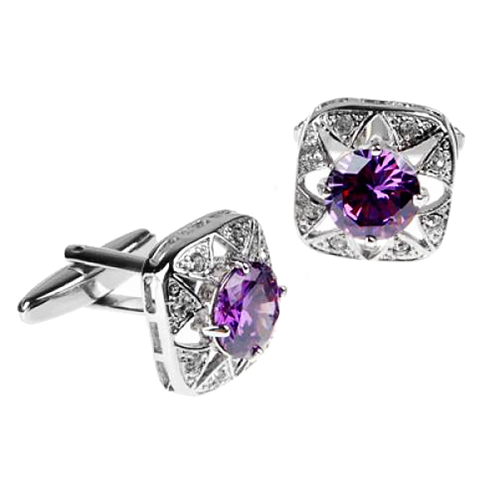 This pair of delicately crafted cuff links are made of high-quality stainless steel, purple zircon and white rhinestones. Perfect for your love ones or a gift to pamper yourself!