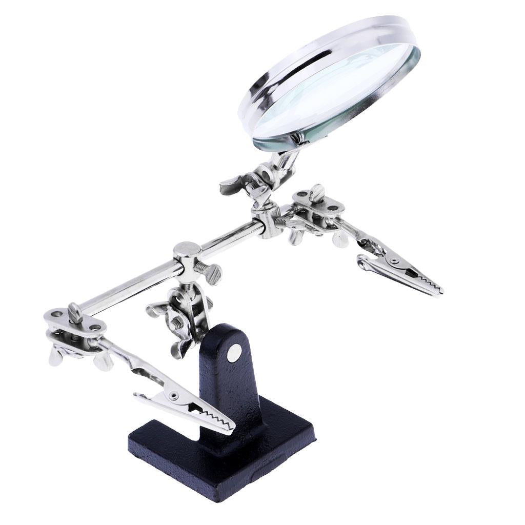 The Pro Magnifying Glass Helping Hands with Stand Station, provides a third extra hand that lets you clip on & work on anything from soldering to macro detailed delicate arts/crafts while leaving your hands free to improve precision