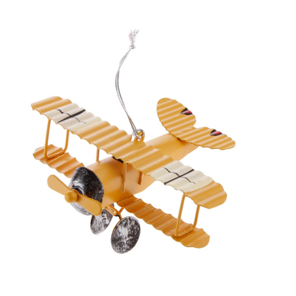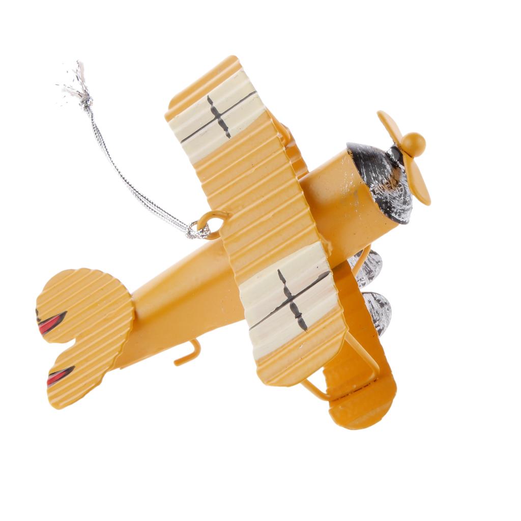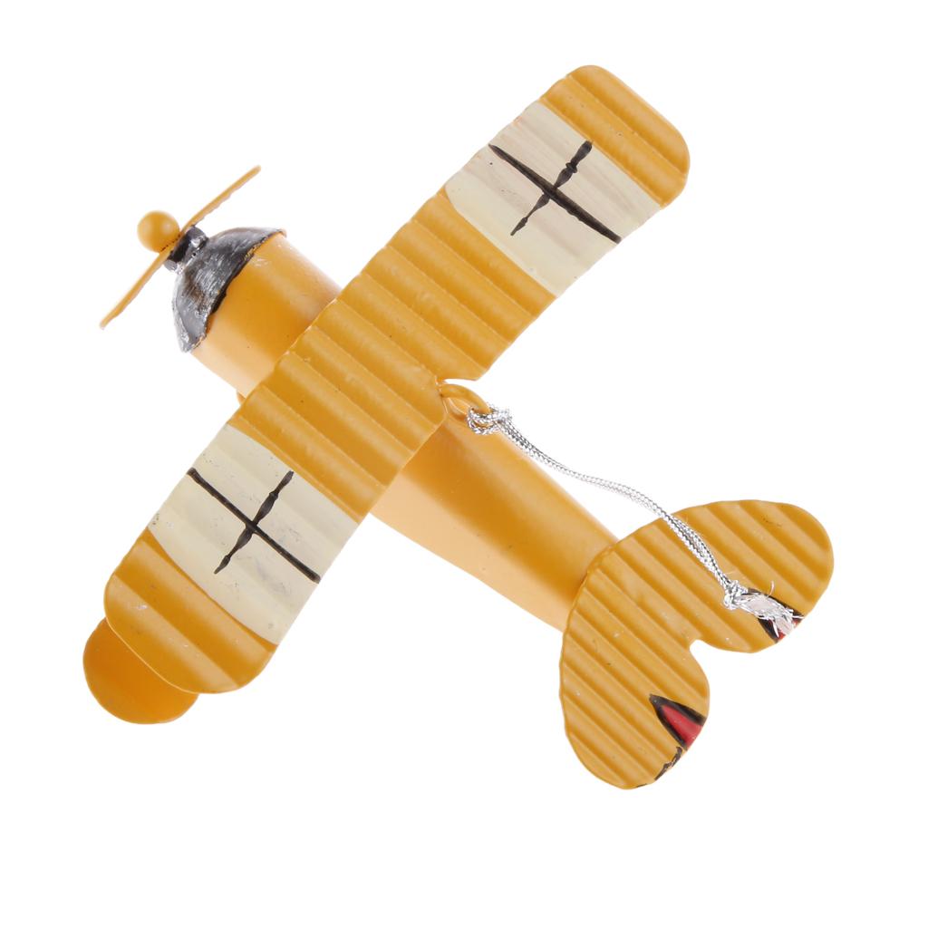 Metal Aircraft Model Biplane Toy Home Cafe Decor Kids Collectibles Yellow S