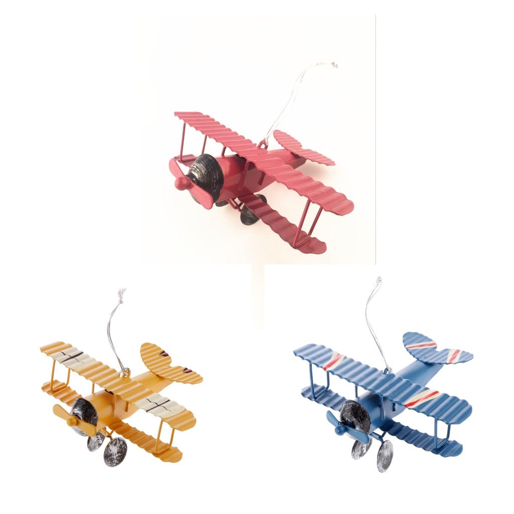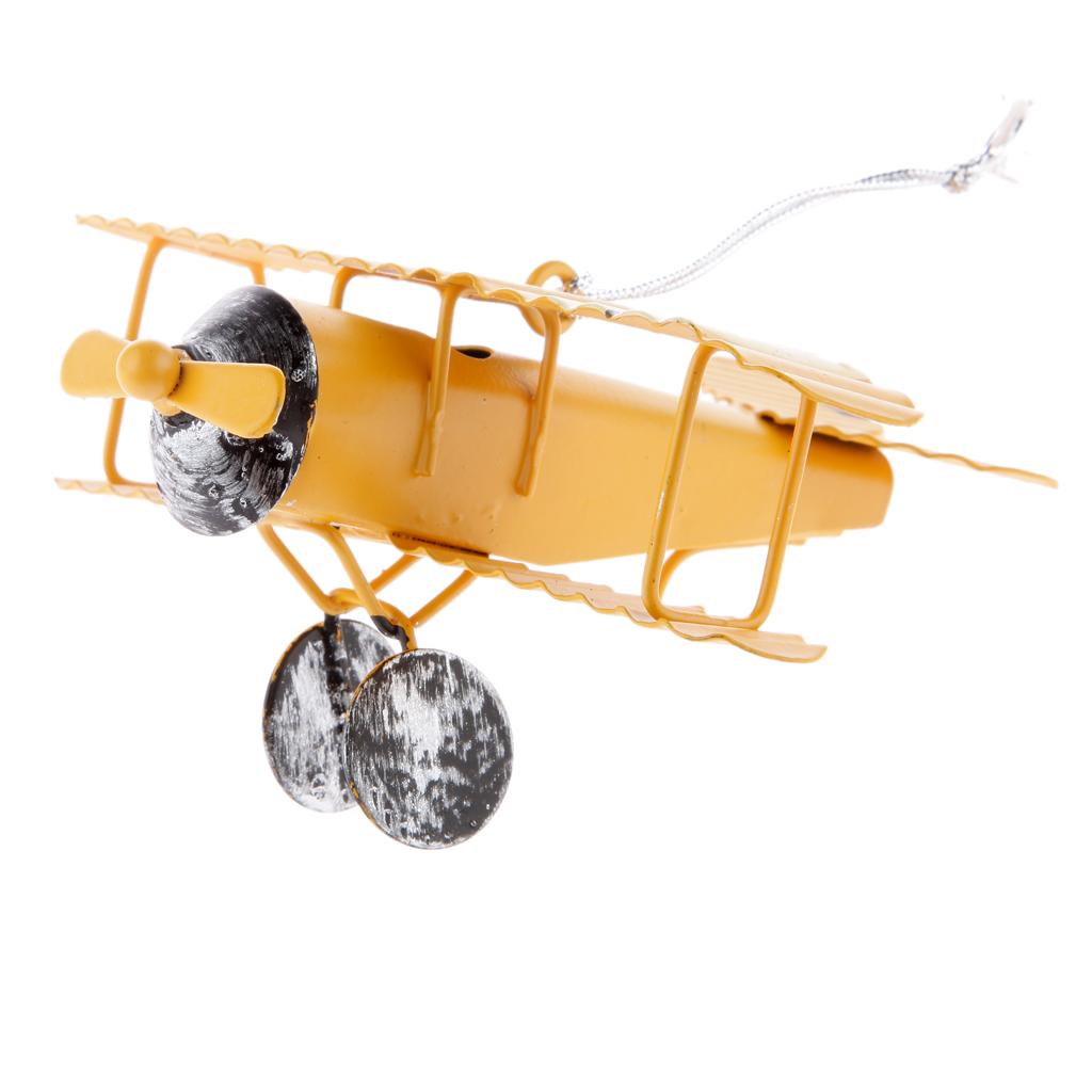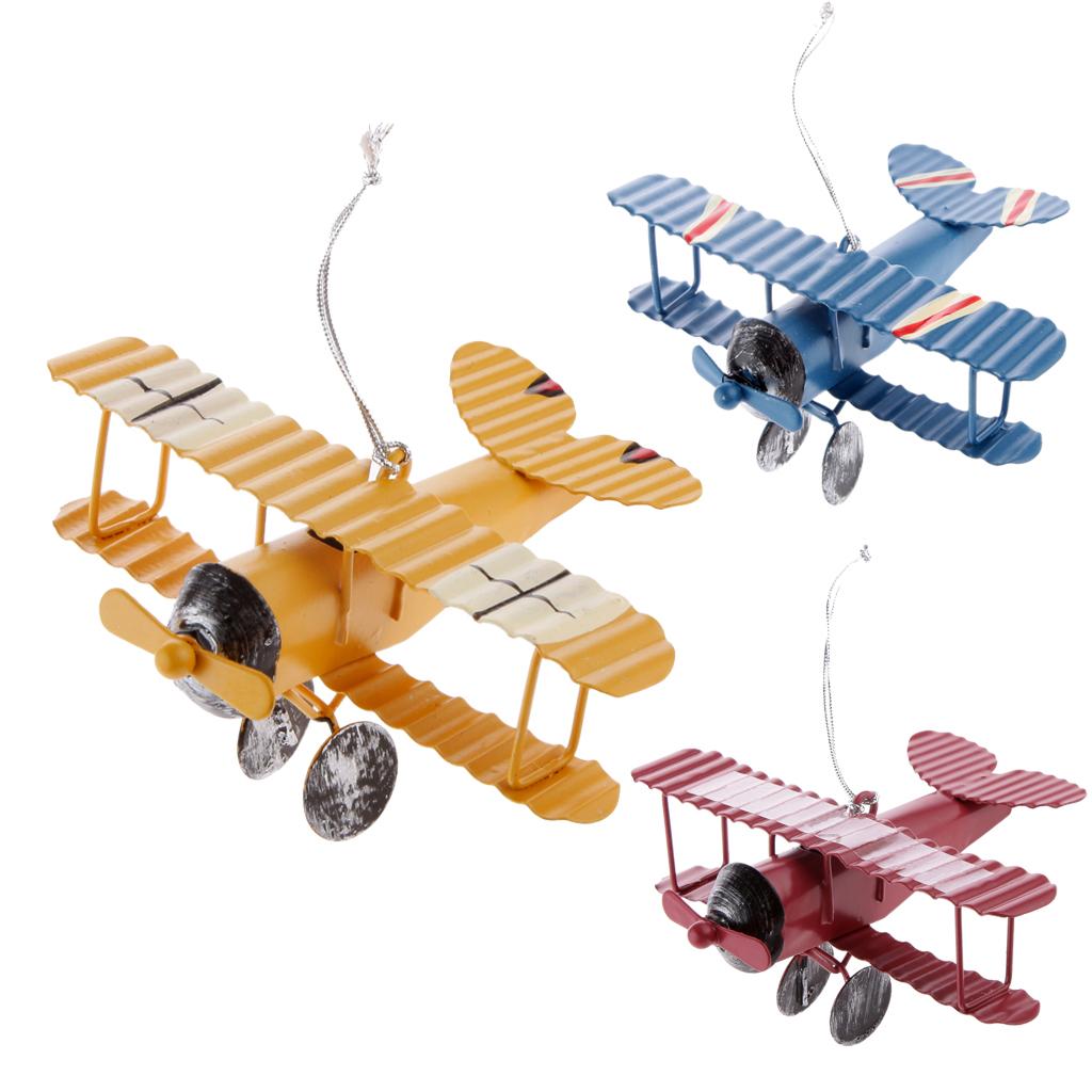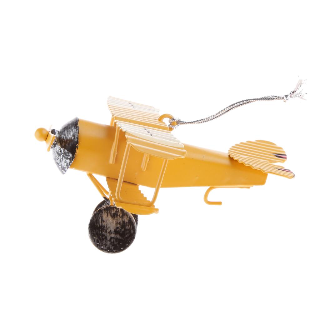 Metal Aircraft Model Biplane Toy Home Cafe Decor Kids Collectibles Yellow S