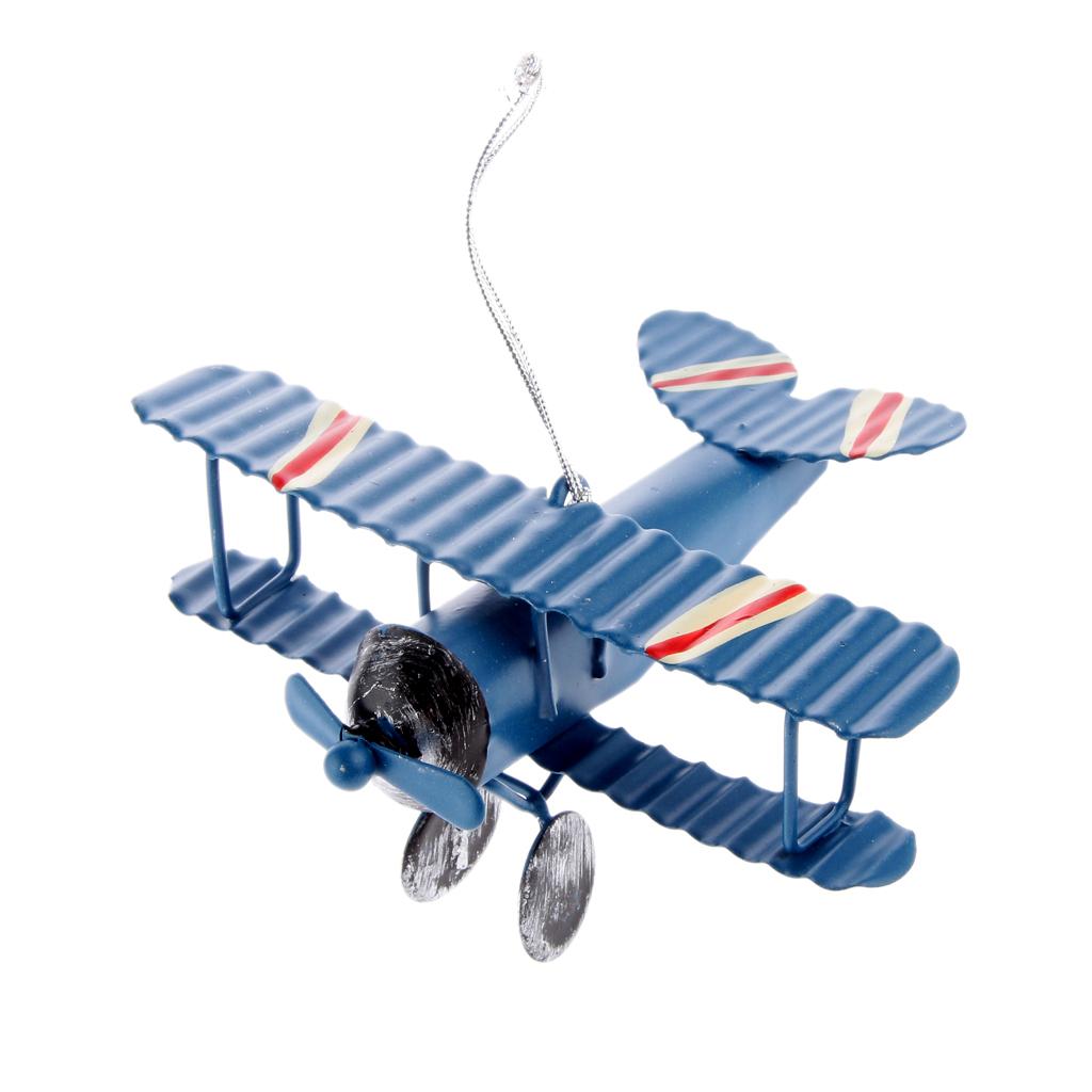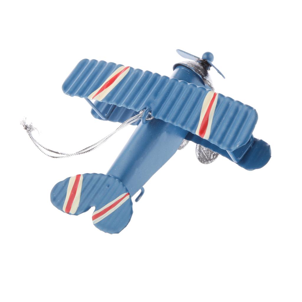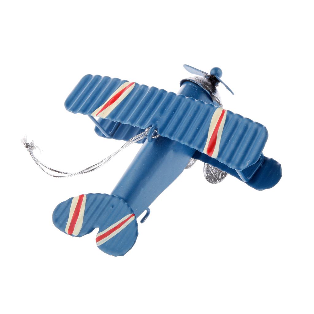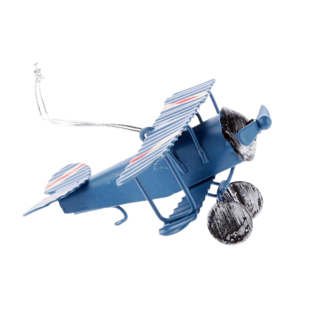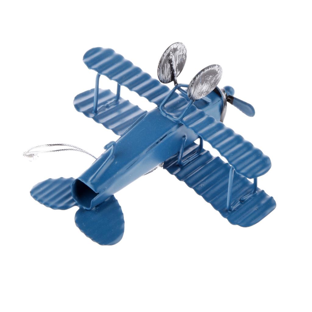 Metal Aircraft Model Biplane Toy Home Office Cafe Decor Collectibles Blue S