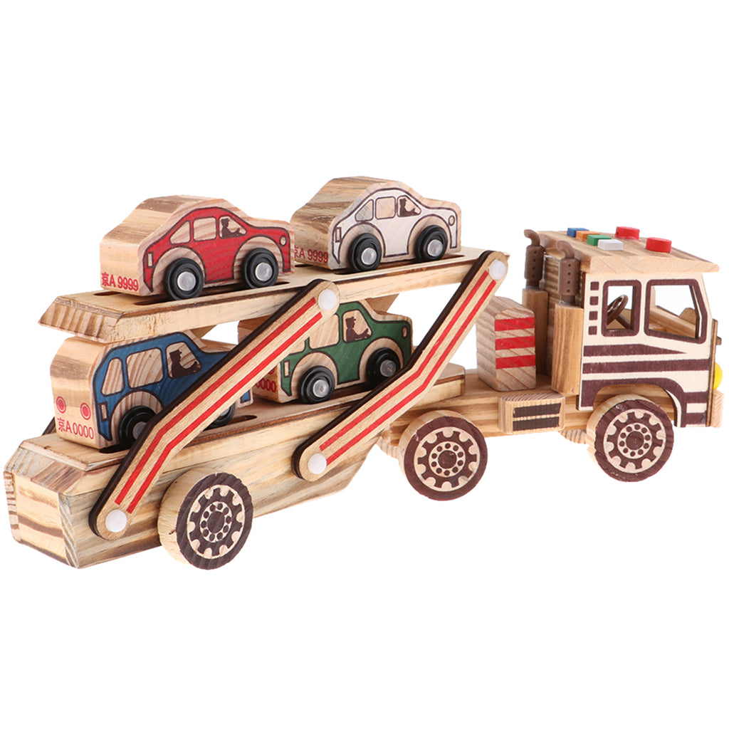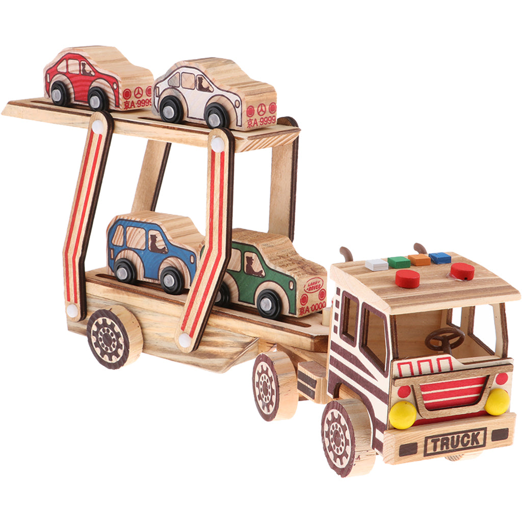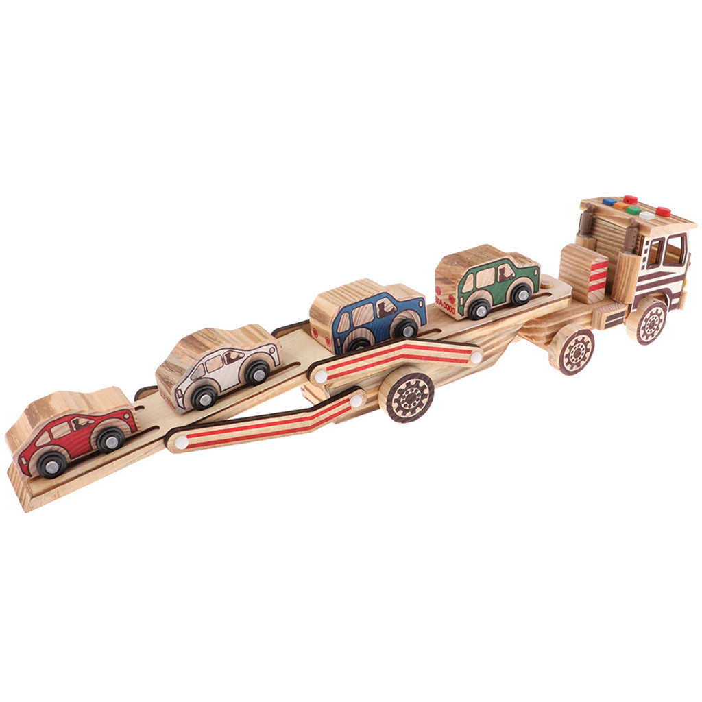 Wooden car carrier model, wooden toy car vehicle for kids children xmas birthday gifts