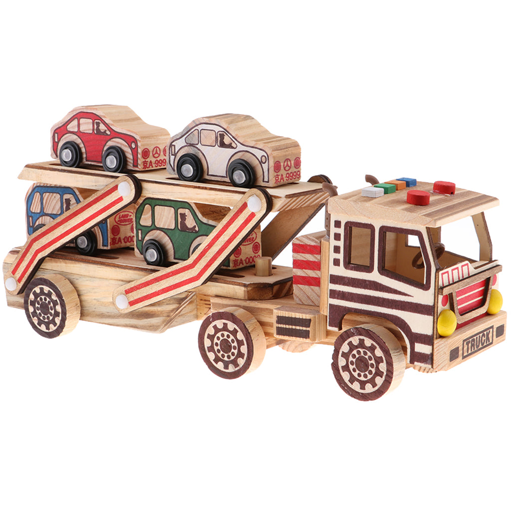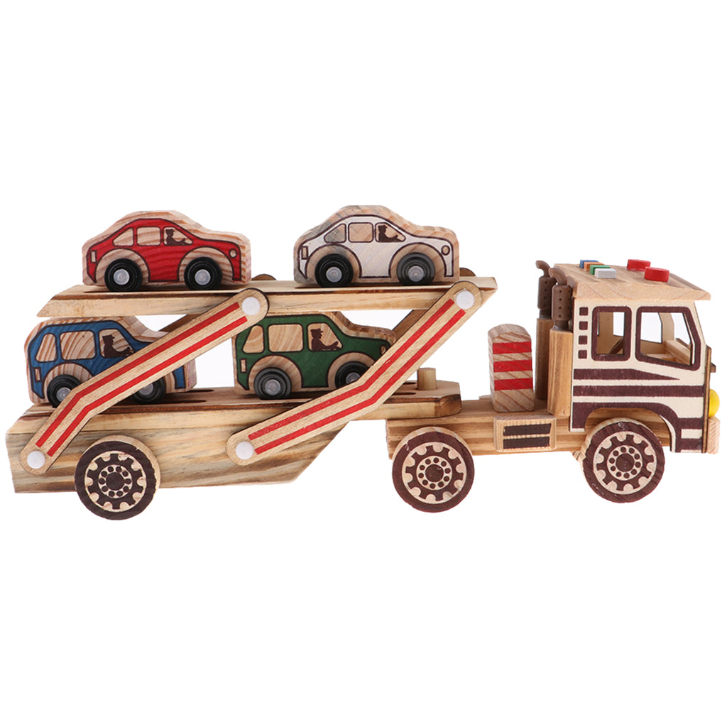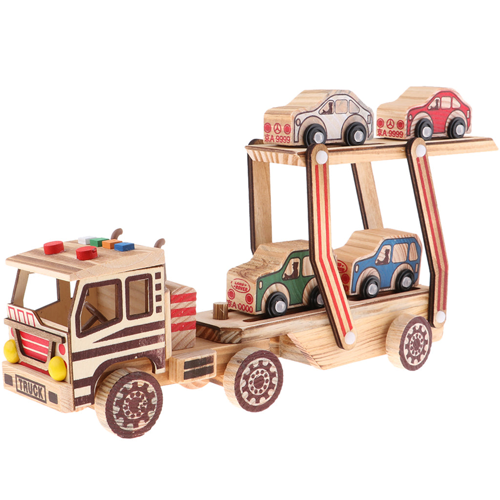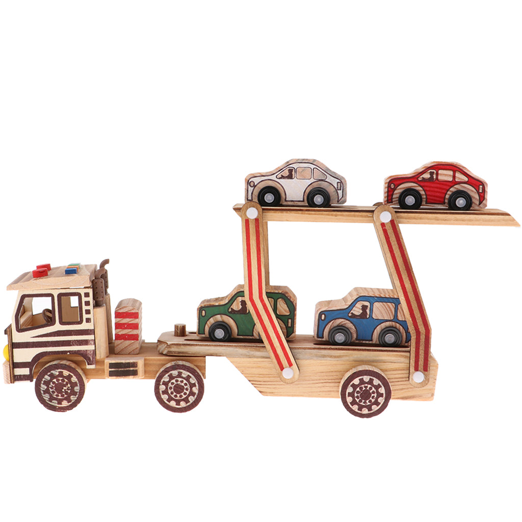 Wooden car carrier model, wooden toy car vehicle for kids children xmas birthday gifts