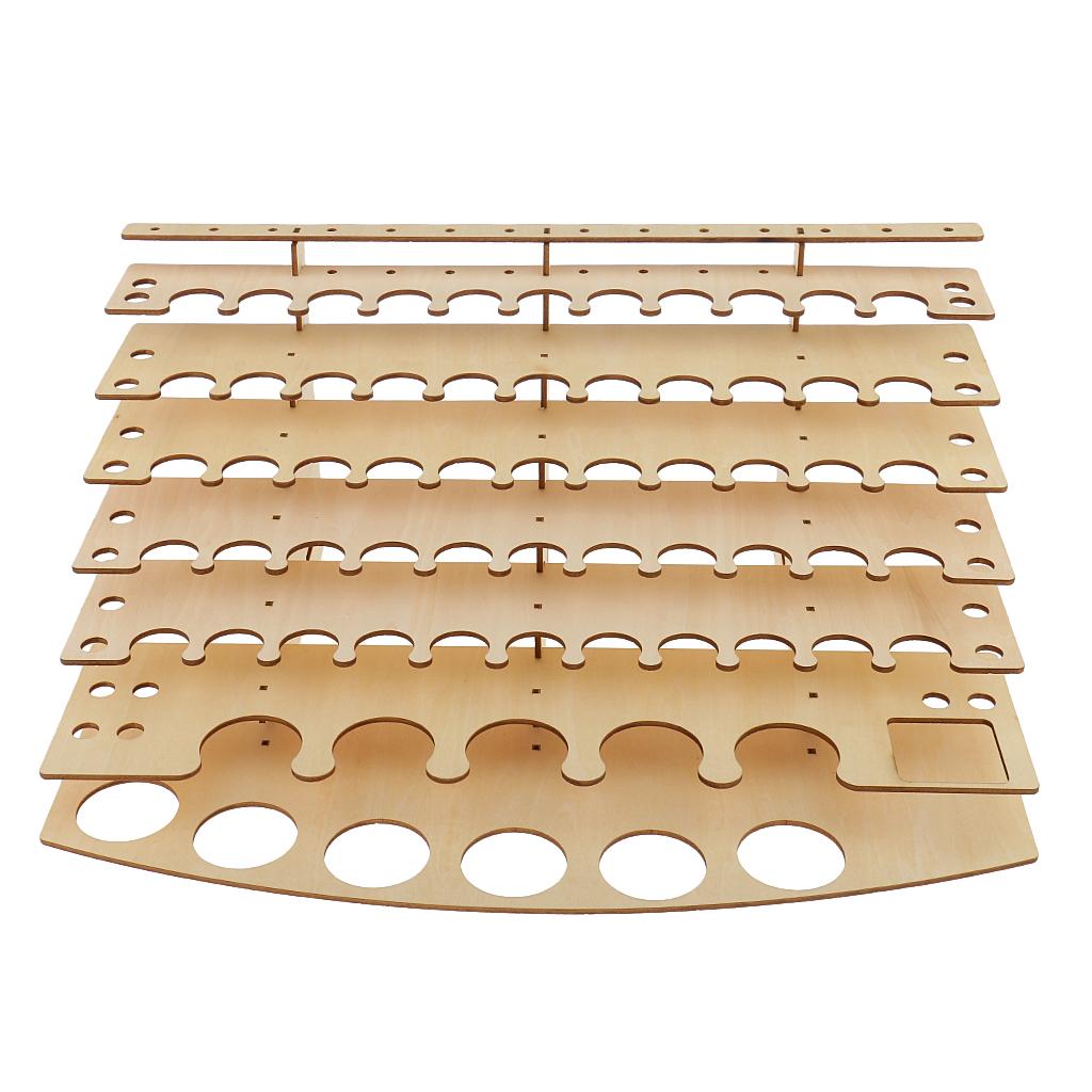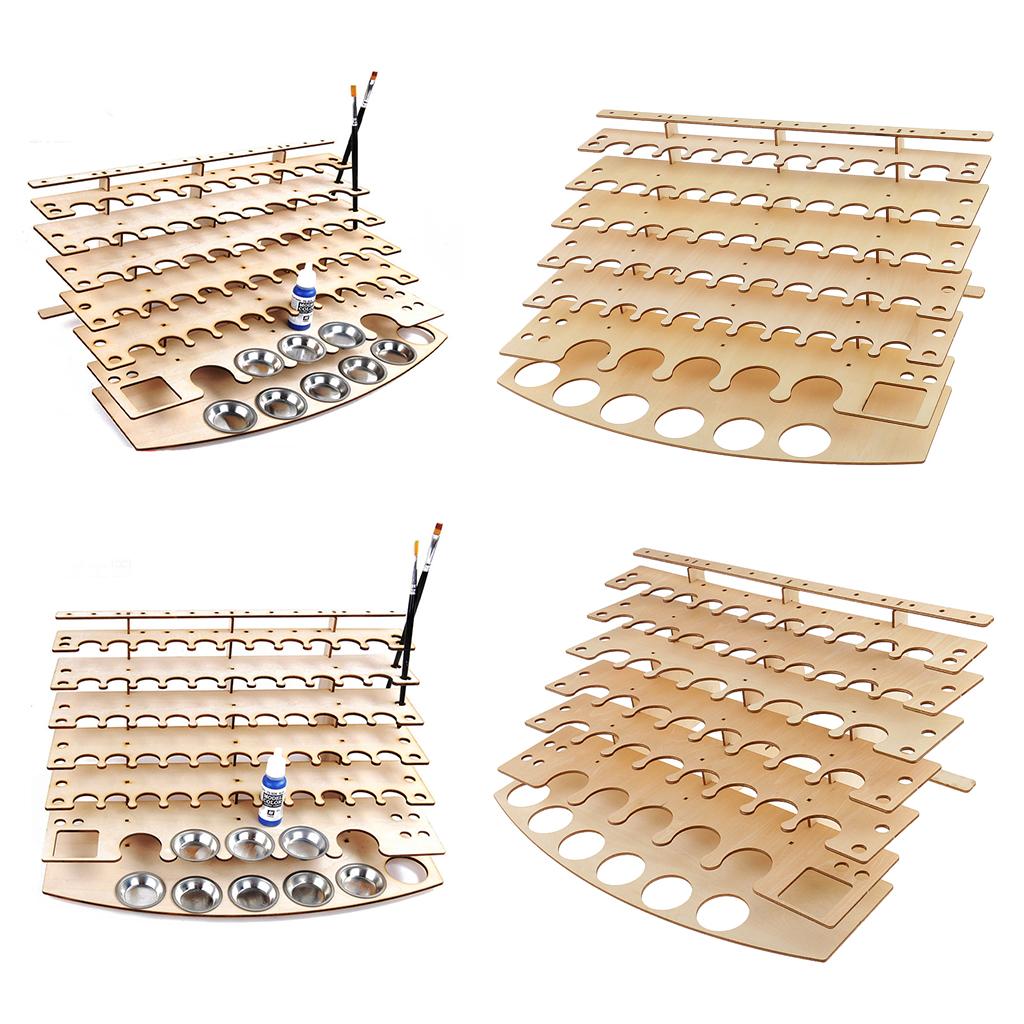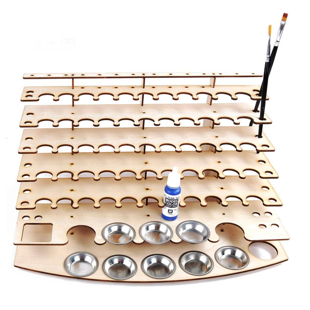 Multifunctional wooden rack for storing paints, brushes, and some modeling tools.