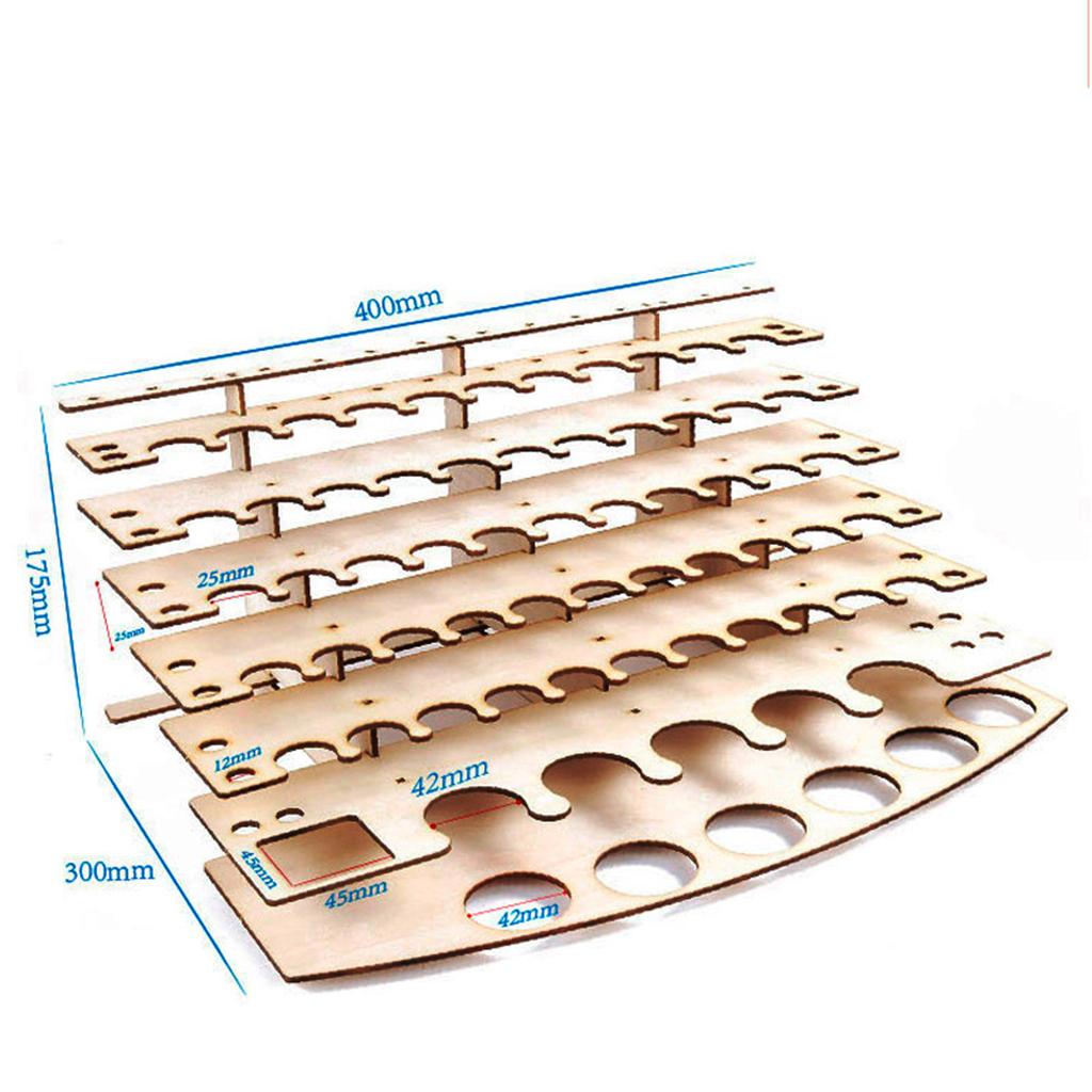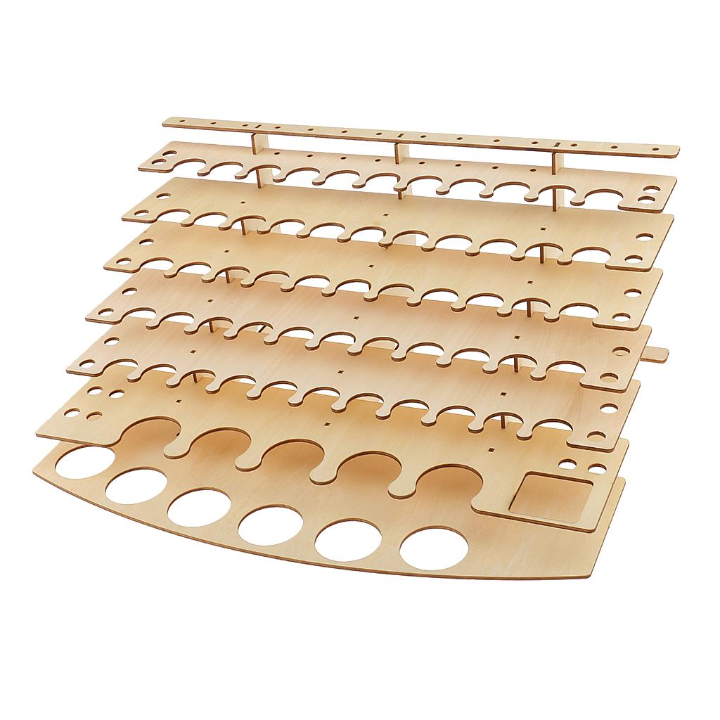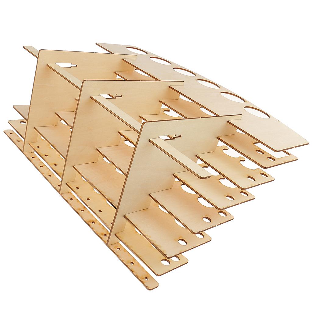 Multifunctional wooden rack for storing paints, brushes, and some modeling tools.
