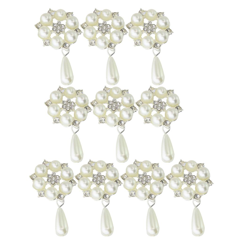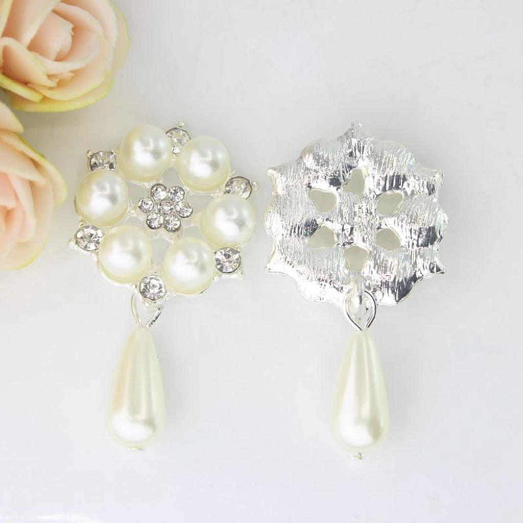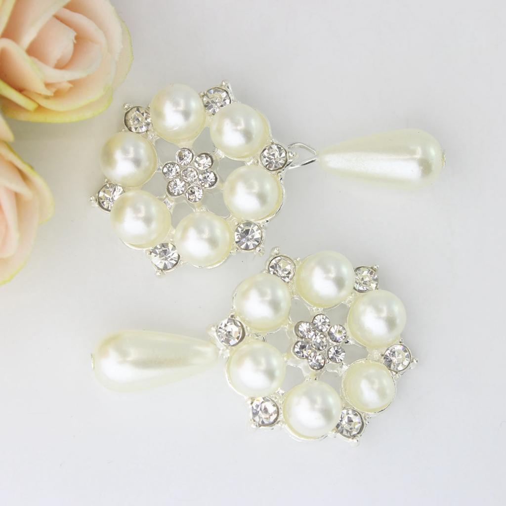 Shiny flatback buttons rhinestone embellishments with pearl teardrops