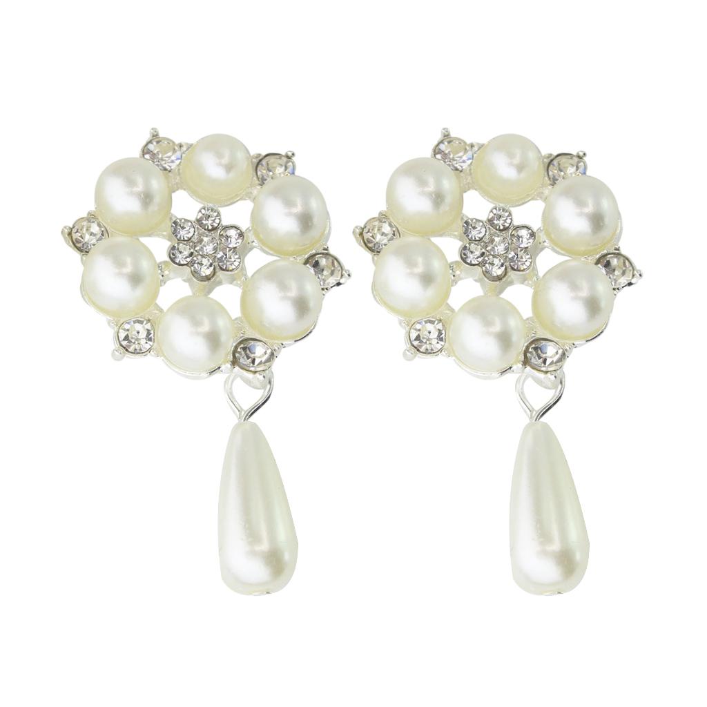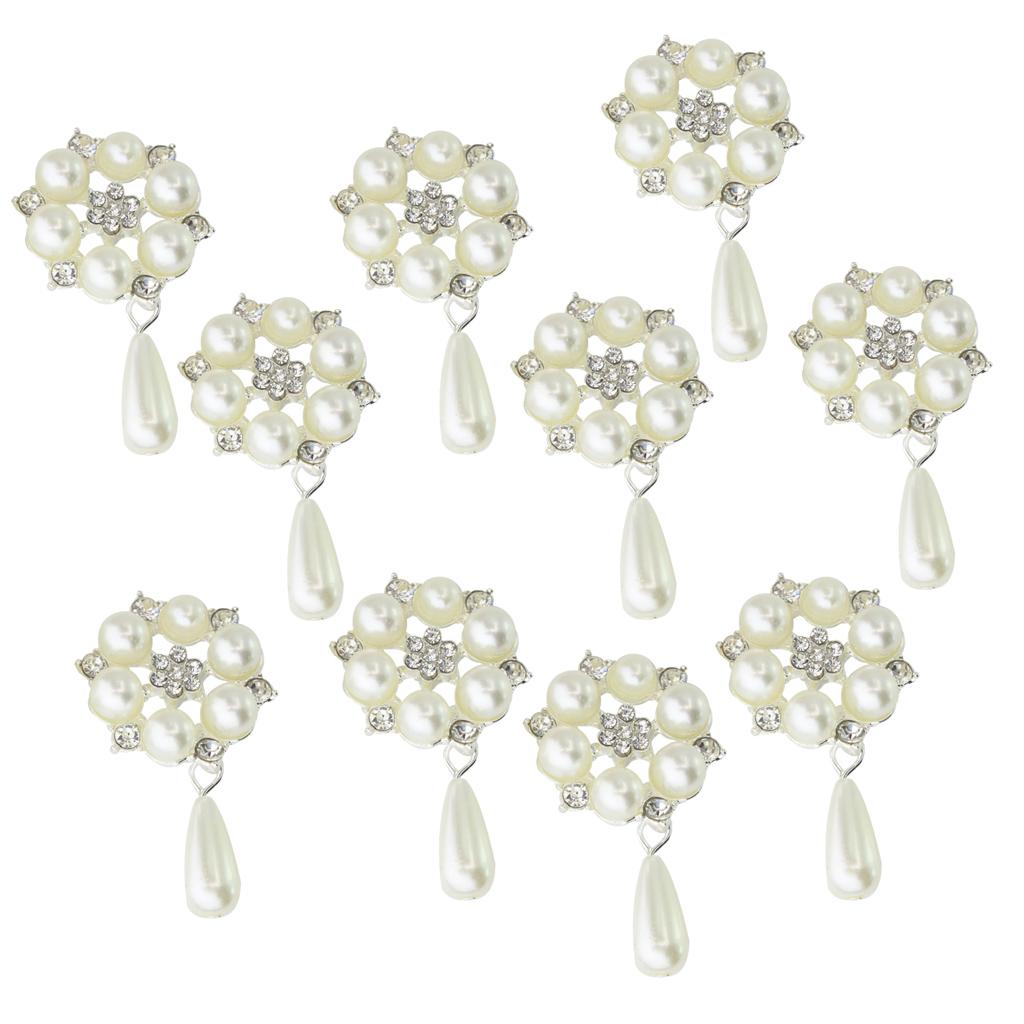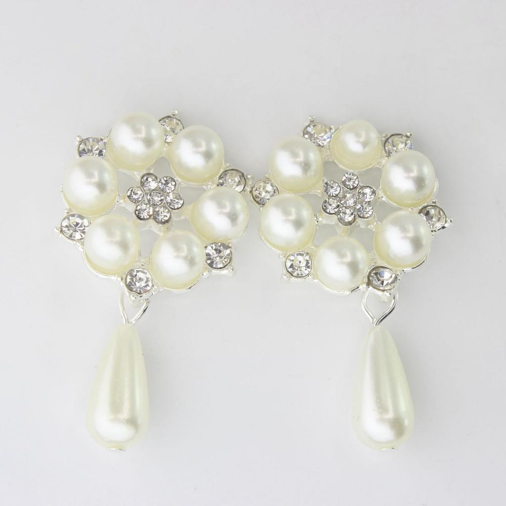 Shiny flatback buttons rhinestone embellishments with pearl teardrops