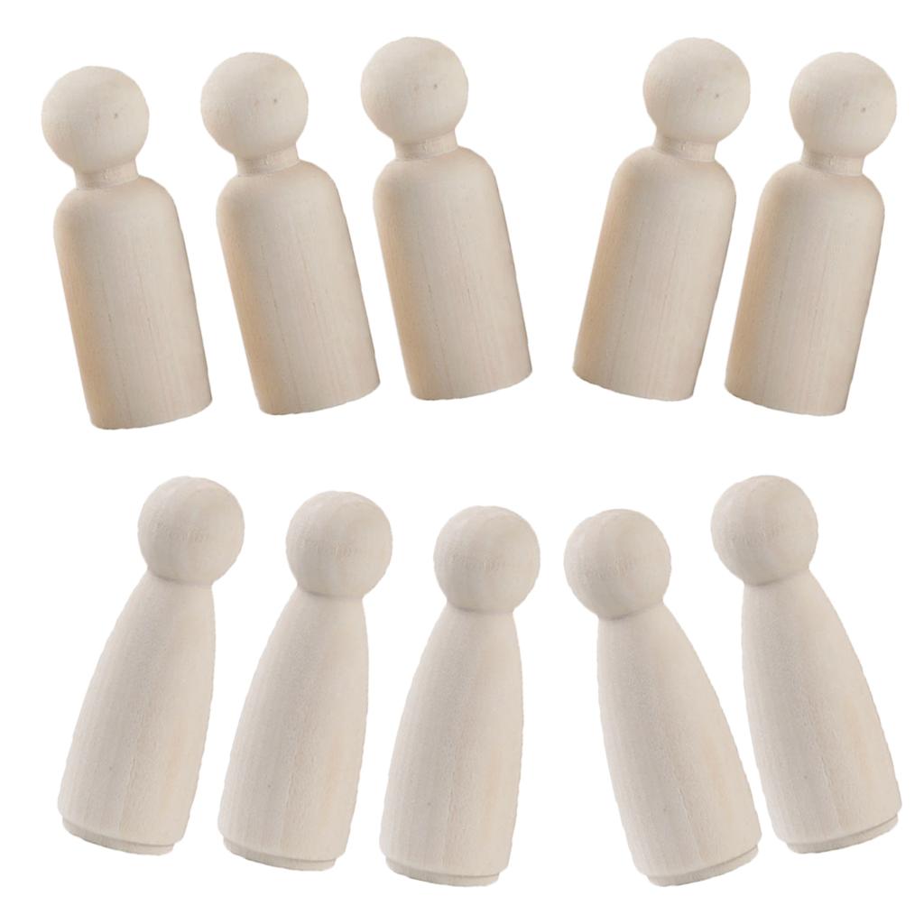 Set of 10pcs wood peg dolls,5 pieces male shape and 5 piece female shape.