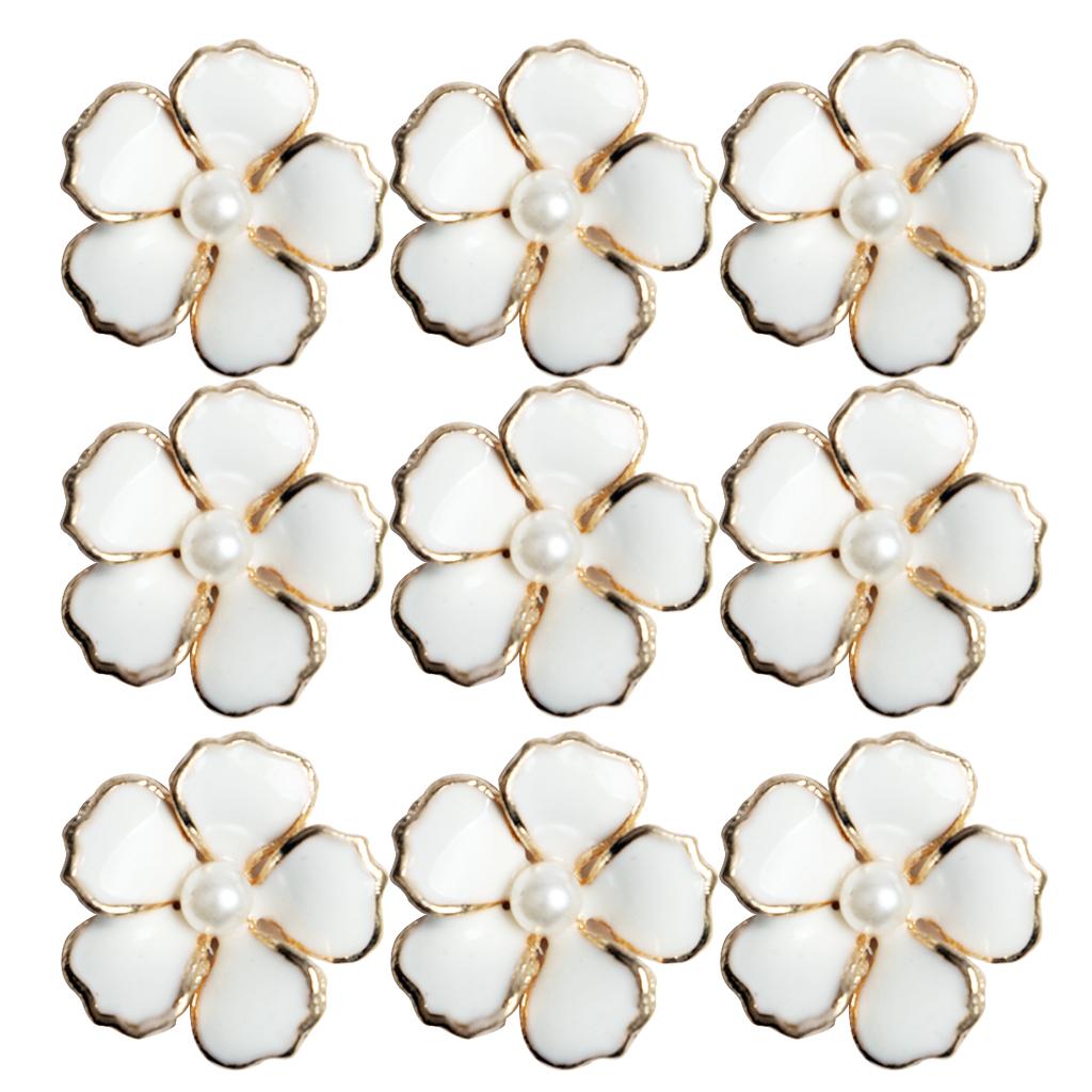 10 Pieces White Flower Alloy Pearl Flatback Buttons for Jewelry Making 18mm