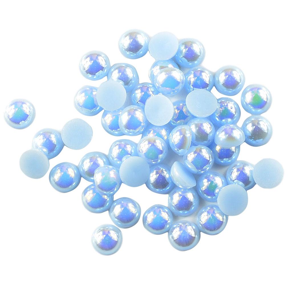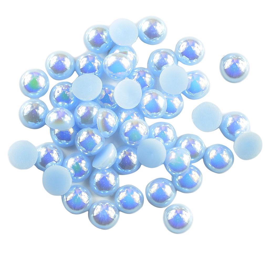 100 Pieces Half Pearl Bead Flat Back 8mm Scrapbooking for DIY Craft blue
