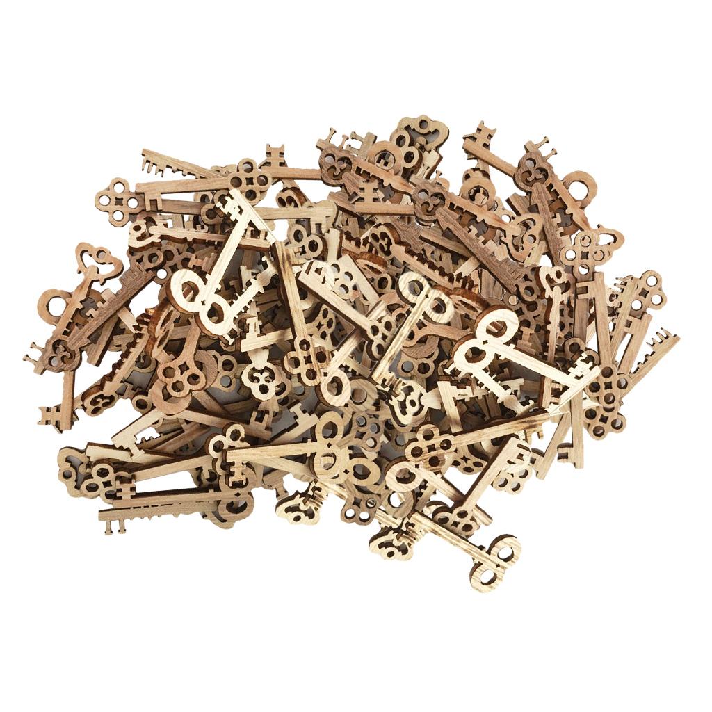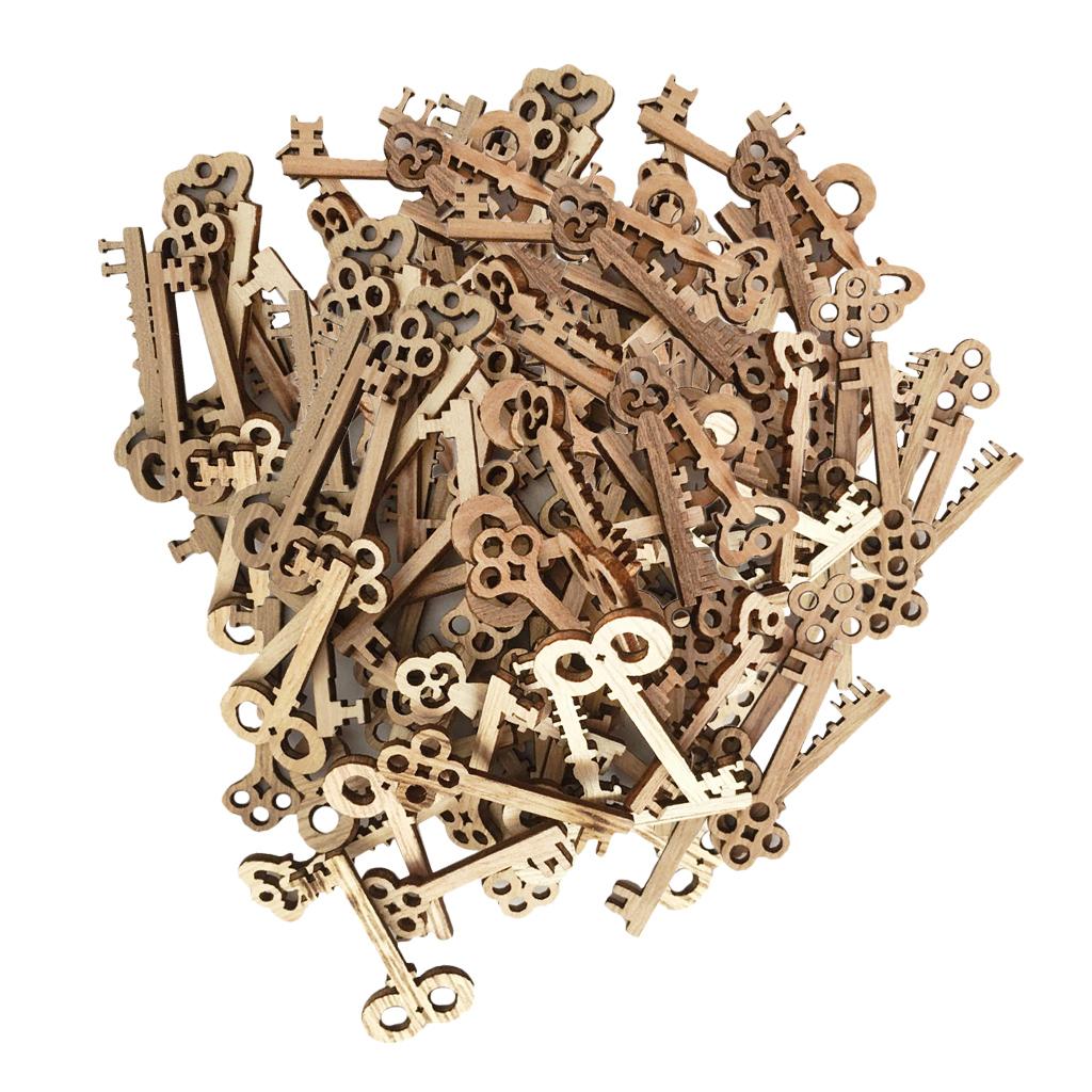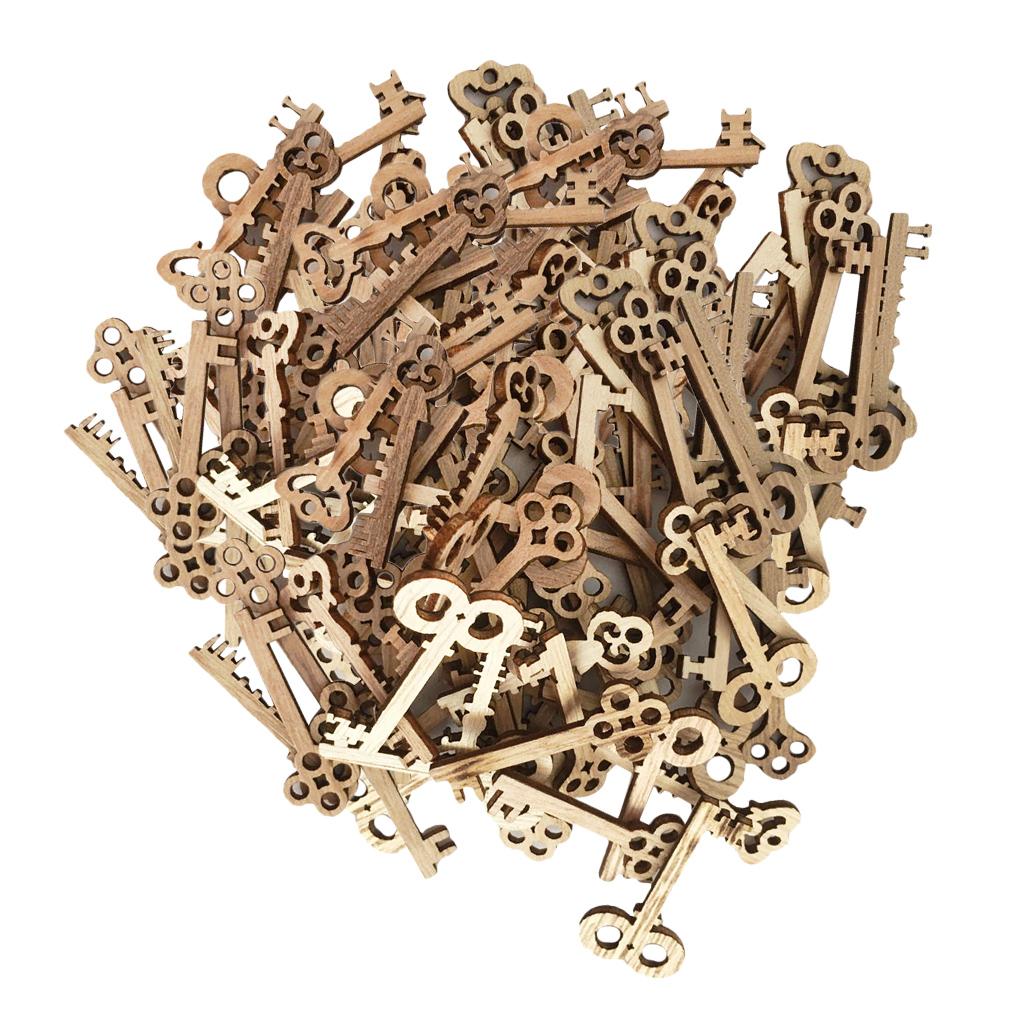 Natural wood cutouts key shapes craft, cut from high quality wood.